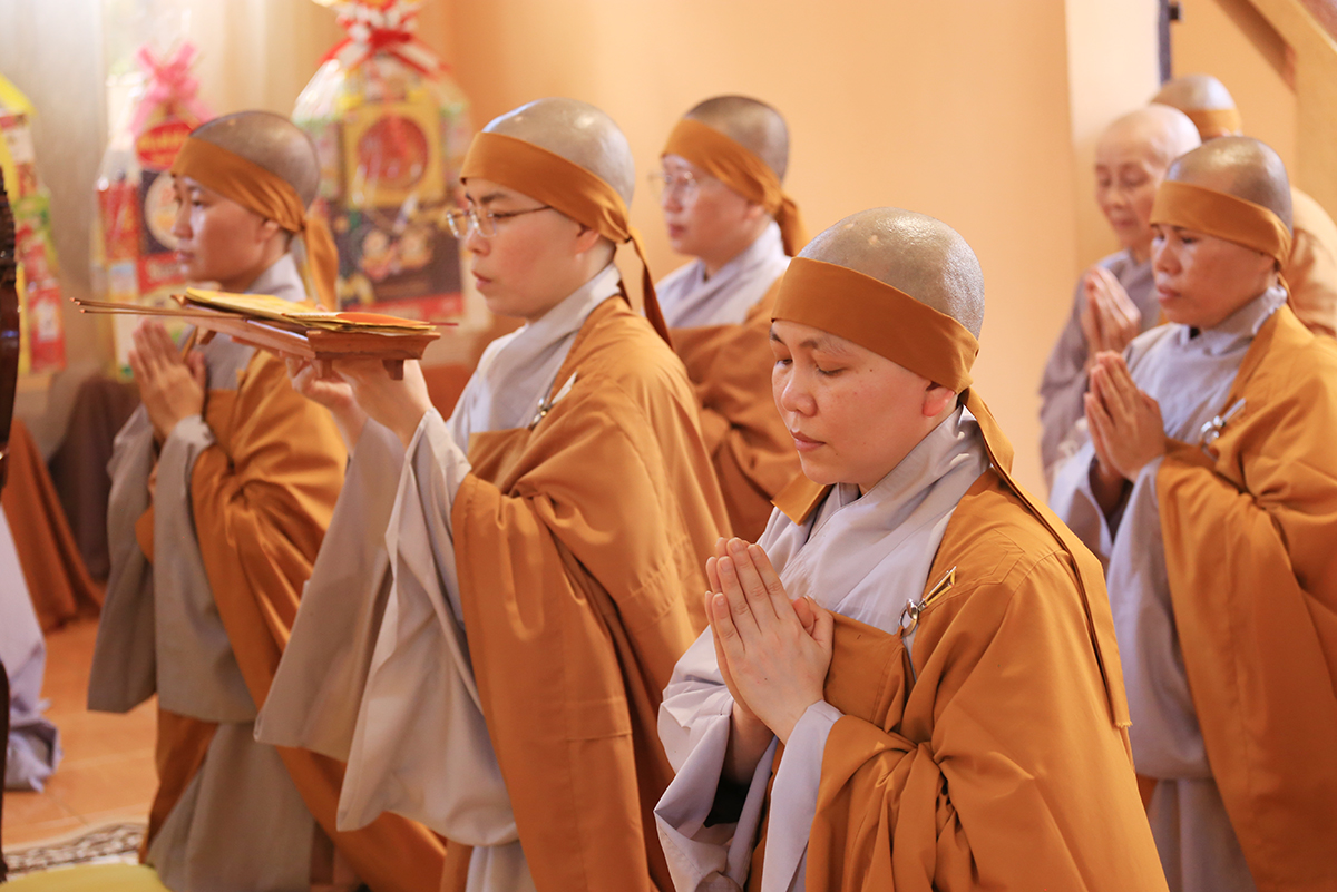 Tại buổi lễ, chư tôn đức Ban Kinh sư đã cử hành nghi thức cúng ngọ, cung tiến Giác linh cố Ni trưởng Thích nữ Như Vân.