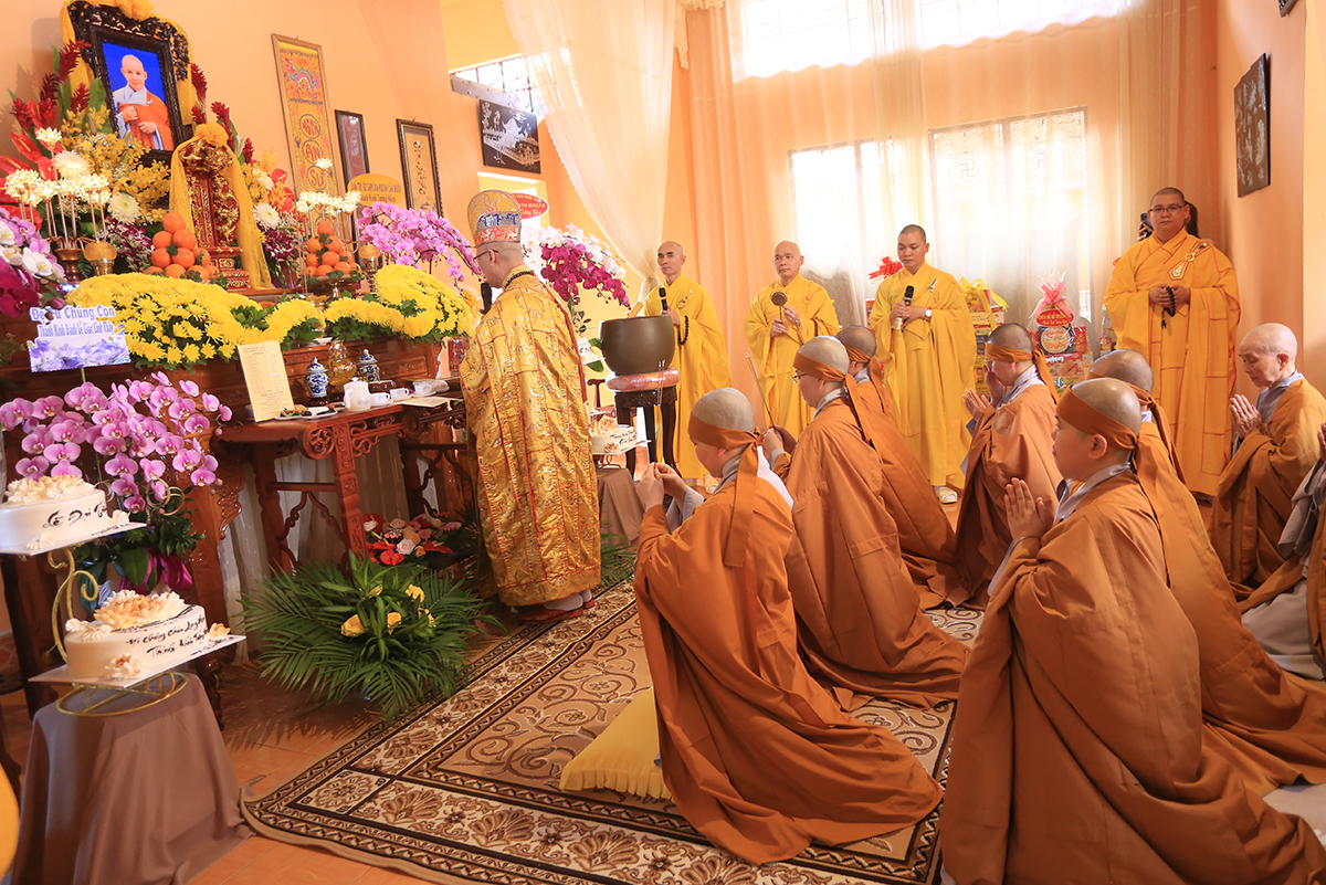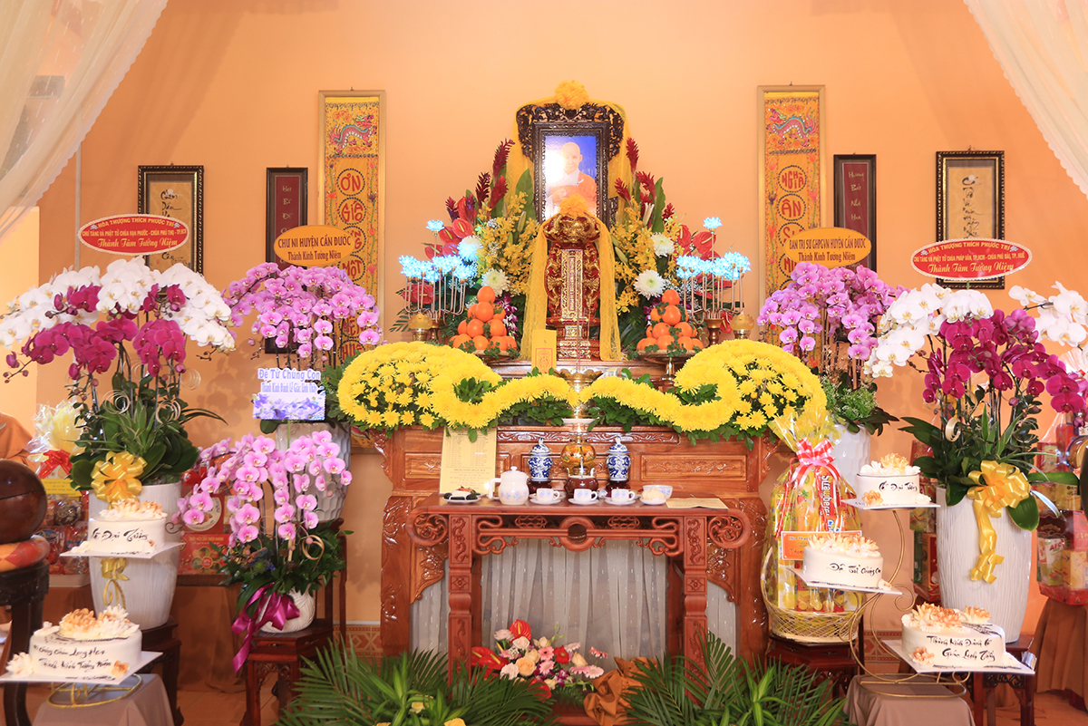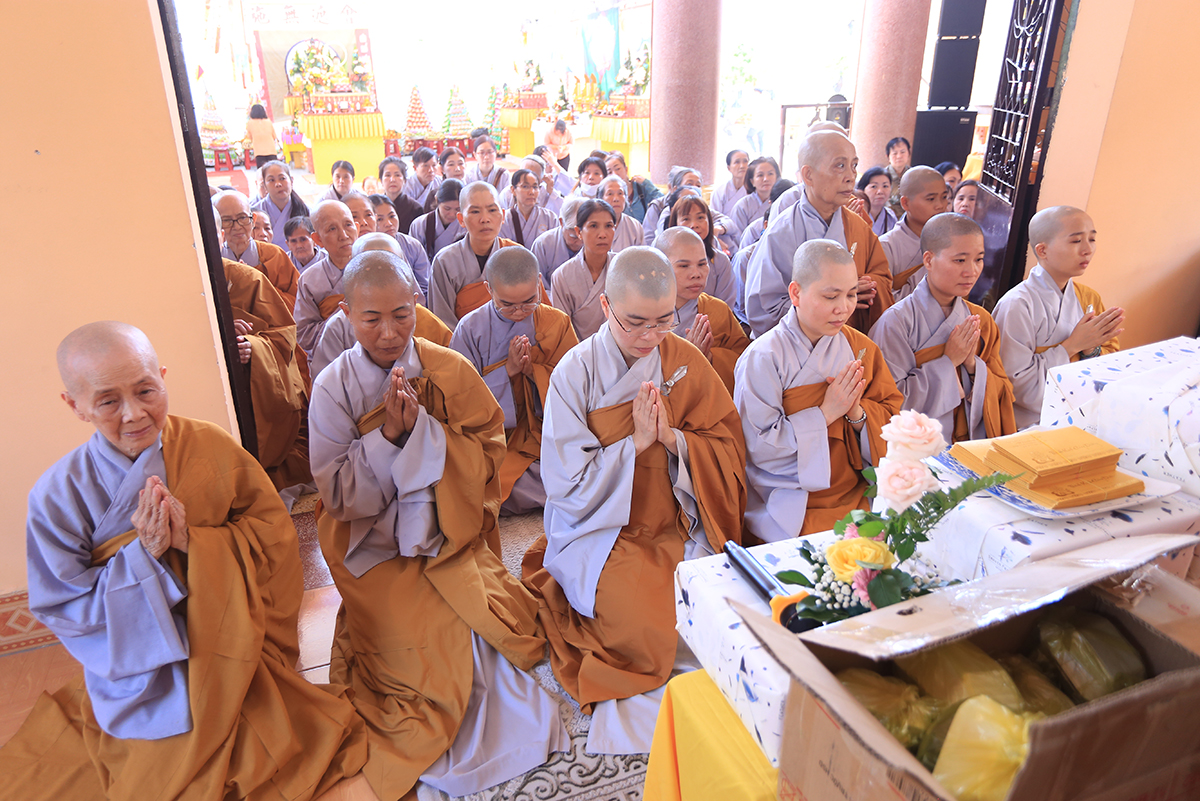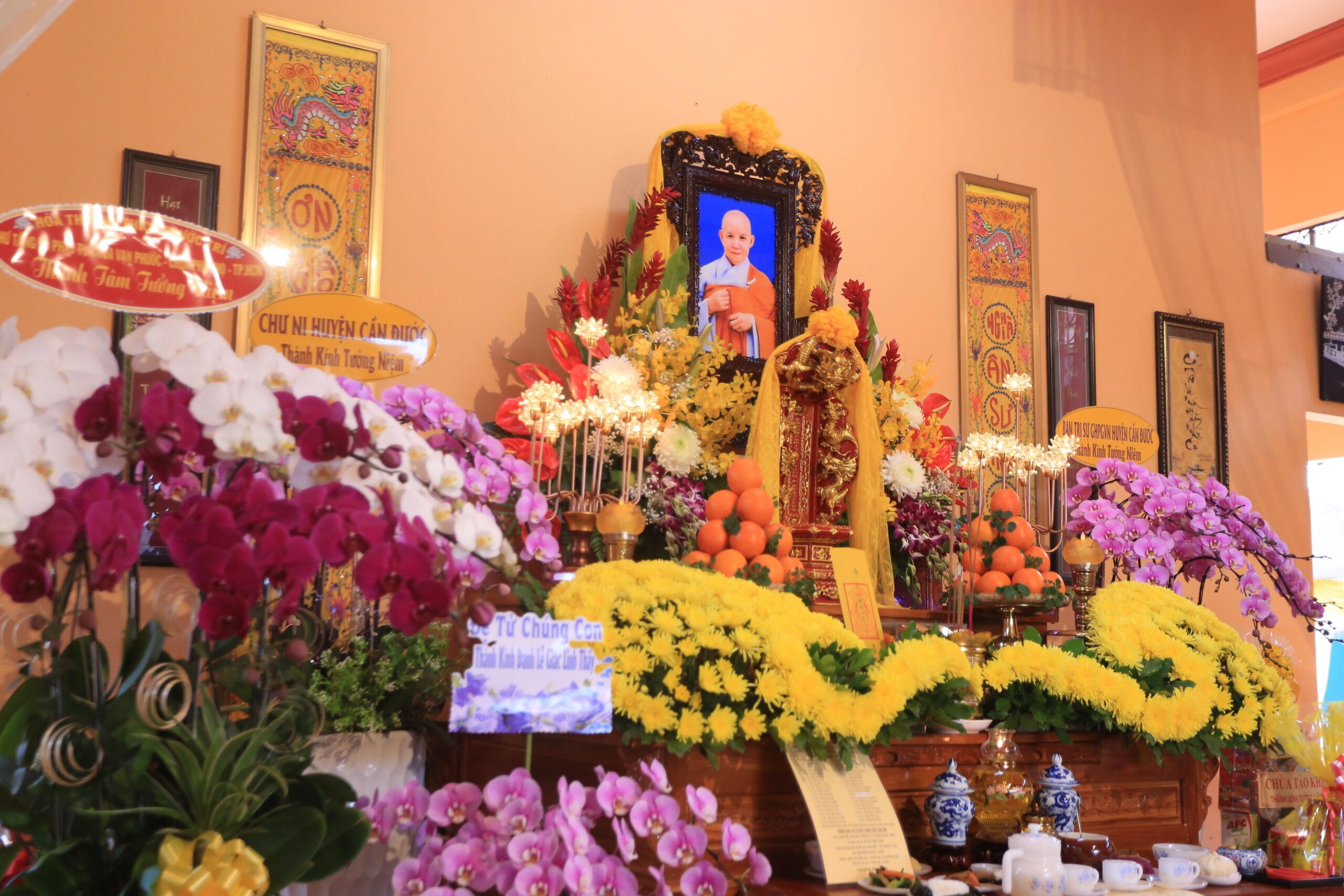 Tại tổ đường, chư tôn giáo phẩm đã thắp hương tưởng niệm, nhất tâm cầu nguyện Giác linh cố Ni trưởng nguyên trụ trì chùa Long Hoa cao đăng thượng phẩm. Dịp này, môn đồ pháp quyến đã thiết lễ cúng dường trai Tăng cúng dường.