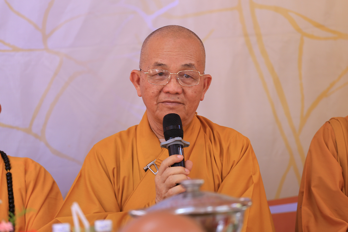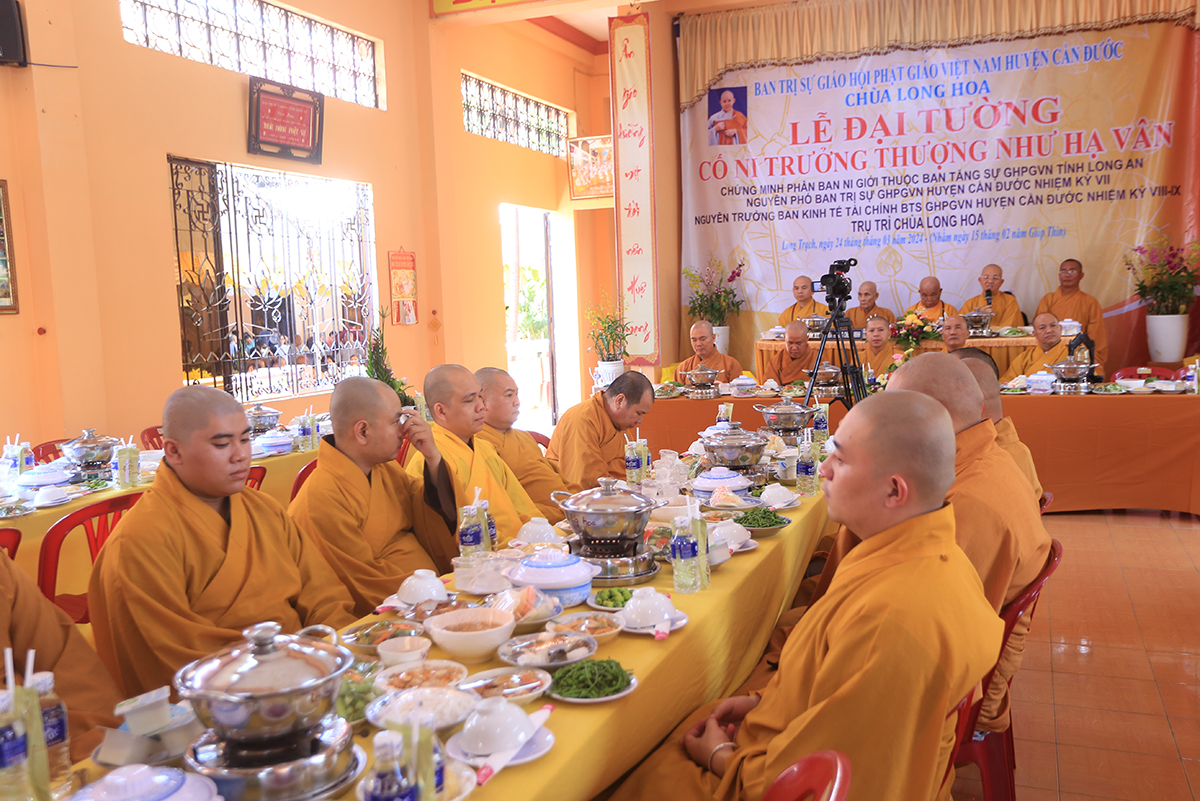 Sau lời tác bạch tưởng niệm Đại tường cố Ni trưởng Thượng NHƯ Hạ VÂN của Sư cô Thích Nữ Nhuận Lộc đại diện môn đồ pháp quyến, toàn thể hội chúng được lắng nghe lời đạo từ cao quý của Hòa thượng Thích Minh Thiện – UV HĐTS – Phó Trưởng Ban Hoằng pháp TW – Trưởng BTS GHPGVN tỉnh Long An, trong lời đạo từ Hòa thượng đã lần nữa ôn lại giá trị của Phật giáo nước nhà trong sự đồng hành và phát triển cùng dân tộc, nhấn mạnh hiến chương của Giáo hội Phật giáo Việt Nam trong quá lãnh lãnh đạo Phật giáo nước nhà, sự thống nhất toàn vẹn về các tổ chức hệ phái trọn vẹn trong mái nhà chung mang tên Giáo hội Phật giáo Việt Nam. Hòa thượng lần nữa tán thán công đức của Nhị vị Ni trưởng đã dày công khai sơn và phát triển đạo tràng chùa Long Hoa đến hôm nay được trang nghiêm và thành tựu như pháp. Bên cạnh đó, Ngài nhấn mạnh về vai trò của Giáo hội các cấp trong tỉnh nhà vẫn luôn sách tấn và chọn lựa nhân tài kế thừa để đảm nhiệm chức vụ trụ trì chùa Long Hoa nhằm ổn định và nhiếp hóa đồ chúng nơi tự viện tu tập và phát triển tốt đẹp.