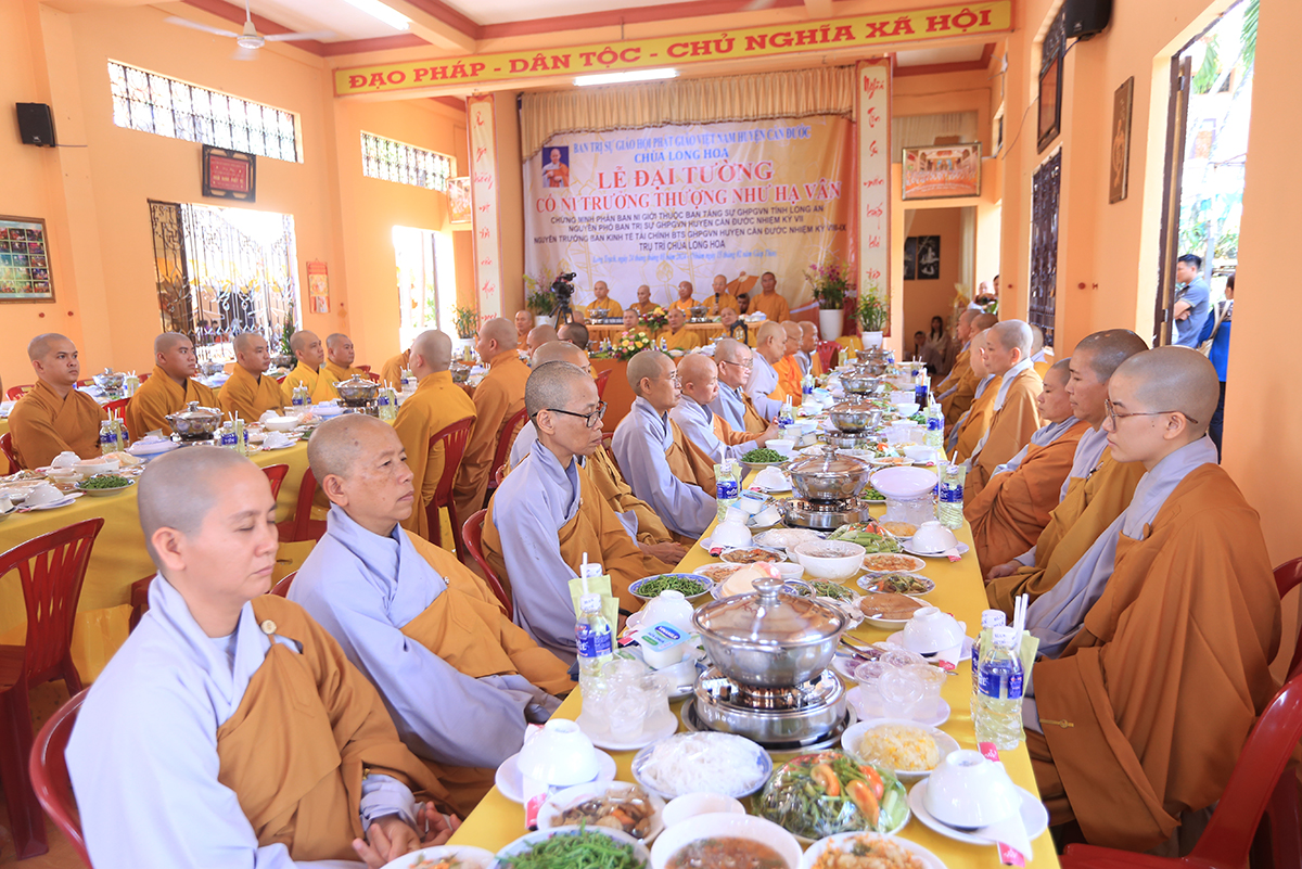 Buổi lễ được cung nghinh sự quang lâm chứng minh của Hòa thượng Thích Minh Thiện – UV HĐTS – Phó Trưởng Ban Hoằng pháp TW GHPGVN – Trưởng BTS GHPGVN tỉnh Long An, Hòa thượng Thích Phước Trí – Chứng minh Ban Nghi lễ Trung ương GHPGVN, Thượng tọa Thích Minh Thọ – Phó Trưởng BTS GHPGVN tỉnh Long An; ĐĐ.Thích Lệ Ngôn- Phó BTS kiêm trưởng Ban Hoằng Pháp GHPGVN tỉnh Long An; Đại đức Thích Thiện Danh – Phó Chánh Thư ký kiêm Chánh Văn phòng BTS GHPGVN tỉnh Long An, Đại đức Thích Trí Minh – Uỷ viên thường trực BTS GHPGVN tỉnh Long An – Trưởng BTS GHPGVN huyện Cần Đước, Thượng tọa Thích Tâm Hướng – Uỷ viên BTS GHPGVN tỉnh Long An – Phó Trưởng Ban Thường trực BTS GHPGVN huyện Cần Đước, Đại đức Thích Nguyên Tịnh – Uỷ viên BTS GHPGVN tỉnh Long An – Chánh Thư ký BTS GHPGVN huyện Cần Đước, Đại đức Thích Nguyên Thọ – Phó Chánh Thư ký BTS GHPGVN huyện Cần Đước, quý Ni trường, Ni sư, Chư tôn đức Tăng, Ni, trụ trì các Tự viện trong tỉnh Long An, các tỉnh thành lân cận, và đông đảo quý Nam nữ Phật tử cùng tham dự.