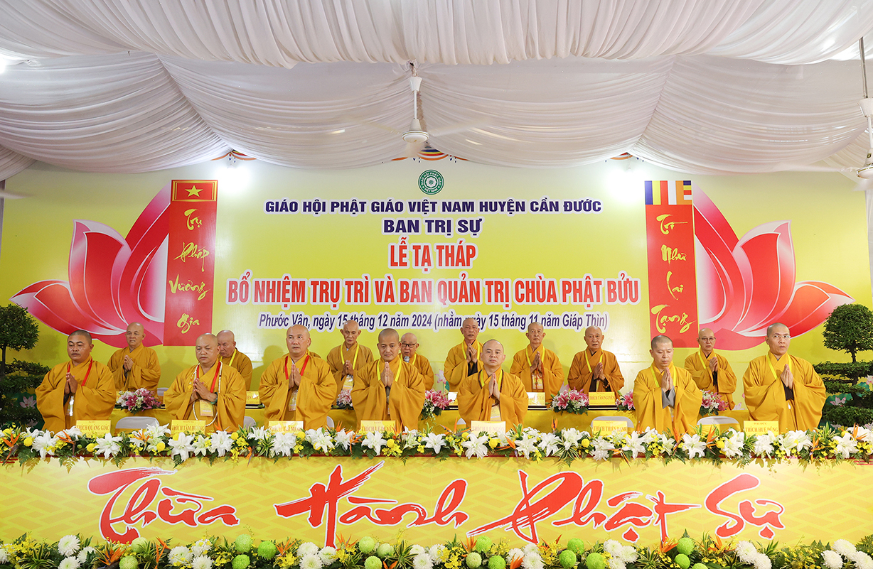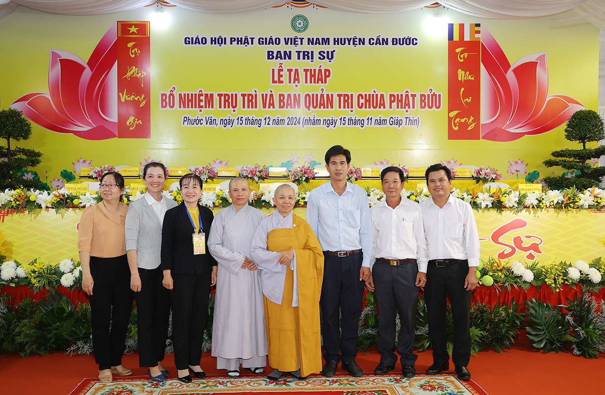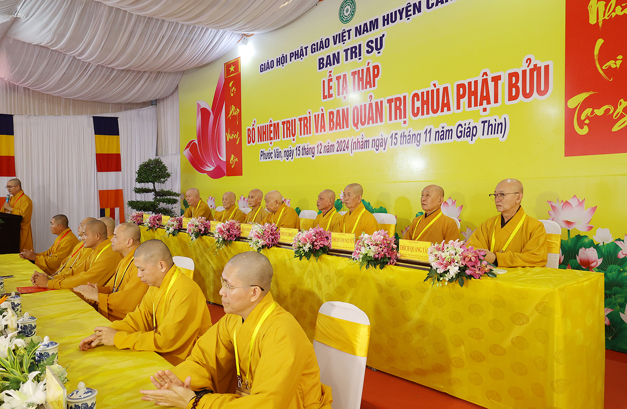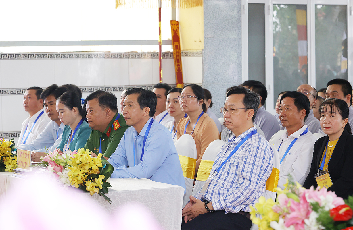 Buổi lễ được cung nghinh sự quang lâm chứng minh của Trưởng Lão Hòa thượng Thích Như Tín – Uỷ viên Thường trực HĐCM, Chứng minh BTS GHPGVN TPHCM, HT. Thích Thiện Huệ – Thành viên HĐCM, Chứng minh BTS GHPGVN tỉnh Long An; HT. Thích Minh Thiện – Uỷ viên HĐTS, Phó Trưởng Ban Hoằng pháp TƯ, Trưởng BTS GHPGVN tỉnh Long An, TT. Thích Quảng Tâm – Ủy viên HĐTS, Phó Trưởng ban Từ thiện Xã hội TƯ, Phó Trưởng ban Thường trực BTS GHPGVN tỉnh Long An; HT Thích Phước Huệ – UV Thường trực BTS GHPGVN tỉnh Bà Rịa – Vũng Tàu, Trưởng BTS GHPGVN TP Vũng Tàu, Trưởng Tông phòng Thiền tịnh đạo tràng, HT. Thích Trí Hườn – Phó Thường trực tông phong Thiền Tịnh đạo tràng, HT Thích Đạt An – CM BTS GHPGVN huyện Gò Công Tây, Phó Trưởng Tông phong Thiền tịnh đạo tràng, ĐĐ. Thích Lệ Duyên – Phó ban kiêm Chánh Thư ký BTS GHPGVN tỉnh Long An; ĐĐ Thích Lệ Ngôn- Phó Trưởng ban Trị sự kiêm trưởng Hoằng pháp BTS GHPGVN tỉnh Long An; ĐĐ. Thích Thiện Danh – Phó Thư ký kiêm Chánh Văn phòng BTS GHPGVN tỉnh Long An; ĐĐ. Thích Trí Minh – Ủy viên Ban Thường trực BTS GHPGVN tỉnh Long An, Trưởng BTS GHPGVN huyện Cần Đước; TT. Thích Tâm Hướng – UV BTS GHPGVN tỉnh Long An, Phó Trưởng ban Thường trực BTS GHPGVN huyện Cần Đước cùng; Chư tôn đức Ban Thường trực BTS GHPGVN tỉnh Long An; Chư tôn đức Ban Thường trực BTS GHPGVN huyện Cần Đước; Chư tôn đức Tăng Ni đồng chứng minh và tham dự.