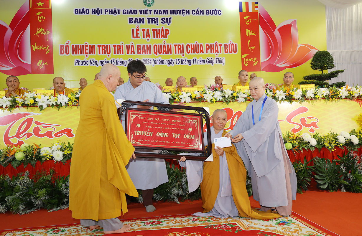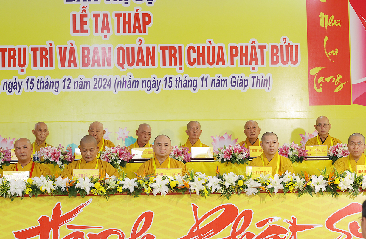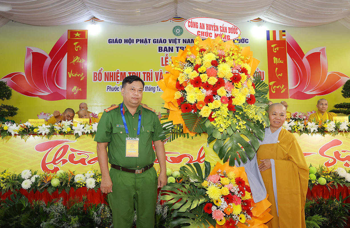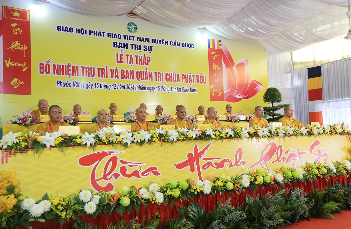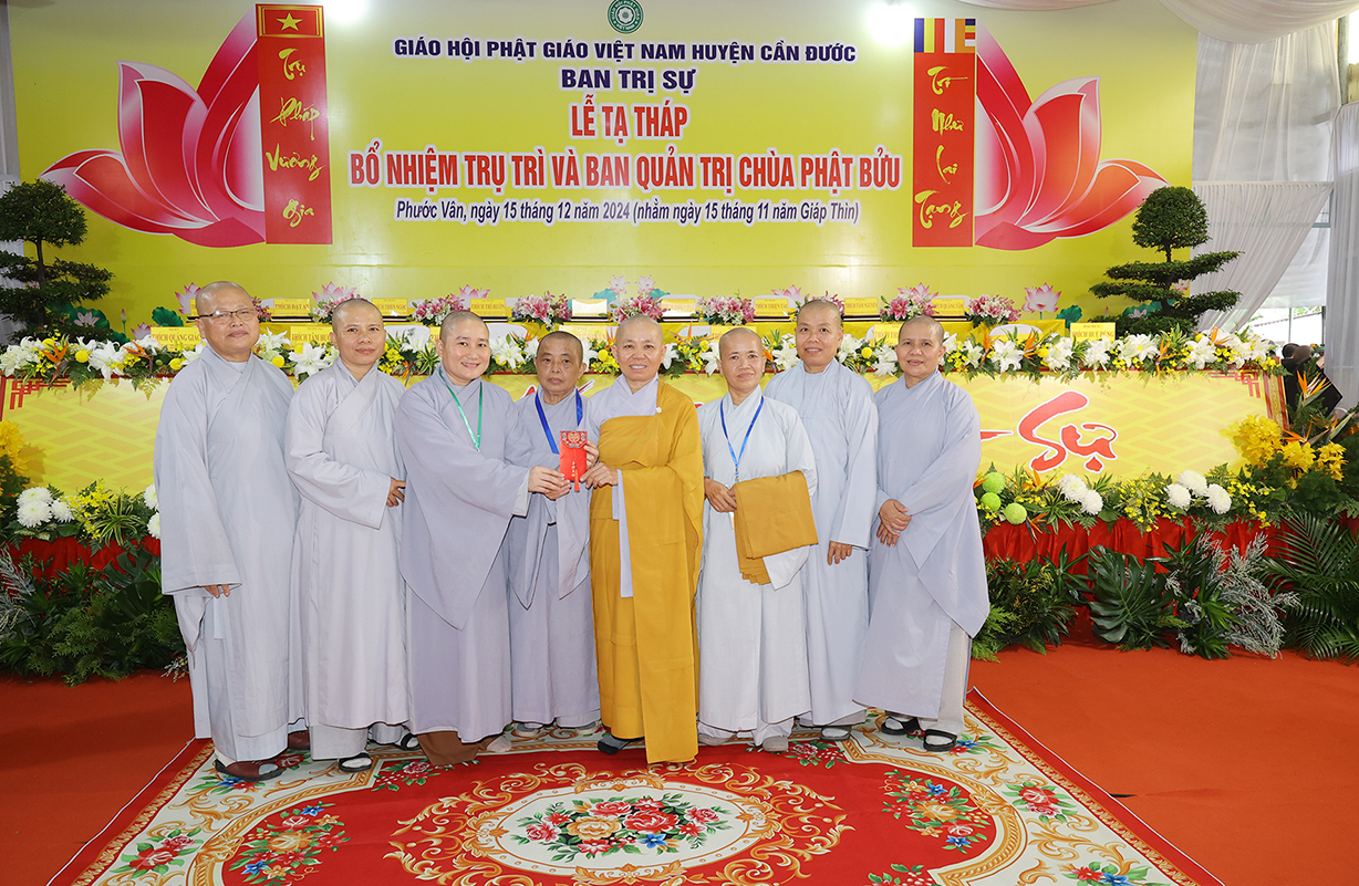 Buổi lễ được cung nghinh sự quang lâm chứng minh của Trưởng Lão Hòa thượng Thích Như Tín – Uỷ viên Thường trực HĐCM, Chứng minh BTS GHPGVN TPHCM, HT. Thích Thiện Huệ – Thành viên HĐCM, Chứng minh BTS GHPGVN tỉnh Long An; HT. Thích Minh Thiện – Uỷ viên HĐTS, Phó Trưởng Ban Hoằng pháp TƯ, Trưởng BTS GHPGVN tỉnh Long An, TT. Thích Quảng Tâm – Ủy viên HĐTS, Phó Trưởng ban Từ thiện Xã hội TƯ, Phó Trưởng ban Thường trực BTS GHPGVN tỉnh Long An; HT Thích Phước Huệ – UV Thường trực BTS GHPGVN tỉnh Bà Rịa – Vũng Tàu, Trưởng BTS GHPGVN TP Vũng Tàu, Trưởng Tông phòng Thiền tịnh đạo tràng, HT. Thích Trí Hườn – Phó Thường trực tông phong Thiền Tịnh đạo tràng, HT Thích Đạt An – CM BTS GHPGVN huyện Gò Công Tây, Phó Trưởng Tông phong Thiền tịnh đạo tràng, ĐĐ. Thích Lệ Duyên – Phó ban kiêm Chánh Thư ký BTS GHPGVN tỉnh Long An; ĐĐ Thích Lệ Ngôn- Phó Trưởng ban Trị sự kiêm trưởng Hoằng pháp BTS GHPGVN tỉnh Long An; ĐĐ. Thích Thiện Danh – Phó Thư ký kiêm Chánh Văn phòng BTS GHPGVN tỉnh Long An; ĐĐ. Thích Trí Minh – Ủy viên Ban Thường trực BTS GHPGVN tỉnh Long An, Trưởng BTS GHPGVN huyện Cần Đước; TT. Thích Tâm Hướng – UV BTS GHPGVN tỉnh Long An, Phó Trưởng ban Thường trực BTS GHPGVN huyện Cần Đước cùng; Chư tôn đức Ban Thường trực BTS GHPGVN tỉnh Long An; Chư tôn đức Ban Thường trực BTS GHPGVN huyện Cần Đước; Chư tôn đức Tăng Ni đồng chứng minh và tham dự.