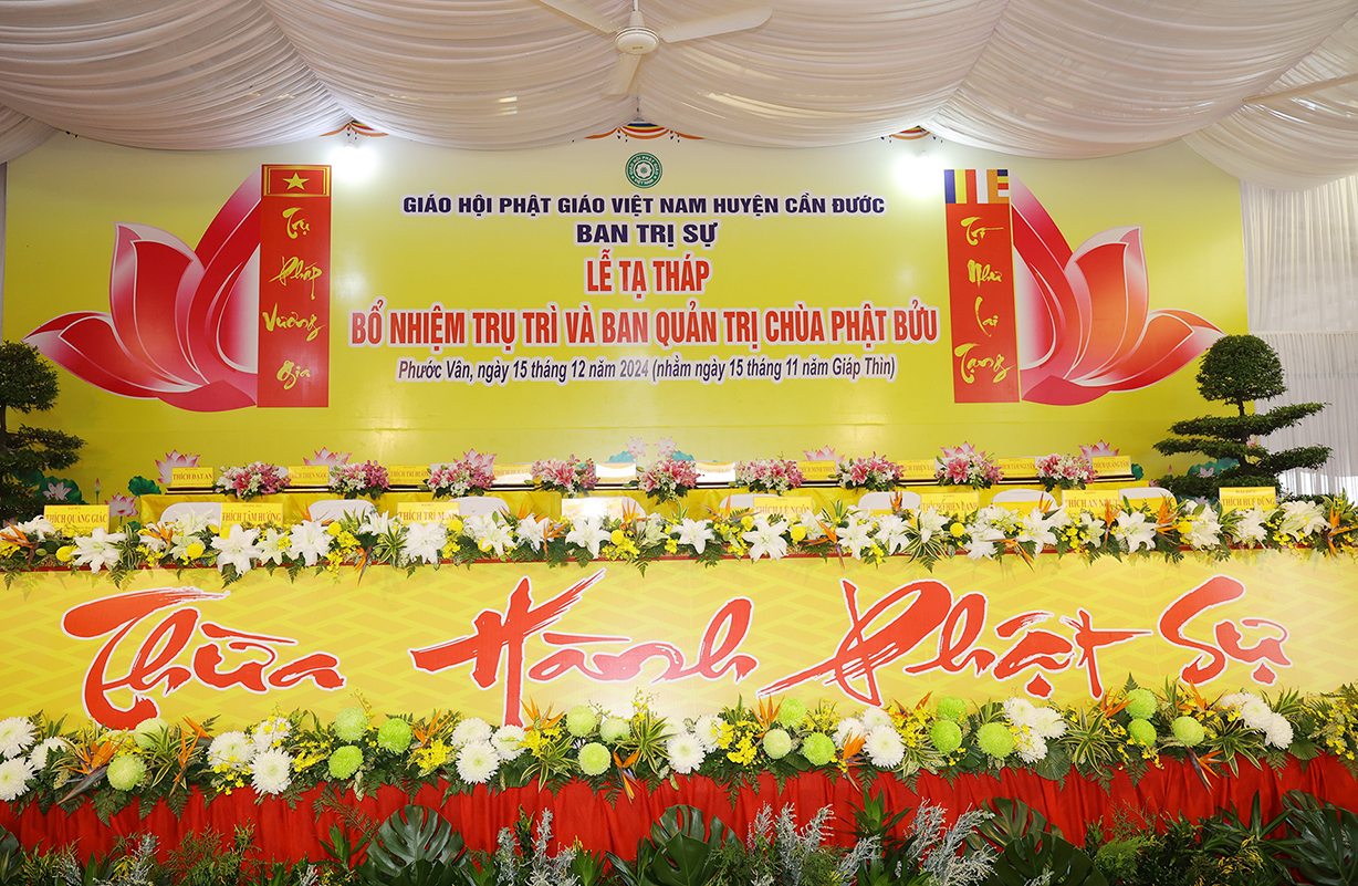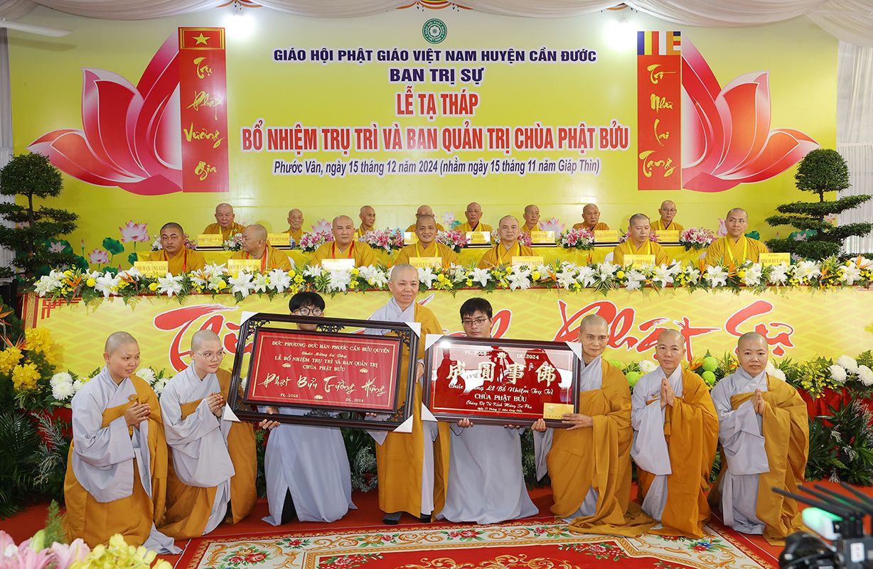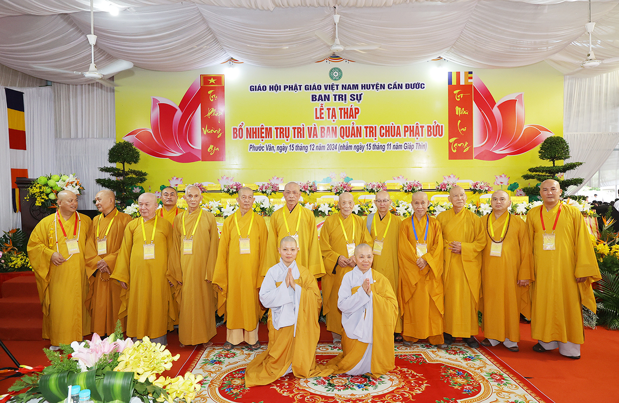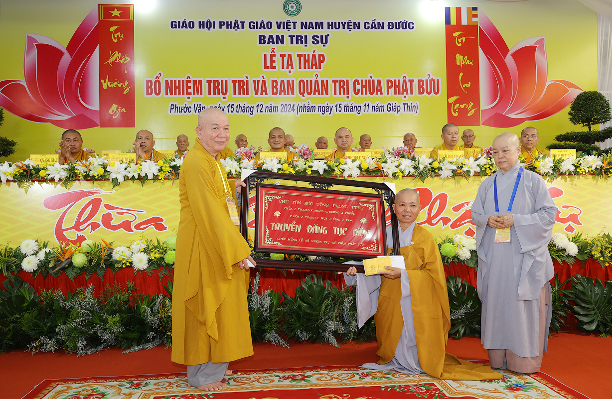 Buổi lễ được cung nghinh sự quang lâm chứng minh của Trưởng Lão Hòa thượng Thích Như Tín – Uỷ viên Thường trực HĐCM, Chứng minh BTS GHPGVN TPHCM, HT. Thích Thiện Huệ – Thành viên HĐCM, Chứng minh BTS GHPGVN tỉnh Long An; HT. Thích Minh Thiện – Uỷ viên HĐTS, Phó Trưởng Ban Hoằng pháp TƯ, Trưởng BTS GHPGVN tỉnh Long An, TT. Thích Quảng Tâm – Ủy viên HĐTS, Phó Trưởng ban Từ thiện Xã hội TƯ, Phó Trưởng ban Thường trực BTS GHPGVN tỉnh Long An; HT Thích Phước Huệ – UV Thường trực BTS GHPGVN tỉnh Bà Rịa – Vũng Tàu, Trưởng BTS GHPGVN TP Vũng Tàu, Trưởng Tông phòng Thiền tịnh đạo tràng, HT. Thích Trí Hườn – Phó Thường trực tông phong Thiền Tịnh đạo tràng, HT Thích Đạt An – CM BTS GHPGVN huyện Gò Công Tây, Phó Trưởng Tông phong Thiền tịnh đạo tràng, ĐĐ. Thích Lệ Duyên – Phó ban kiêm Chánh Thư ký BTS GHPGVN tỉnh Long An; ĐĐ Thích Lệ Ngôn- Phó Trưởng ban Trị sự kiêm trưởng Hoằng pháp BTS GHPGVN tỉnh Long An; ĐĐ. Thích Thiện Danh – Phó Thư ký kiêm Chánh Văn phòng BTS GHPGVN tỉnh Long An; ĐĐ. Thích Trí Minh – Ủy viên Ban Thường trực BTS GHPGVN tỉnh Long An, Trưởng BTS GHPGVN huyện Cần Đước; TT. Thích Tâm Hướng – UV BTS GHPGVN tỉnh Long An, Phó Trưởng ban Thường trực BTS GHPGVN huyện Cần Đước cùng; Chư tôn đức Ban Thường trực BTS GHPGVN tỉnh Long An; Chư tôn đức Ban Thường trực BTS GHPGVN huyện Cần Đước; Chư tôn đức Tăng Ni đồng chứng minh và tham dự.