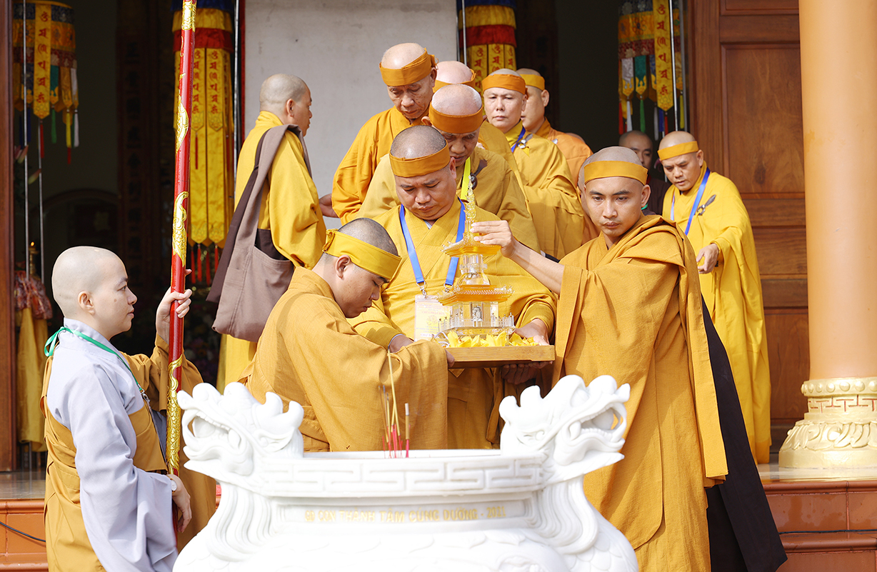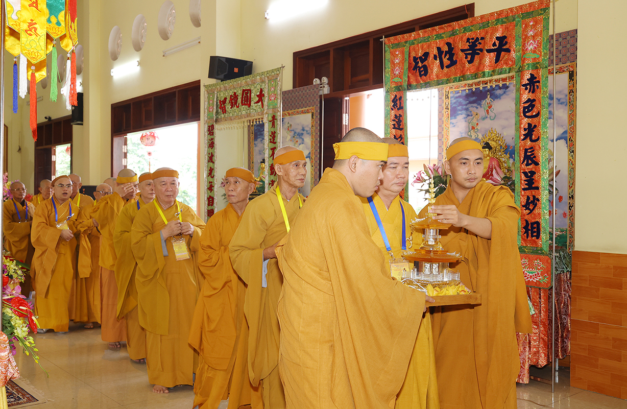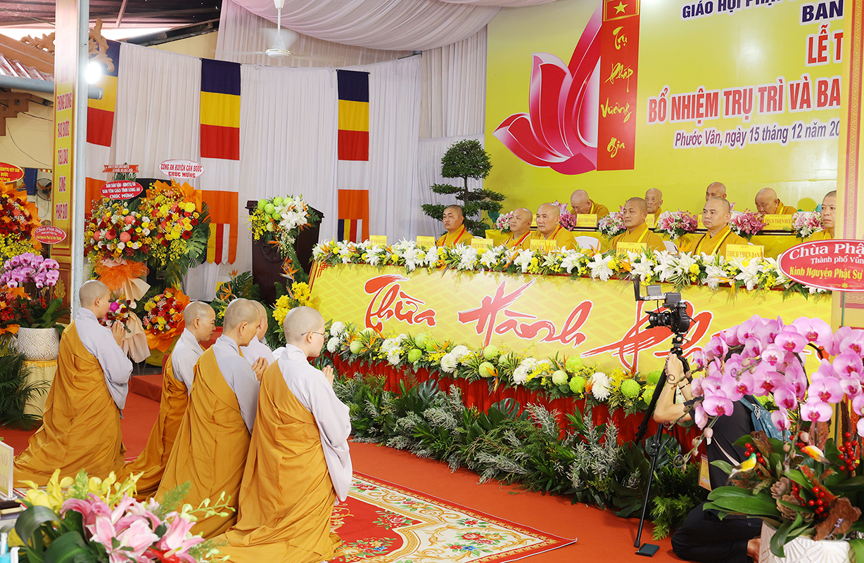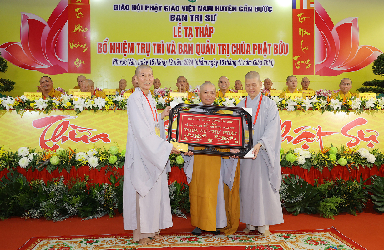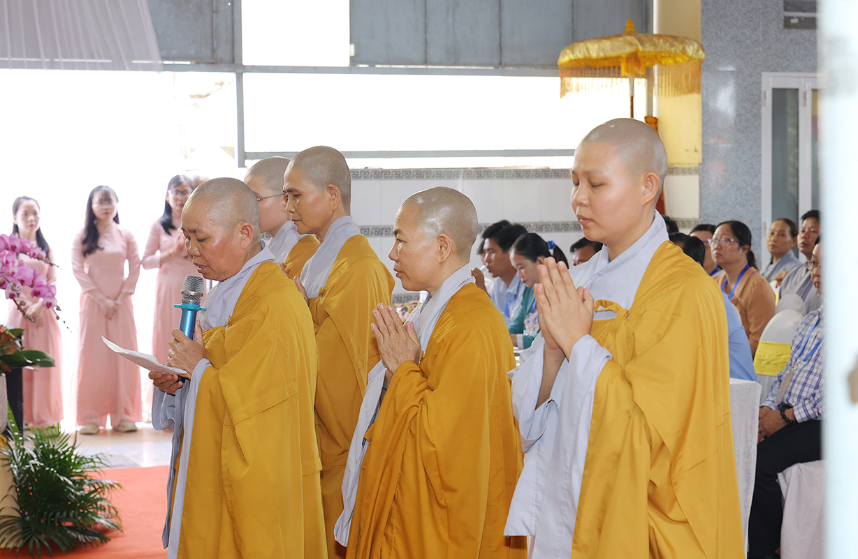 Thay mặt Thường trực BTS GHPGVN huyện Cần Đước, Thượng tọa Thích Tâm Hướng có lời cảm tạ, tri ân Chư Tôn Trưởng lão Hòa thượng, Chư tôn đức Tăng, Ni, Chính quyền các cấp đã luôn tận tâm, giúp đỡ, hỗ trợ về mọi mặt để buổi lễ được thập phần viên mãn. Sau đó. Ban tổ chức cung thỉnh chư Tôn đức chứng minh quang lâm trai đường thọ trai hoàn mãn buổi lễ trong niềm hoan hỷ.