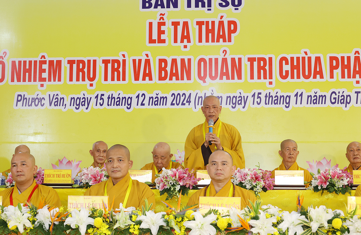 Hòa Thượng Thích Trí Hường – Phó Thường trực Tông phong Thiền tịnh Đạo tràng đã ban lời sách tấn Ni sư Tân Trụ trì và toàn thể thành viên Ban Quản Trị, Hòa thượng mong cầu Chư Phật gia hộ để mọi Phật sự nơi Chùa Phật Bửu sẽ được thành tựu tốt đẹp như sự hoài vọng của cố Trưởng lão Hòa thượng Thích Tịnh Hạnh.