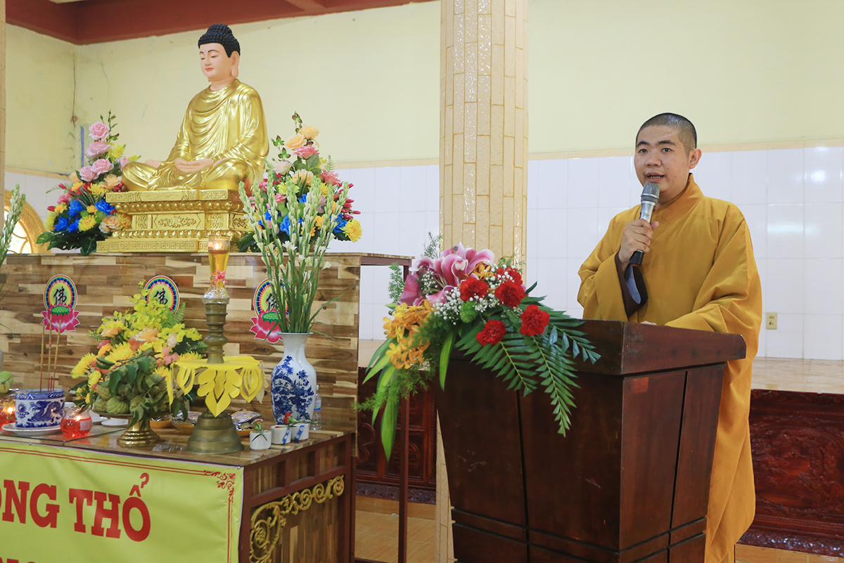Tại buổi lễ Sư Cô Thích Nữ Diệu Ngộ đã thay lời Hòa thượng Viện chủ Chùa Phổ An cung bạch tâm nguyện của Hòa thượng về việc trung tu giảng đường tại chùa để trang nghiêm đạo tràng, tạo môi trường tu tập tốt cho chư tôn đức và quý Phật tử, ổn định sinh hoạt hội họp của Chư tôn đức BTS tại Văn phòng Phật giáo huyện nhà, góp phần chung tay vào sự phát triển của Phật giáo tỉnh Long An và huyện cần Đước ngày một tốt đẹp hơn.