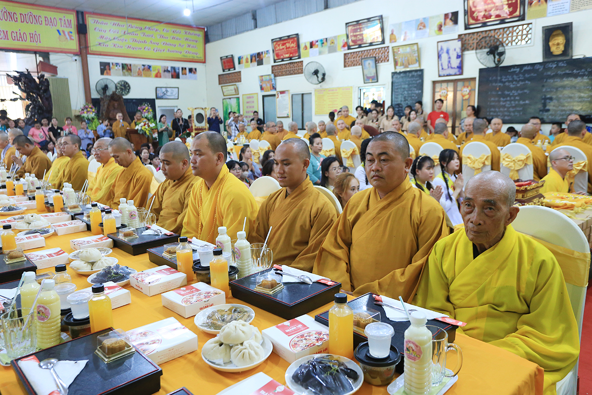 Buổi lễ được cung nghinh sự quang lâm chứng minh của Hòa thượng Thích Minh Thiện – UV HĐTS – Phó Trưởng Ban Hoằng pháp TW – Trưởng BTS GHPGVN tỉnh Long An – Thượng tọa Thích Quảng Tâm – UV HĐTS, Phó Trưởng Ban Từ thiện xã Hội TƯ, Phó trưởng Ban Thường trực BTS GHPGVN tỉnh Long An, Thượng Tọa Thích Đức Hoàng – Phó Trưởng BTS GHPGVN tỉnh Long An, Hòa thượng Thích Thiện Phước – CM BTS GHPGVN quận 6, TPHCM, chư tôn đức Thành viên BTS GHPGVN tỉnh Long An, Hòa thượng Thích Tâm Nguyên, Hòa thượng Thích Bửu Ứng, Hòa thượng Thích Thiện Ngọc – Đồng Chứng minh BTS GHPGVN huyện Cần Đước, Thượng tọa Thích Trí Minh – UV Thường trực BTS GHPGVN tỉnh Long An, Trưởng BTS GHPGVN huyện Cần Đước, Thượng tọa Thích Tâm Hướng – UV BTS GHPGVN tỉnh Long An, Phó Trưởng Ban Thường trực BTS GHPGVN huyện Cần Đước, Trụ trì Chùa Tào Khê, Đại đức Thích Quảng Giác – UV BTS GHPGVN tỉnh Long An, Phó Trưởng BTS GHPGVN huyện Cần Đước, chư tôn đức Tăng Ni thành viên BTS GHPGVN huyện Cần Đước, chư tôn đức trụ trì trú xứ các tự viên trong và ngoài huyện, với hơn 1000 Phật tử đồng thân lâm trở về tham dự.
