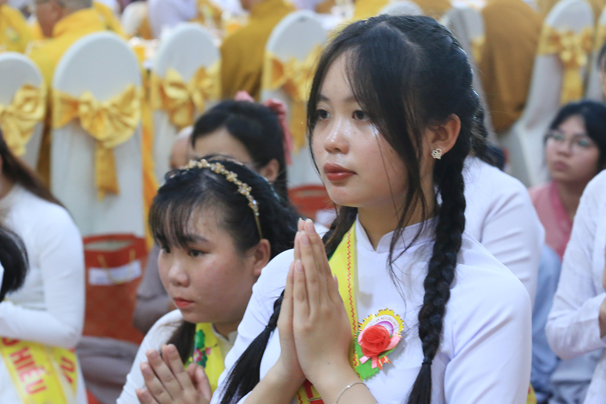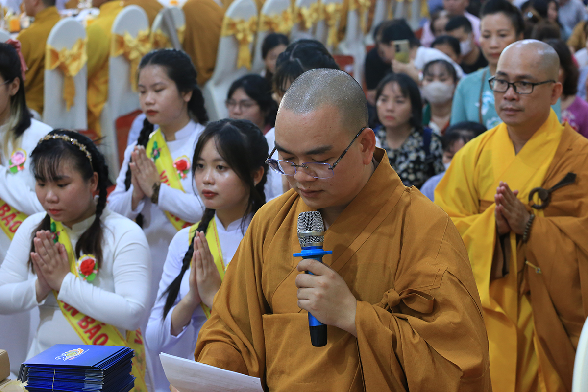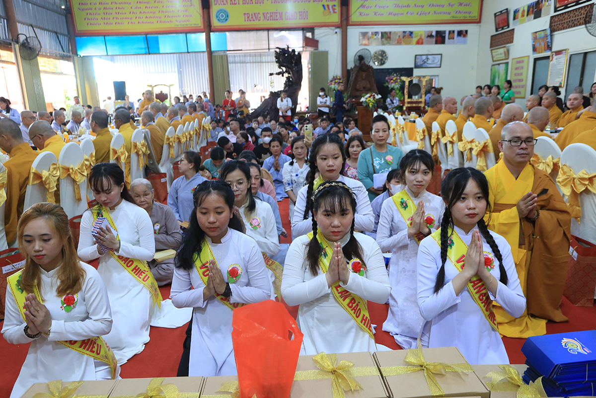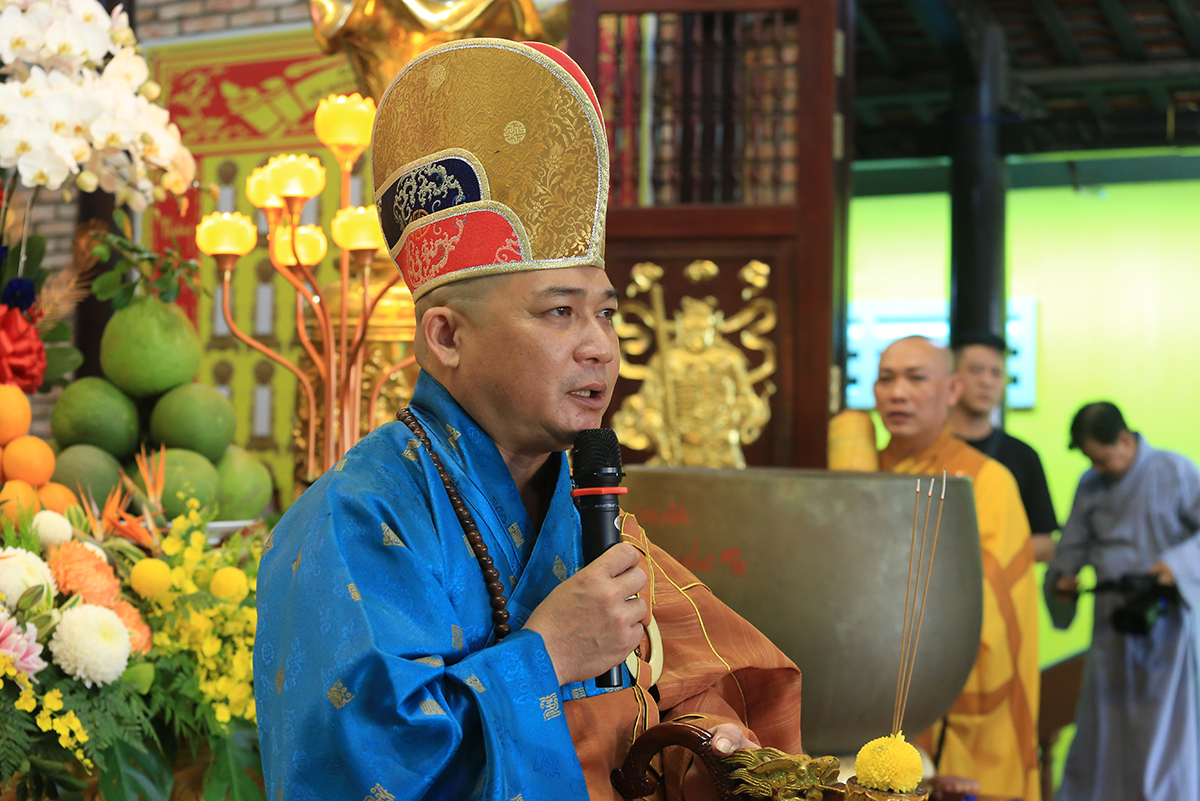 Toàn thể đại chúng được lắng lòng từ lời pháp âm ban đạo từ của Hòa thượng Thích Minh Thiện – UV HĐTS, Phó Trưởng Ban Hoằng pháp TƯ – Trưởng BTS GHPGVN tỉnh Long An-,trong lời đạo từ, Hòa thượng đã lần nữa nhắc lại tinh thần tri ân, báo ân, của dân tộc Việt Nam, đặc biệt đề cao giá trị hiếu ân của người bổn phận người Phật tử đối với Thầy Tổ và cha mẹ, Ngài đã sách tấn hội chúng cần siêng năng, tinh tấn học Phật, phụng dưỡng cha mẹ bằng sự nhiệt tâm chuyên nhất, Hòa thượng đã nhắc lại cho hàng Phật tử kính nhớ Tổ tiên Cha mẹ và đền đáp công bốn ơn nặng, phải luôn luôn ghi nhớ để báo đáp công lao to lớn mà cha mẹ đã hy sinh thầm lặng cả cuộc đời cho ta được lớn khôn đến tận hôm nay.