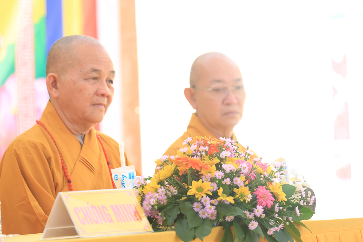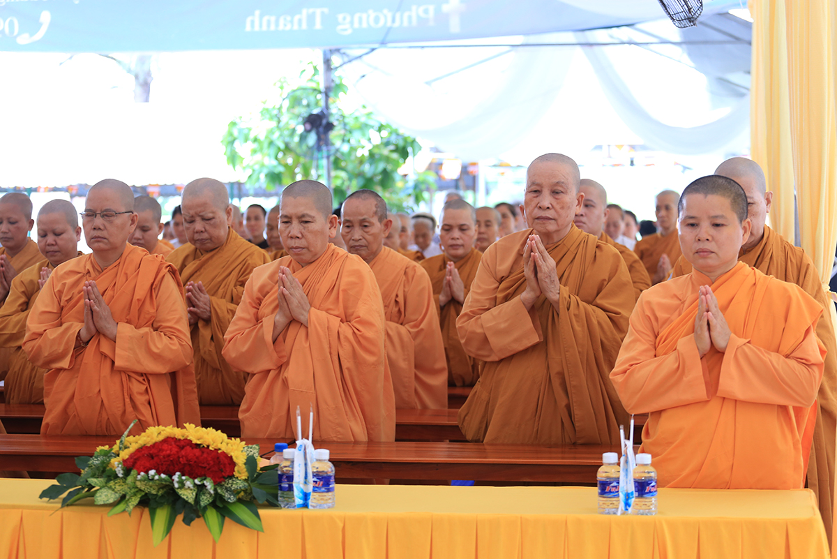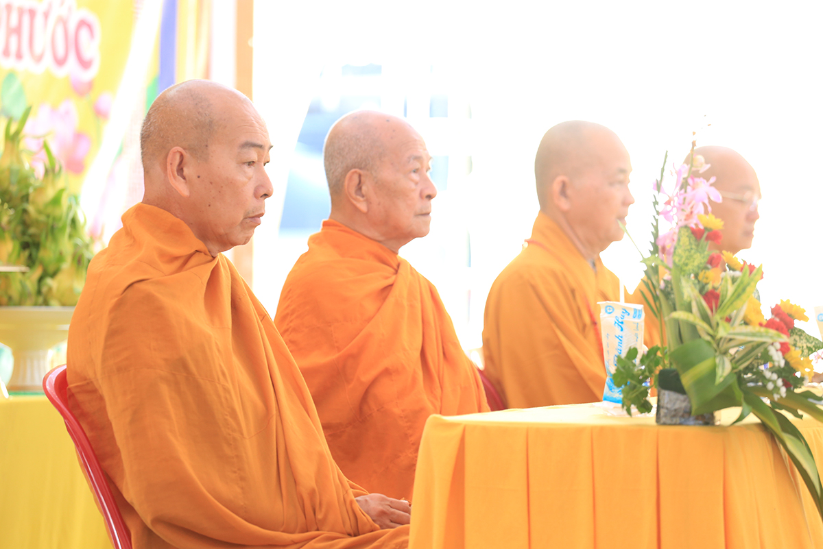 Buổi lễ được cung nghinh sự quang lâm chứng minh của Hòa thượng Thích Giác Giới – Phó Thư ký HĐCM GHPGVN, Giáo phẩm chứng minh hệ phái Khất sĩ Việt Nam; Hòa thượng Thích Minh Thiện – UV HĐTS – Phó Trưởng Ban Hoằng pháp TƯ, Trưởng BTS GHPGVN tỉnh Long An; Thượng toạ Thích Quảng Tâm – UVHĐTS, Phó Trưởng Ban Thường trực BTS GHPGVN tỉnh Long An,Thương toạ Thích Giác Hy- Phó Ban trị sự GHPGVN tỉnh Bạc Liêu, Phó Tri sự giáo đoàn 1; Ni trưởng Thích Nữ Tâm Liên- Chứng minh Phân Ban Ni giới trung ương, Đương kiêm Trưởng Ban huệ phái Khất sĩ Việt Nam;Ni Trưởng Thích Nữ Chiêu Liên- Chứng minh Phân Ban Ni giới tỉnh Đồng Nai, Giáo phẩm thường trực hệ phái Khất sĩ; Ni trưởng Thích Nữ Tố Liên- Nguyên Uỷ viên HĐTSTƯ, Chứng minh Phân ban Ni giới trung ương, giáo phẩm hê phái Khất sĩ Việt Nam; cùng Chư tôn đức Ni trực thuộc hệ phái Khất sĩ Việt Nam.