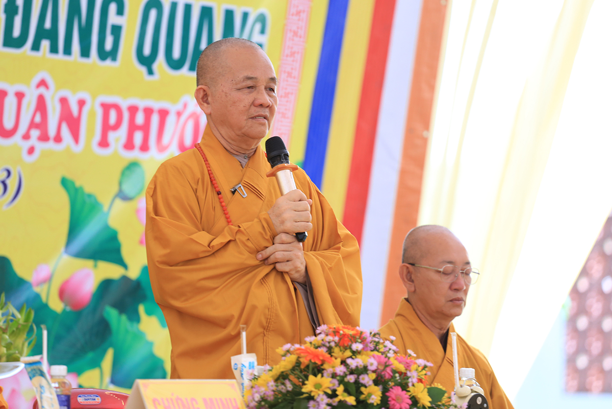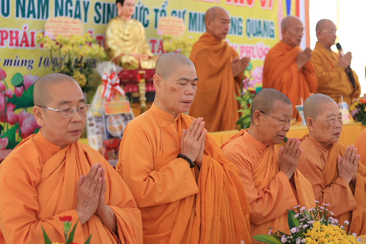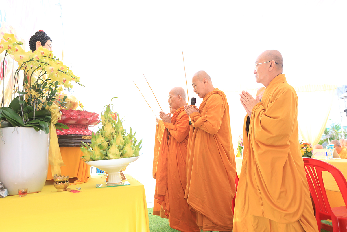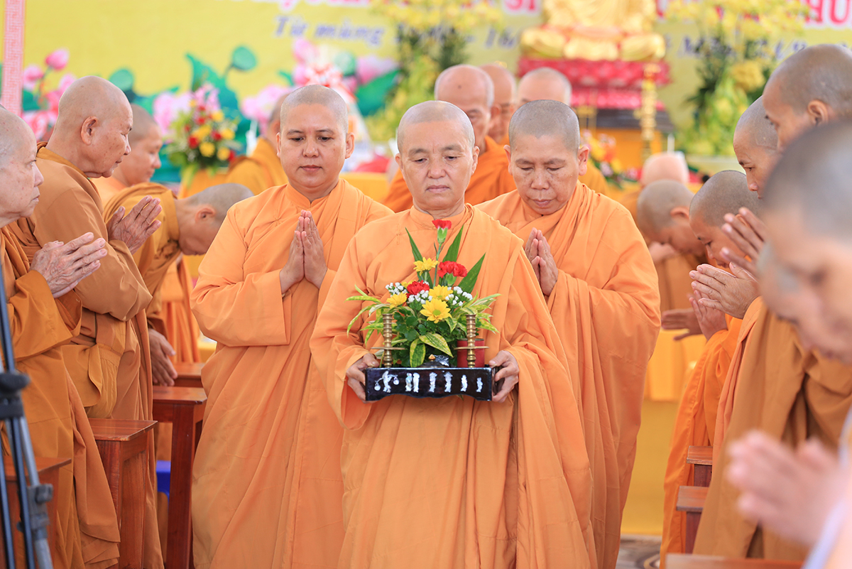 Buổi lễ được cung nghinh sự quang lâm chứng minh của Hòa thượng Thích Giác Giới – Phó Thư ký HĐCM GHPGVN, Giáo phẩm chứng minh hệ phái Khất sĩ Việt Nam; Hòa thượng Thích Minh Thiện – UV HĐTS – Phó Trưởng Ban Hoằng pháp TƯ, Trưởng BTS GHPGVN tỉnh Long An; Thượng toạ Thích Quảng Tâm – UVHĐTS, Phó Trưởng Ban Thường trực BTS GHPGVN tỉnh Long An,Thương toạ Thích Giác Hy- Phó Ban trị sự GHPGVN tỉnh Bạc Liêu, Phó Tri sự giáo đoàn 1; Ni trưởng Thích Nữ Tâm Liên- Chứng minh Phân Ban Ni giới trung ương, Đương kiêm Trưởng Ban huệ phái Khất sĩ Việt Nam;Ni Trưởng Thích Nữ Chiêu Liên- Chứng minh Phân Ban Ni giới tỉnh Đồng Nai, Giáo phẩm thường trực hệ phái Khất sĩ; Ni trưởng Thích Nữ Tố Liên- Nguyên Uỷ viên HĐTSTƯ, Chứng minh Phân ban Ni giới trung ương, giáo phẩm hê phái Khất sĩ Việt Nam; cùng Chư tôn đức Ni trực thuộc hệ phái Khất sĩ Việt Nam.