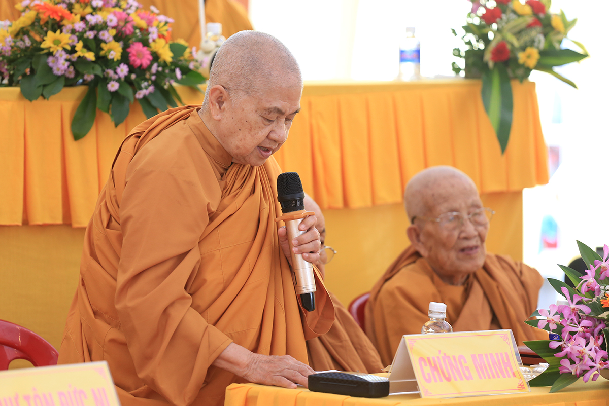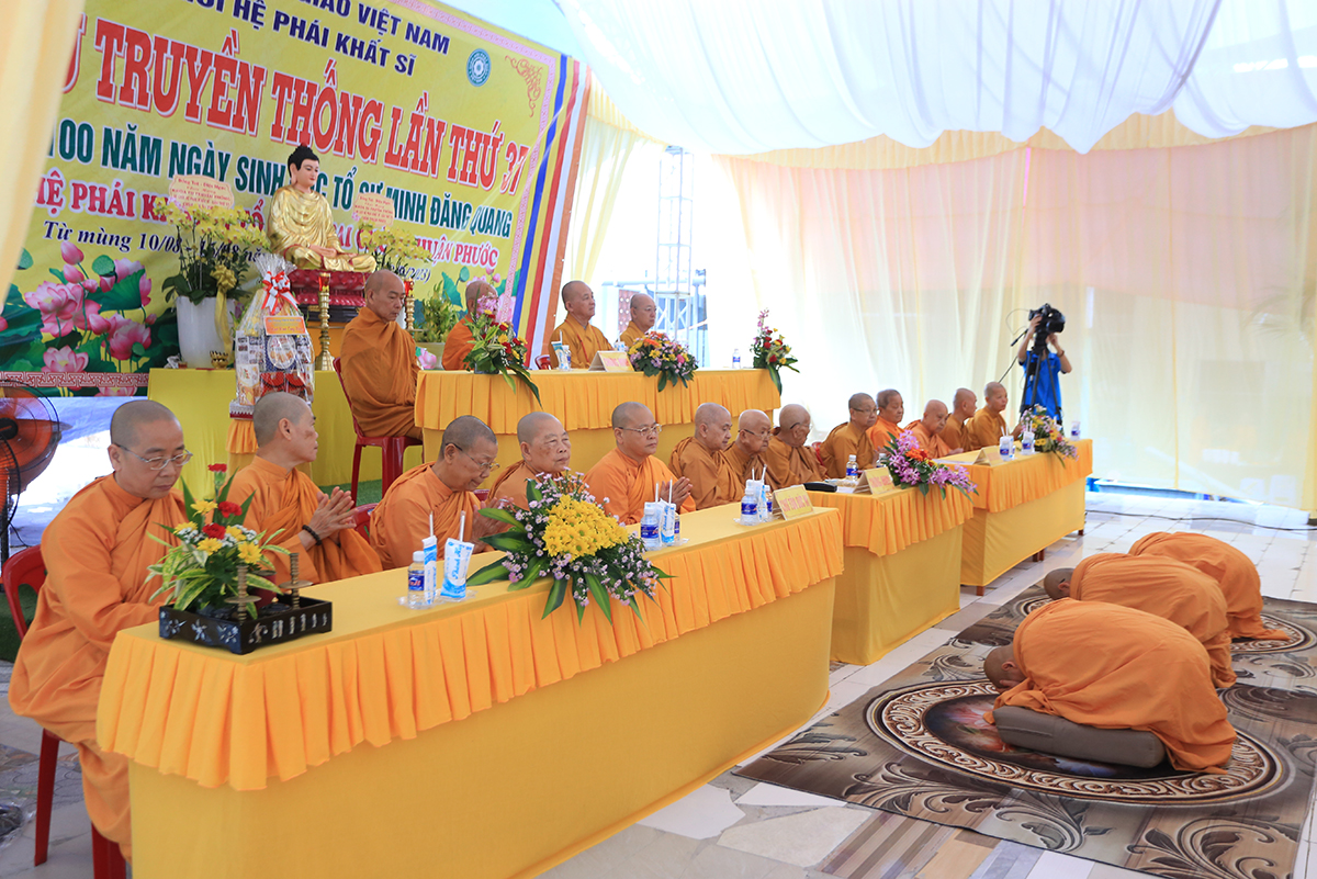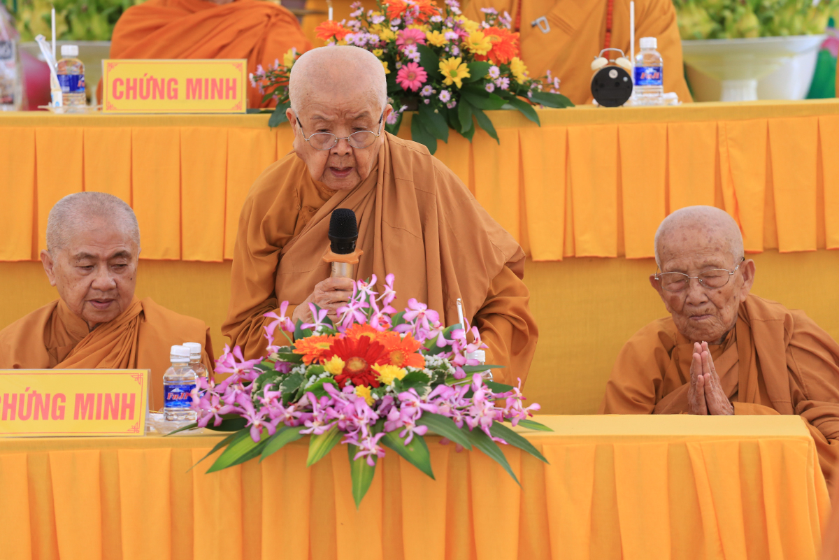 Chứng minh tối cao buổi lễ, Hòa thượng Thích Giác Giới – Phó Chánh Thư ký HĐCM, Chứng minh Hệ pháp Khất sĩ – Trưởng giáo đoàn I Hệ phái Khất sĩ Việt Nam, trong lời đạo từ, Hòa thượng đã ôn lại lịch sử phát triển Phật giáo Khất sĩ từ lúc Tổ sư Minh Đăng Quang khai sáng đến ngày hôm nay. Ngài đã nhấn mạnh con đường tu tập không gì khác ngoài việc trau dồi Tam vô Lậu học, lấy nền tảng chân lý mà Đức Tổ Sư đã truyền dạy để y theo đó mà tu tập, luôn đoàn kết, hòa hợp, hỗ trợ lẫn nhau trên lộ trình tu tập, làm sáng danh hệ phái Khất sĩ Việt Nam trên con đường đóng góp vào sự nghiệp phát triển Phật giáo Việt Nam.