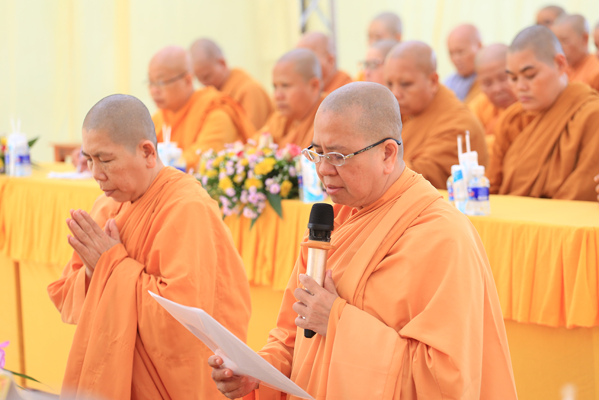 Ni sư Thích Nữ Khoa Liên – Đại diện chư hành giả tham gia khóa tu đã dâng lời Phát nguyện trước Chư tôn đức chứng minh, nguyện tinh tấn tu tập, hành trì giáo pháp, siêng năng gìn giữ giới luật, tinh cầu học pháp, giữ gìn và phát triển Giới – Định – Tuệ, lấy trí tuệ làm sự nghiệp trên con đường tầm đạo giải thoát.