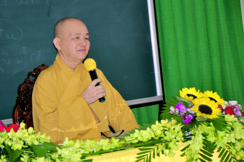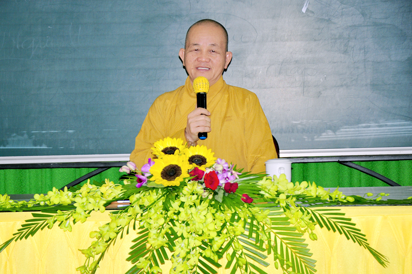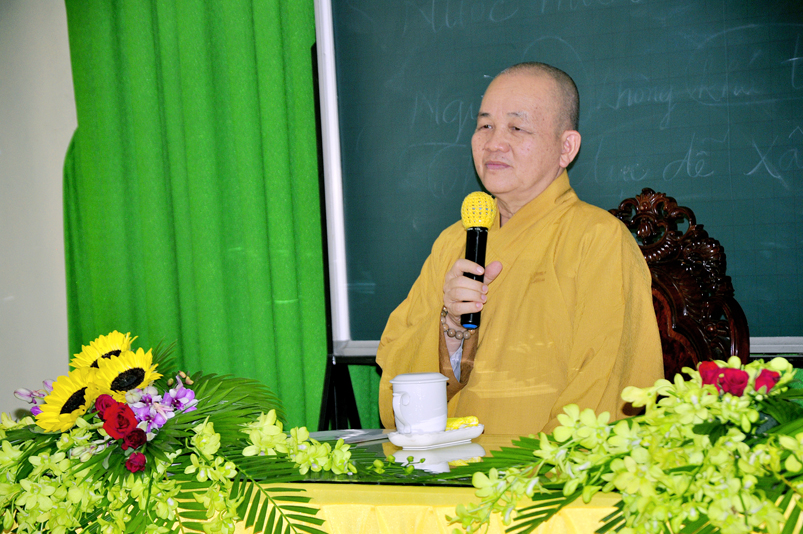Mở đầu thời pháp thoại, Hòa thượng đã kính tuyên dương ân đức của Từ phụ Bổn sư Thích Ca Mâu Ni, cung kính ôn lại quá trình hành đạo của đức Thế Tôn và năm anh em Kiều Trần Như, cũng như đạo lý các pháp duyên sinh ‘thành, trụ, hoại, không’ mà Đức Phật đã chứng ngộ, chứng minh sự hình thành của các pháp trong suốt cả ba thời đều là giả tạm; và nghiệp quả của mỗi người đều do chính con người tạo ra.