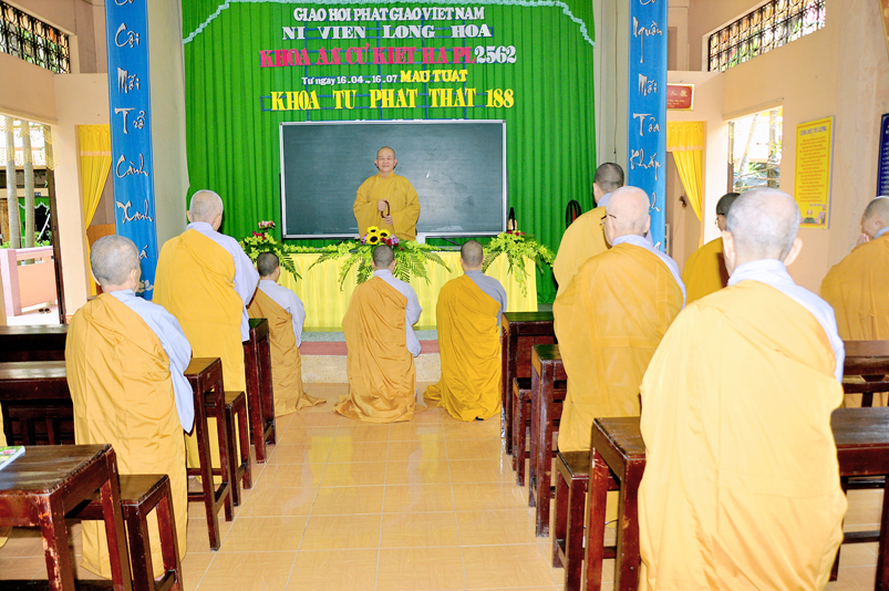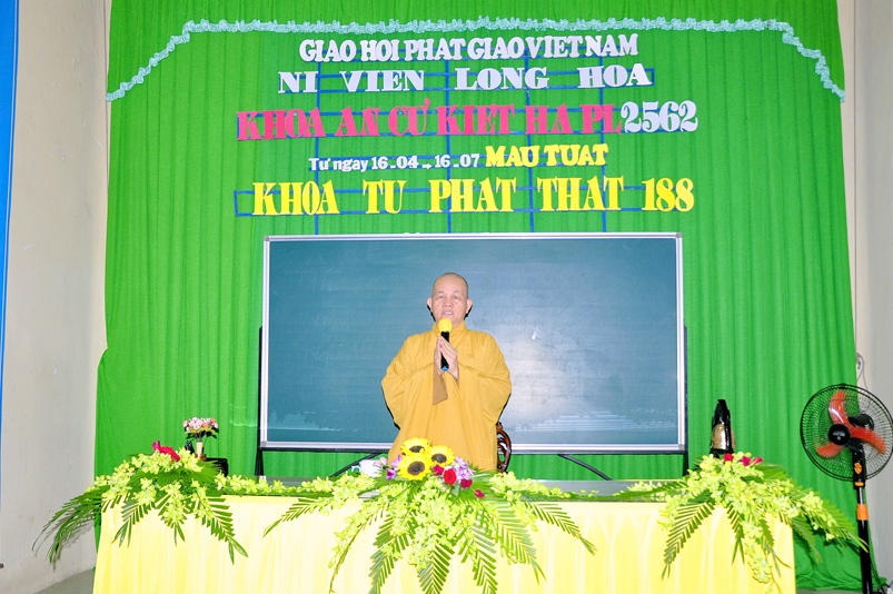 Không chỉ nhắc nhở chư Ni hành giả an cư, Hòa thượng còn ân cần nhắn nhủ các Phật tử về dự khóa tu Phật thất hãy phát nguyện giữ gìn năm giới, hằng ngày nên kiểm soát chính mình, không sa ngã, làm tốt công việc của một đàn-việt hộ trì chánh pháp.