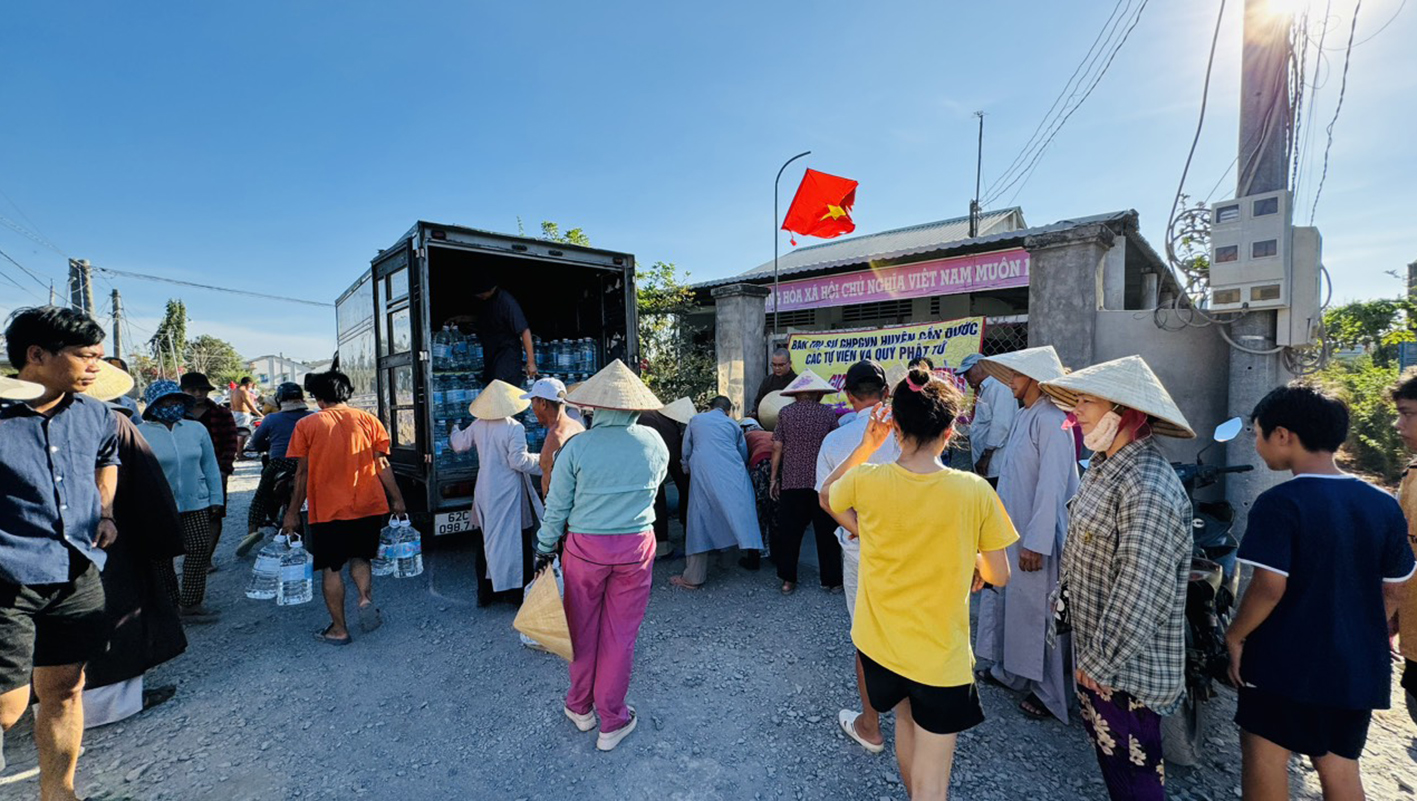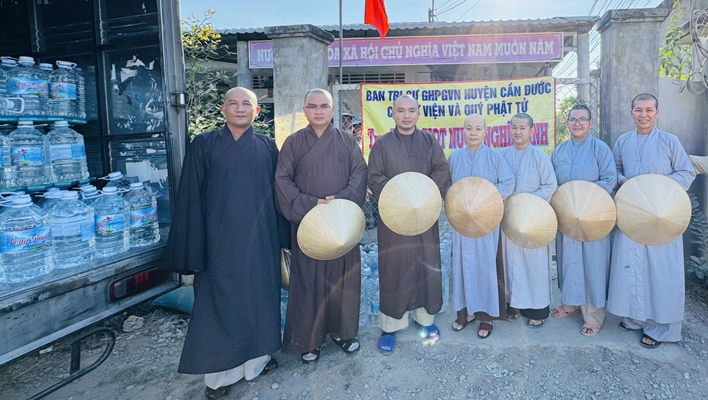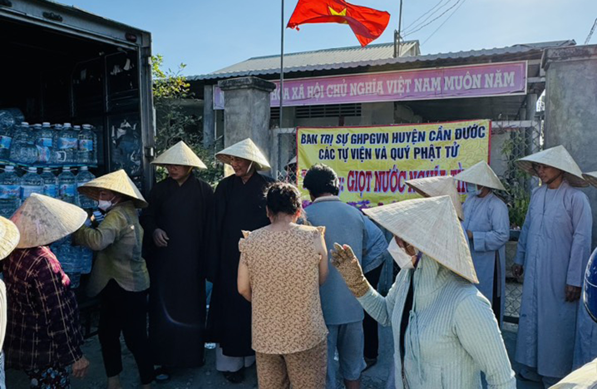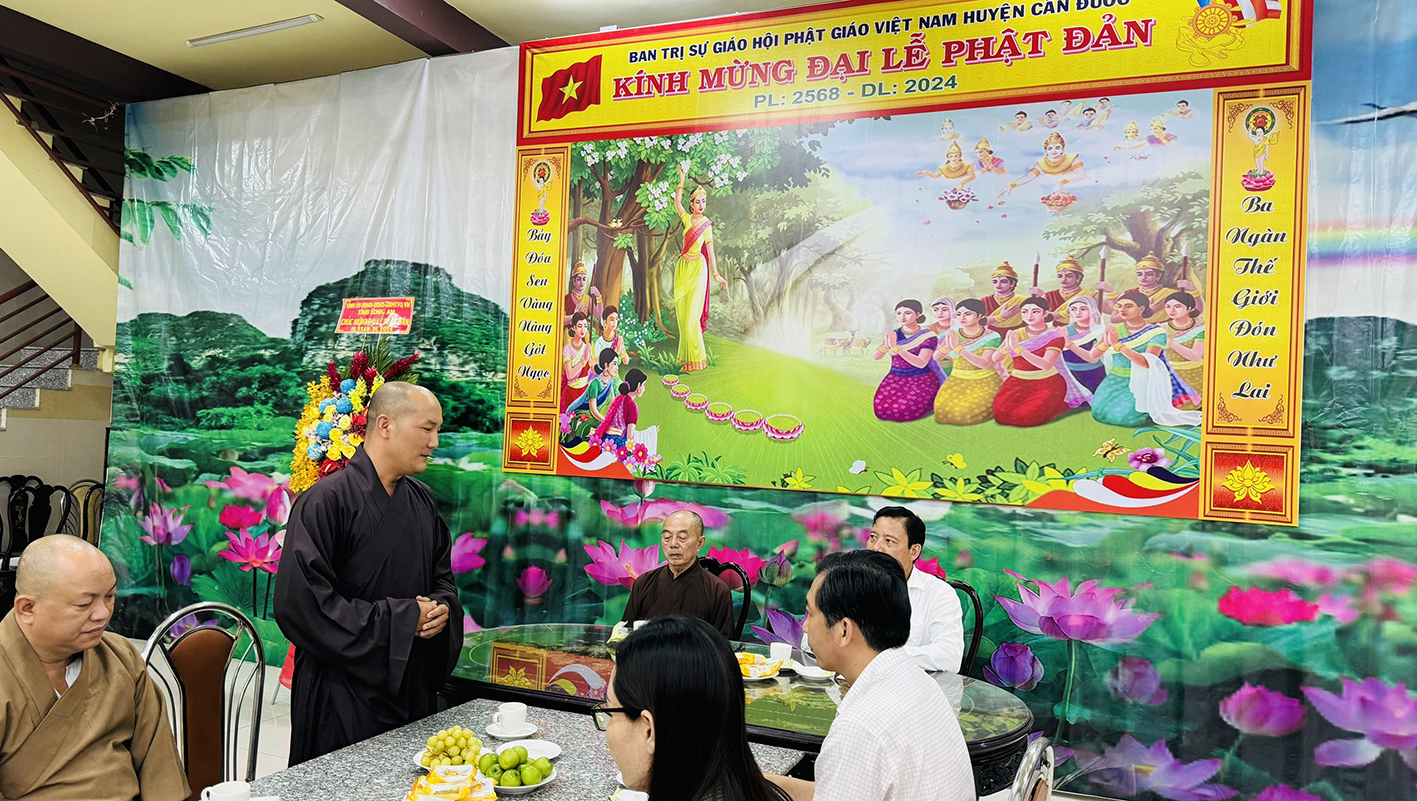 Thay mặt thường trực BTS GHPGVN huyện Cần Đước, Đại đức Thích Trí Minh – Trưởng BTS GHPGVN huyện Cần Đước đã gửi lời cảm ơn sâu sắc đến Tỉnh Ủy, HĐND, UBND, các sở ban ngành tỉnh Long An và huyện Cần Đước, xã Long Trạch sở tại đã luôn quan tâm, tạo điều kiện thuận lợi để Phật giáo huyện nhà ngày càng phát triển. Đồng thời Đại đức bày tỏ về thành tựu của công tác Phật sự tại huyện nhà trong những tháng đầu năm 2024 để tạo thành công đức kính mừng Đại lễ Phật đản năm 2024 tròn đầy ý nghĩa. BTS huyện đã phát động Phật sự hỗ trỡ nước cho các vùng nhiễm hạn mặn, với hơn 3000 bình nước 20 lít và khoảng 2000 lốc nước uống đến nhân dân trong vùng hạn mặn. Huy động các tự viện có điều kiện quý mạnh thường quân vận chuyển nước về các vùng đang cấp thiết cần nguồn nước ngọt để sử dụng ở Gò Công, Cần Giuộc và Cần Đước với tổng kinh phí hơn 300 triệu đồng.
