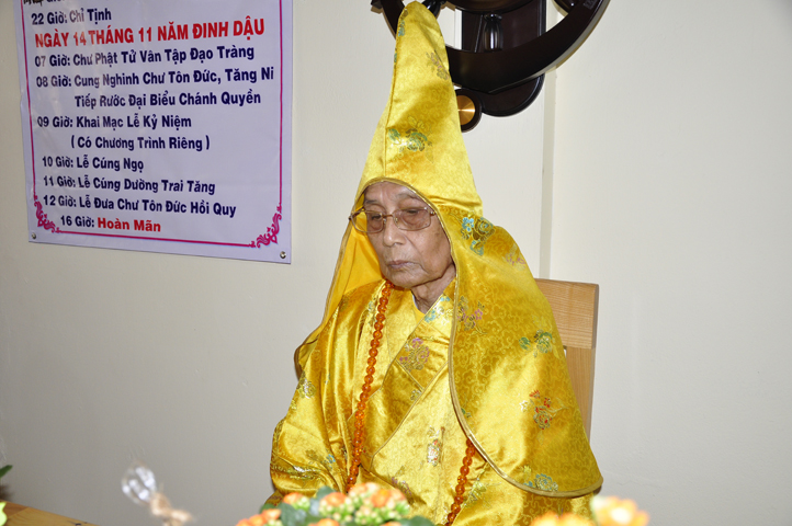 Nội dung chương trình gồm ngoài nghi lễ truyền thống, lời khánh tuế của BTS GHPGVN tỉnh Long An, chúc khánh tuế của BTS GHPGVN huyện Cần Đước, chúc khánh tuế của tứ chúng đệ tử, thông qua và quyết định trụ trì, đạo từ của Hoà thượng Chứng minh, và phẩm vật cúng dường Hoà thượng Ân Sư.