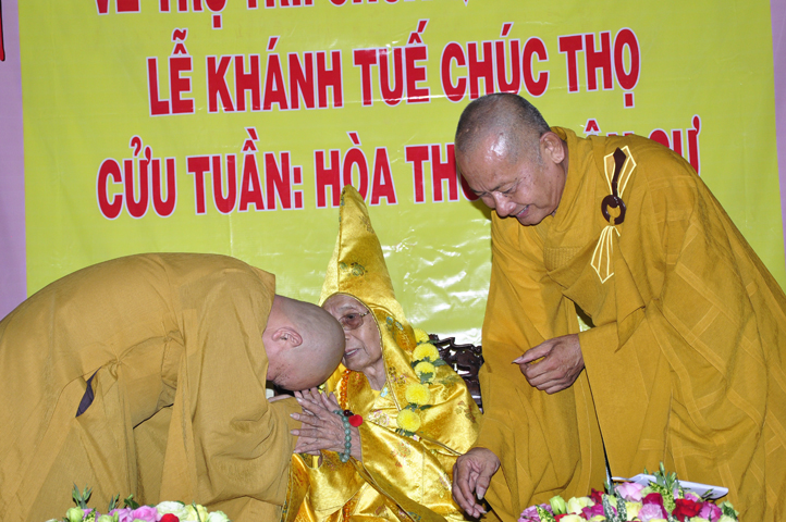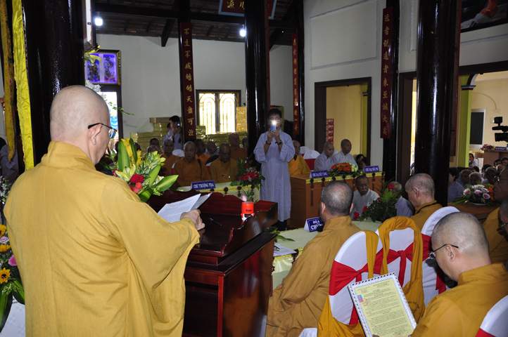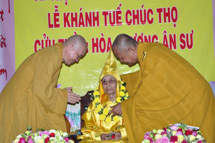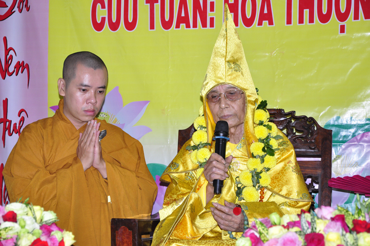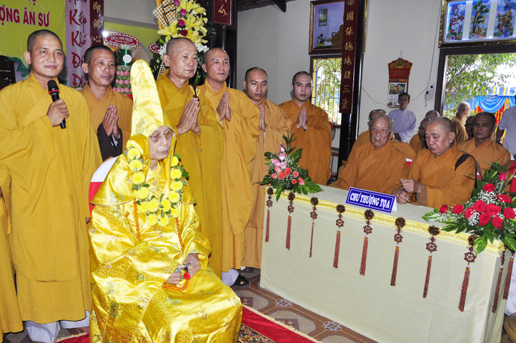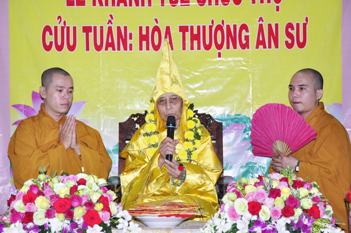 Để che bóng mát, để thương thương nhiều! Và TT. Thích Huệ Tri, Trưởng ban Nghi lễ PG huyện Cần Đước thay lời tứ chúng dâng lời khánh tuế lên Hoà thượng Ân sư.