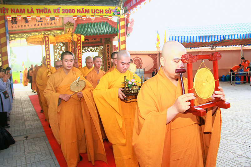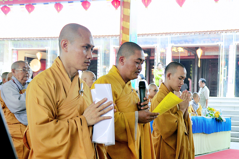 Mở đầu cho buổi lễ, Đại đức Thích Lệ Ngôn – Trưởng Ban Hoằng Pháp GHPGVN Tỉnh Long An, điều phối chương trình buổi lễ, trong sự trang nghiêm và thanh tịnh.