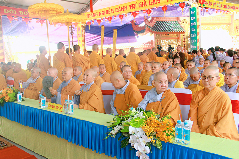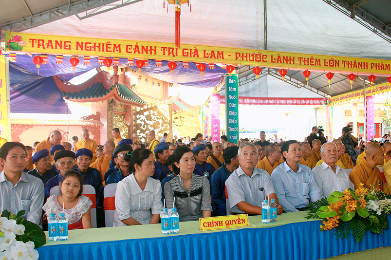 Quang lâm chứng minh cho buổi lễ có sự hoan hỷ quang lâm của Hòa thượng Thích Huệ Hồng – CM BTS GHPGVN Tỉnh Long An, Hòa thượng Thích Minh Thiện – UV HĐTSTW – GHPGVN, Phó Ban Hoằng Pháp TW GHPGVN – Trưởng BTS GHPGVN Tỉnh Long An, Đại đức Thích Lệ Trí – UV HĐTSTW – GHPGVN, Phó BTS GHPGVN Tỉnh Long An, Hòa thượng Thích Giác Hạnh – CM BTS GHPGVN Tỉnh Bà Rịa – Vũng Tàu, Hòa thượng Thích Trí Châu – CM BTS GHPGVN Tỉnh Bà Rịa – Vũng Tàu, Hòa thượng Thích Nhựt Huệ – CM BTS GHPGVN Tỉnh Bà Rịa – Vũng Tàu, Hòa thượng Thích Quảng Hiển – UV HĐTSTW – GHPGVN -Trưởng BTS GHPGVN Tỉnh Bà Rịa – Vũng Tàu, Hòa thượng Thích Như Thị – UV HĐTSTW – GHPGVN – Phó thường trực BTS GHPGVN Tỉnh Bà Rịa – Vũng Tàu. Hòa thượng Thích Thiện Ngọc – CM BTS GHPGVN Huyện Cần Đước, Hòa thượng Thích Bửu Ứng – UV BTS GHPGVN Tỉnh Long An – Trưởng BTS GHPGVN Huyện Cần Đước, Hòa thượng Thích Tâm Nguyên – Trưởng Ban pháp chế BTS GHPGVN Huyện Cần Đước, Đại đức Thích Trí Minh – UV BTS GHPGVN Tỉnh Long An – Phó thường trực BTS GHPGVN Huyện Cần Đước, Đại đức Thích Tâm Hướng – UV BTS GHPGVN Tỉnh Long An – Chánh Thư kí BTS GHPGVN Huyện Cần Đước. Cùng Qúy Ni trưởng, Ni sư, trực thuộc BTS GHPGVN tỉnh Bà Rịa – Vũng Tàu, Tỉnh Long An và Huyện Cần Đước. Chư Tôn đức Tăng Ni trụ trì các Tự viện trong Tỉnh Bà Rịa – Vũng Tàu, Tỉnh Long An và Huyện Cần Đước. Cùng Chính quyền địa phương xã Mỹ Lệ, Huyện Cần Đước, Tỉnh Long An, đồng quang lâm, chứng minh và tham dự buổi lễ, cùng hơn 1000 Phật tử trở về câu hội.