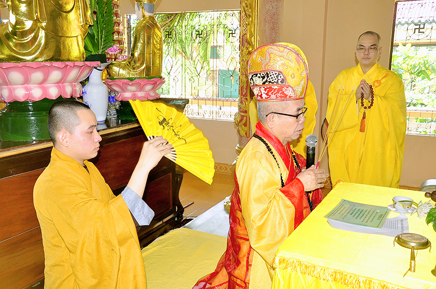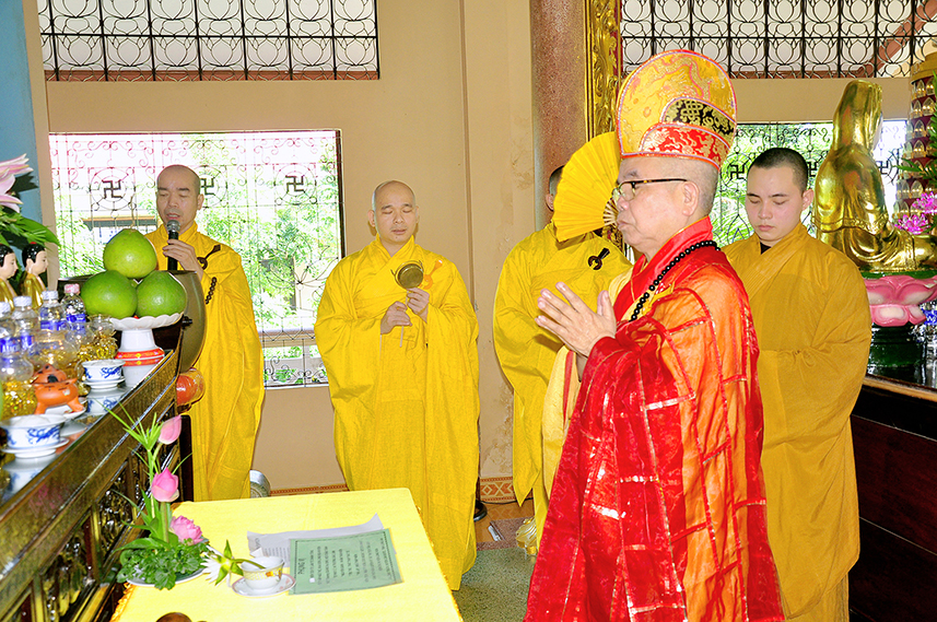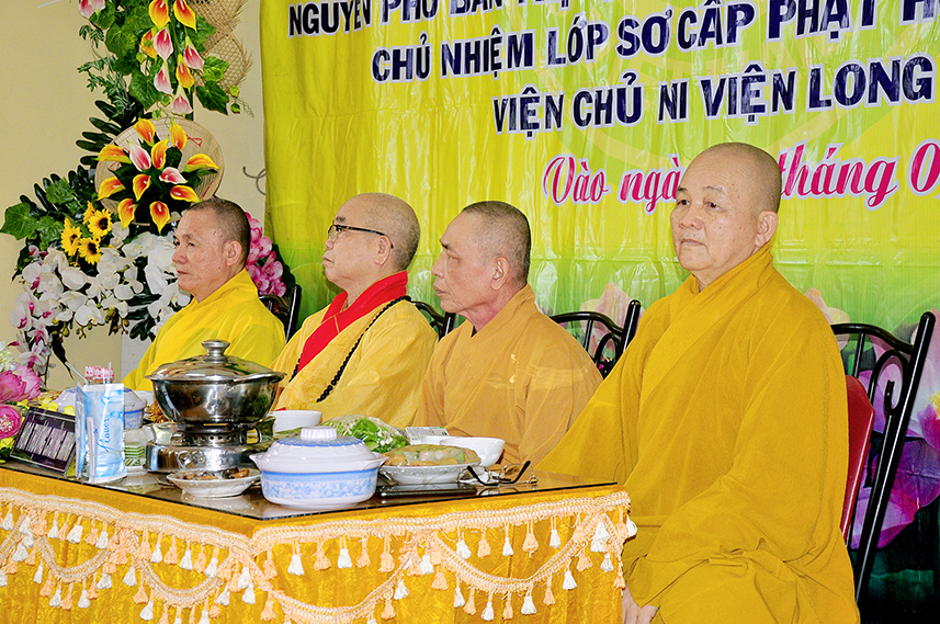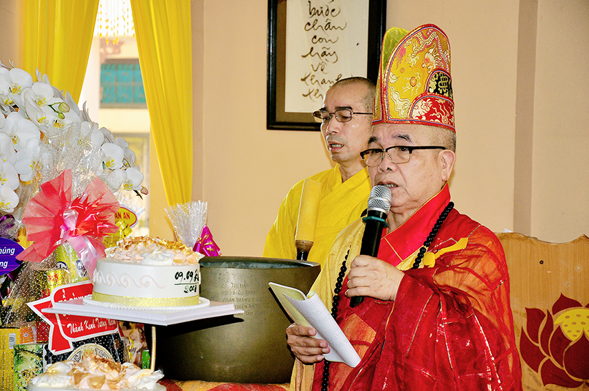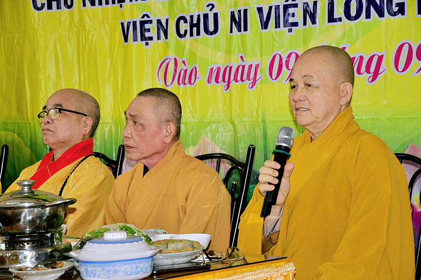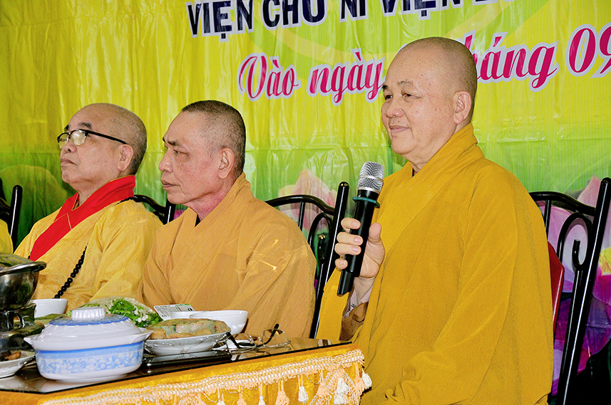 Chứng minh buổi lễ, Hòa thượng Thích Minh Thiện – Ủy viên HĐTS, Phó Trưởng Ban Hoằng pháp TW, Trưởng Ban Trị Sự GHPGVN tỉnh Long An trân trọng ban đạo từ. Hòa thượng kính ghi công hạnh của Cố Ni Trưởng, một bậc Ni lưu giới đức kiêm ưu, luôn nhiệt tâm phụng sự Đạo pháp – Dân tộc.