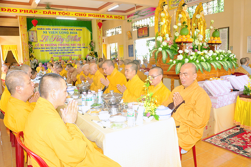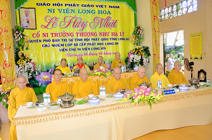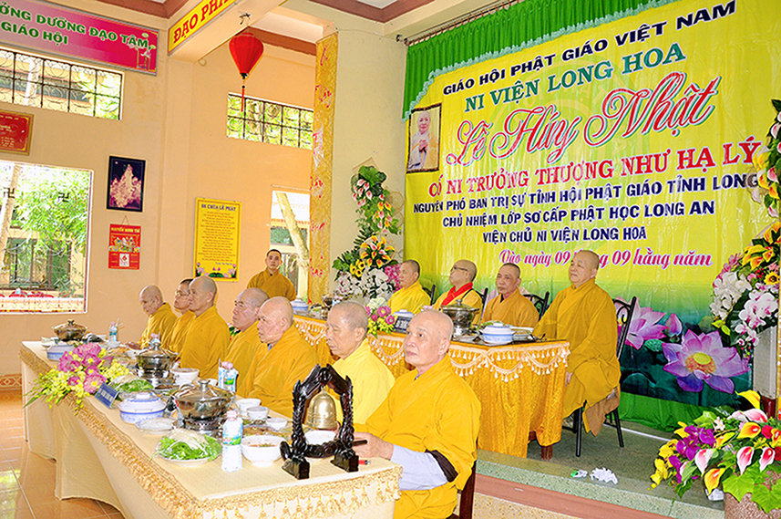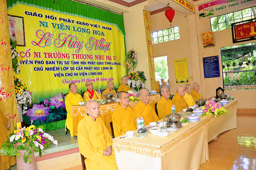 Sáng ngày 7/10/2019 (nhằm ngày mồng 9/9/2019), môn nhân pháp quyến đạo tràng Ni viện Long Hoa tại xã Long Trạch, huyện Cần Đước trang trọng tổ chức Lễ Húy nhựt lần thứ 11 của Ni Trưởng Thích  Nữ Như Lý – Nguyên Chủ nhiệm Lớp Sơ Cấp Phật học Long Hoa, Trụ Trì Ni Viện.