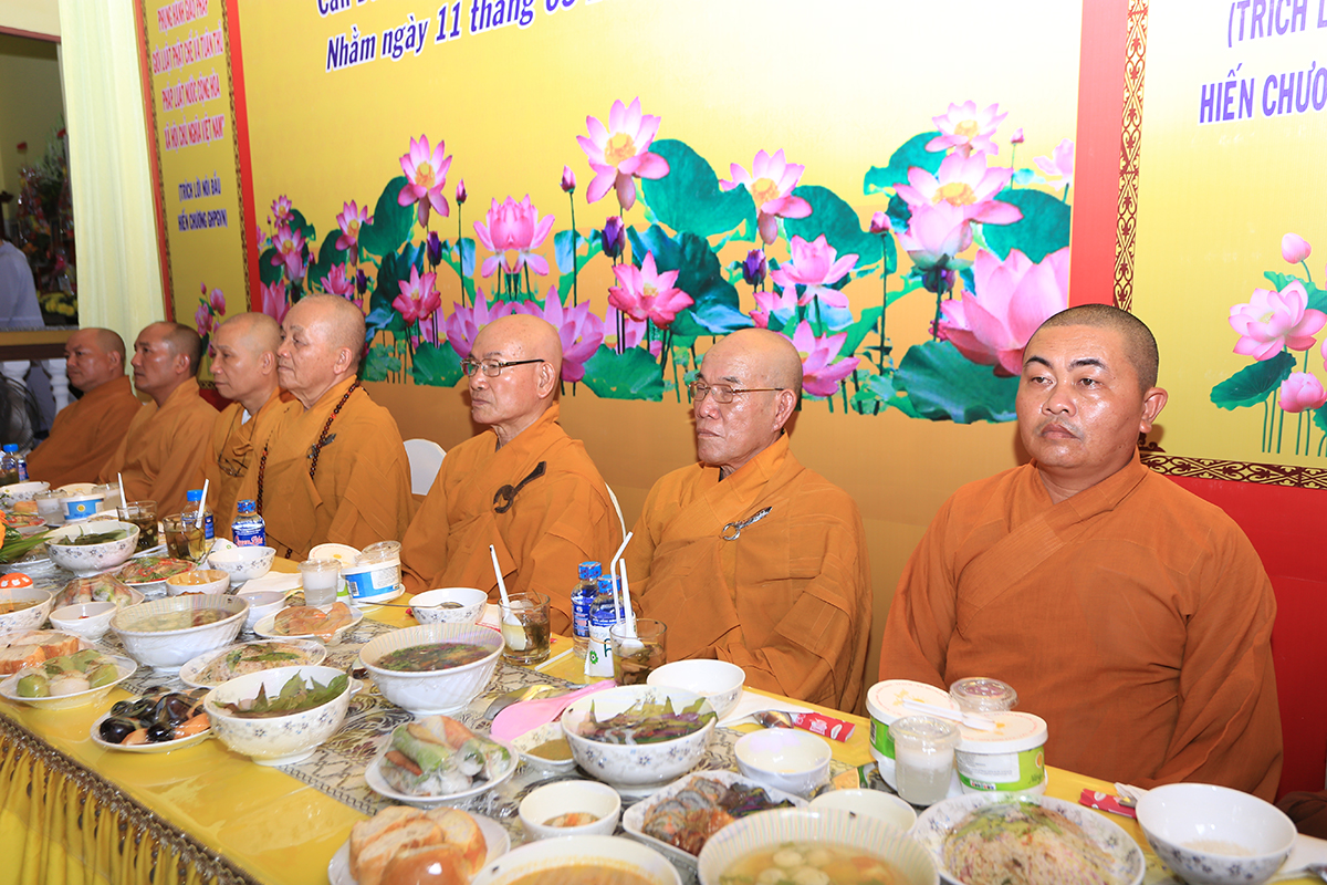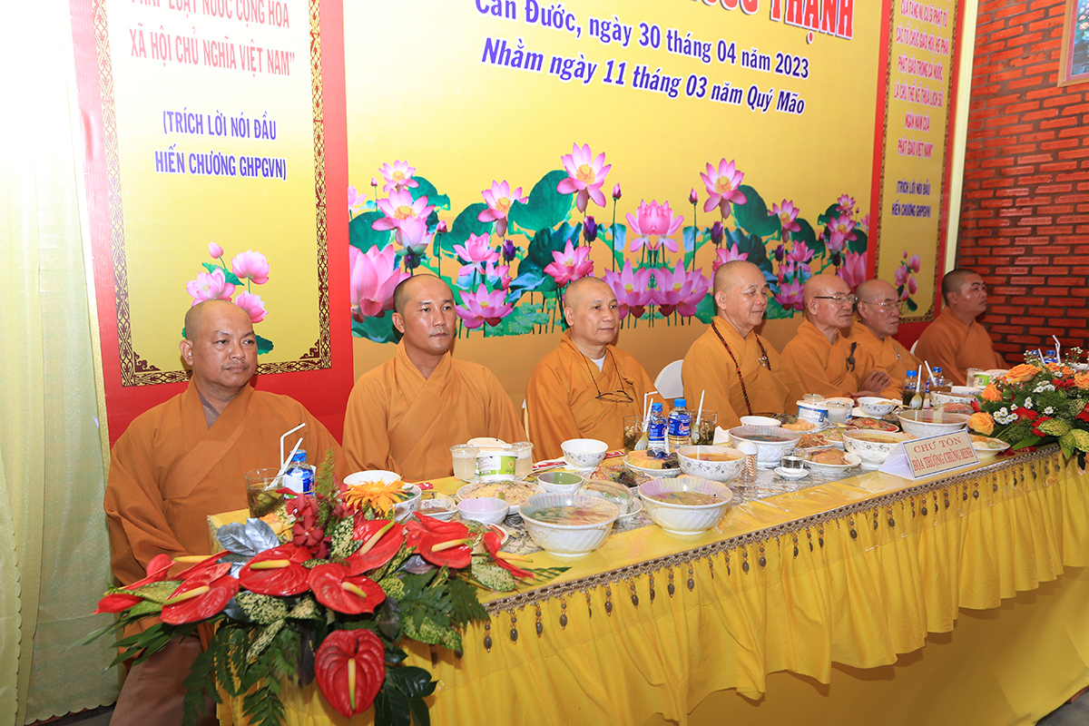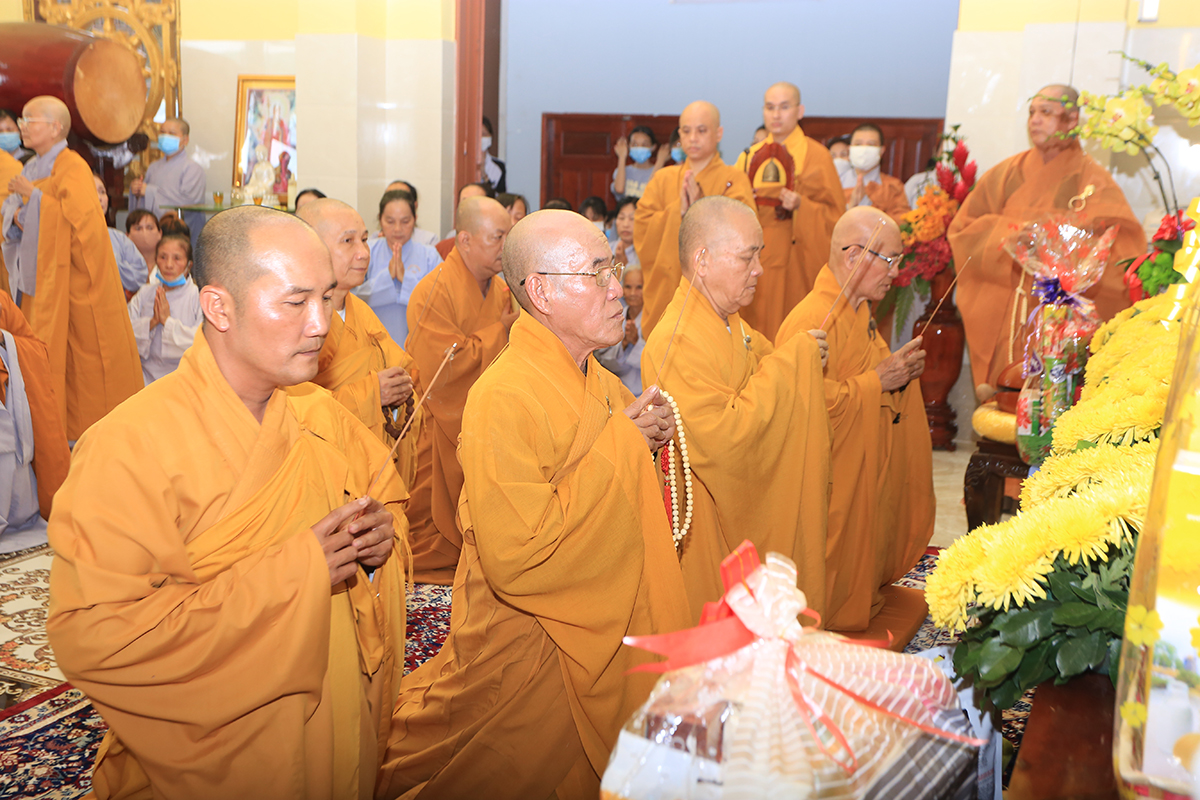 Quang lâm chứng minh và tham dự buổi lễ hôm nay, đạo tràng được cung thỉnh Hòa thượng Thích Minh Thiện – UV HĐTS, Phó Trưởng Ban Hoằng pháp TƯ, Trưởng BTS GHPGVN tỉnh Long An cùng chư tôn Hòa thượng chứng minh, Thượng tọa Thích Đức Hoàng – Phó Trưởng BTS GHPGVN tỉnh Long An, Đại đức Thích Trí Minh – UV Thường trực BTS GHPGVN tỉnh Long An, Trưởng BTS GHPGVN huyện Cần Đước, Thượng tọa Thích Tâm Hướng – UV BTS GHPGVN tỉnh Long An, Phó Trưởng Ban Thường trực BTS GHPGVN huyện Cần Đước, Đại đức Thích Quảng Giác, Sư Cô Thích Nữ Huệ Hưng – đồng Phó BTS GHPGVN huyện Cần Đước, Đại đức Thích Nguyên Tịnh – UV BTS GHPGVN tỉnh Long An, Chánh Thư ký BTS GHPGVN huyện Cần Đước, cùng quý Ni Trưởng, Ni sư, Chư tôn đức Tăng, Ni, Trụ trì, trú xứ các tự viện trong huyện Cần Đước và các huyện, thị, thành phố lân cận đồng quang lâm tham dự, với hơn 100 Phật tử tham dự.
