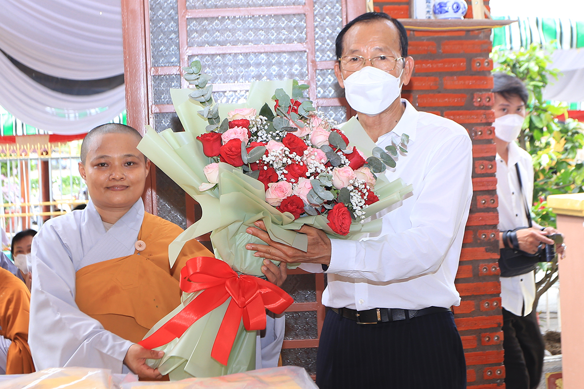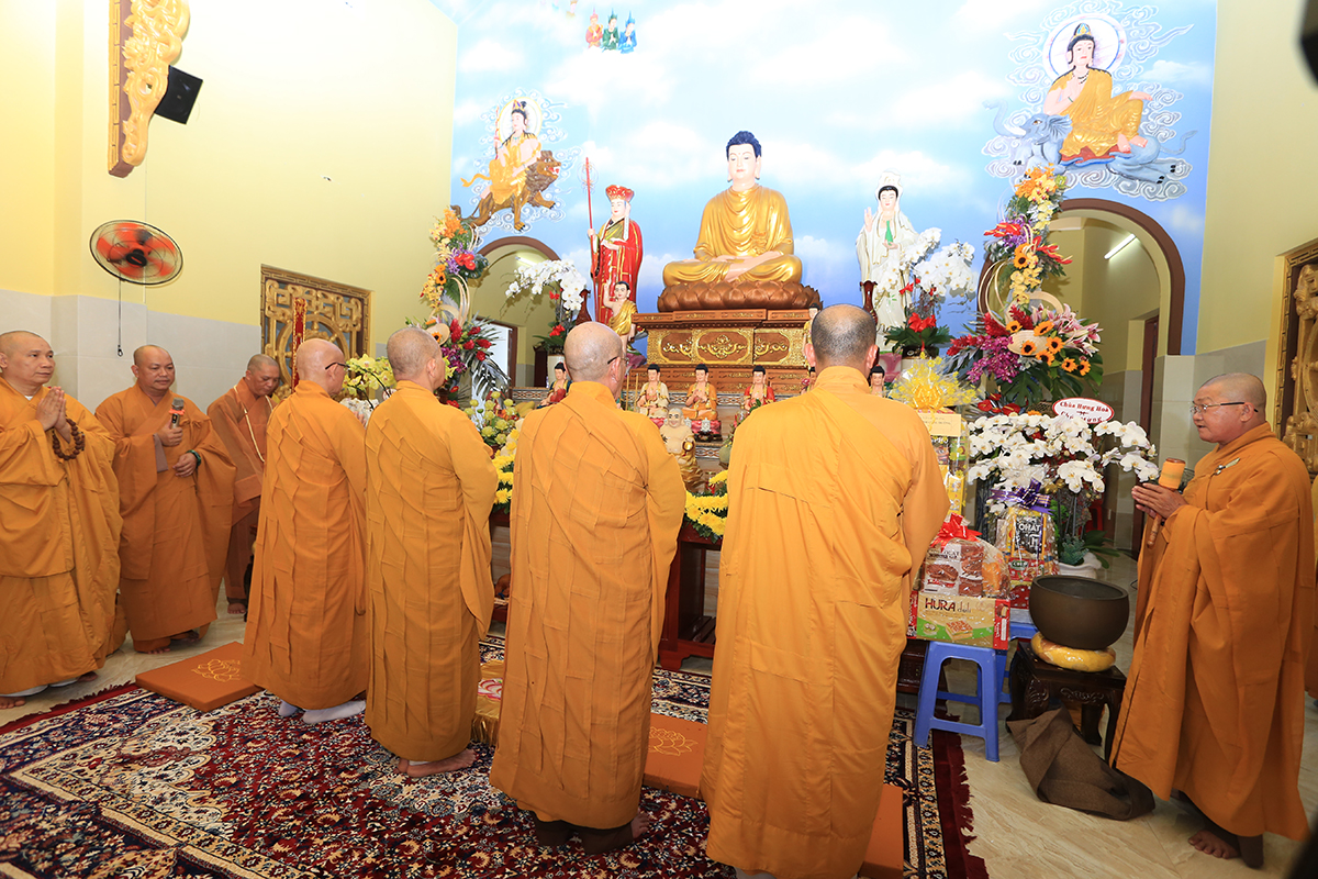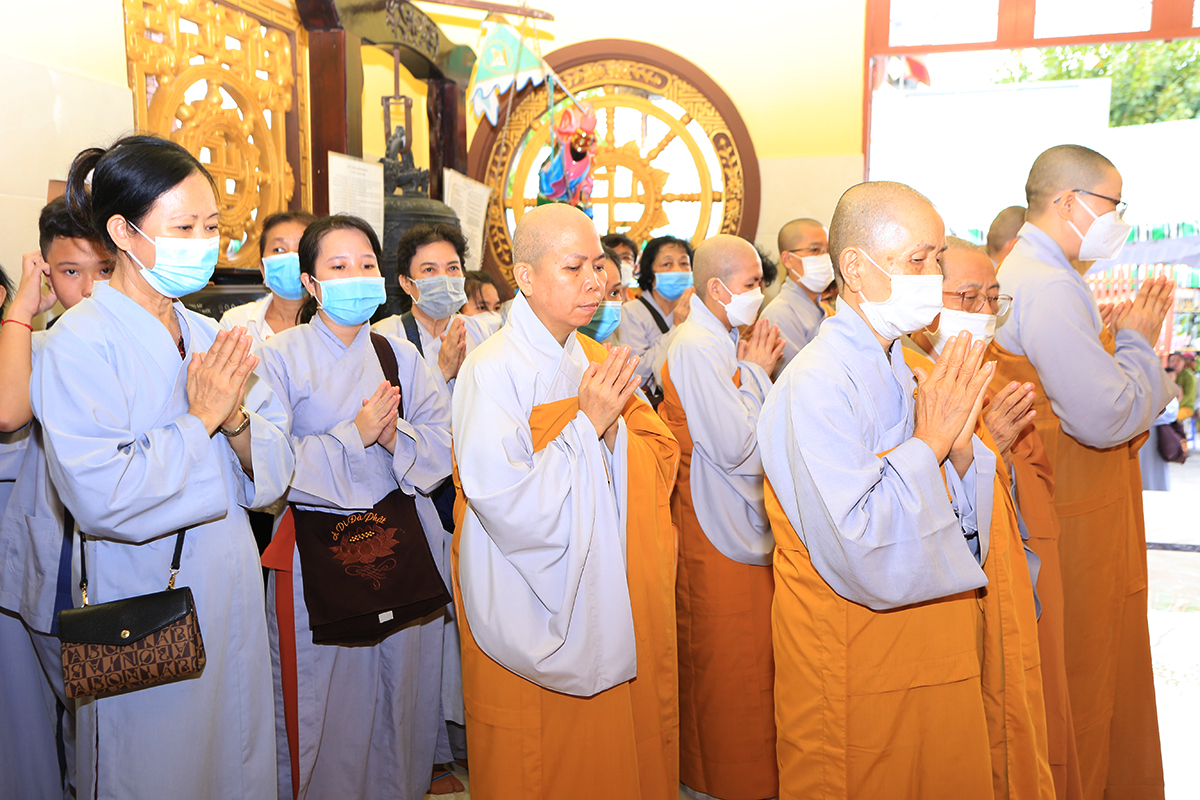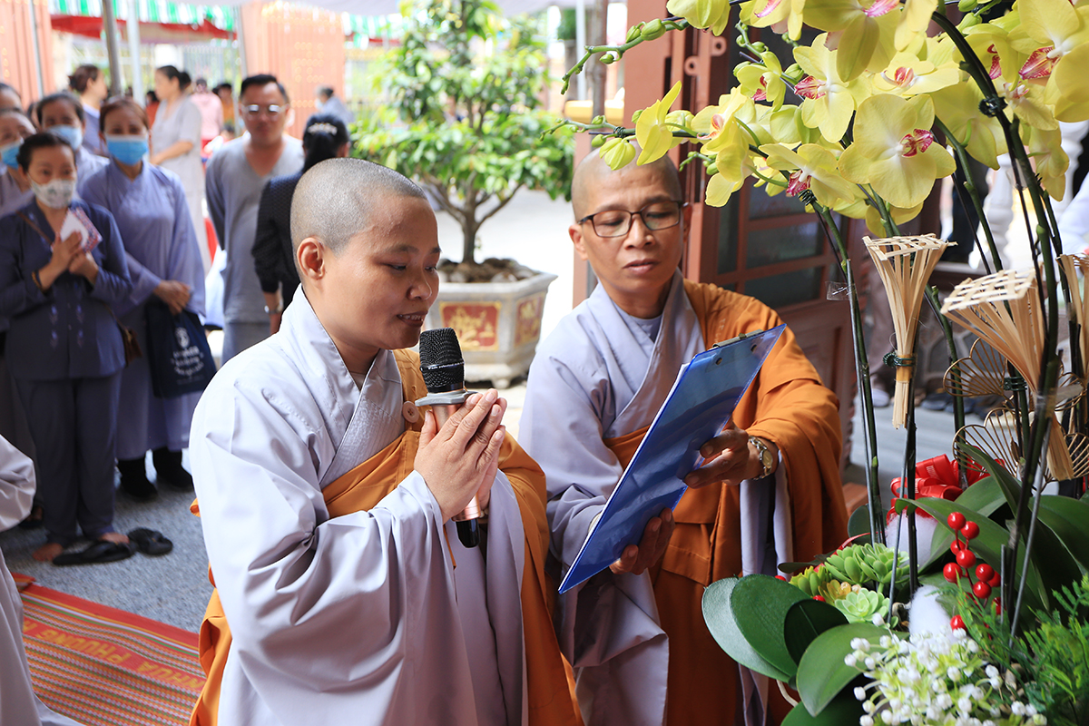 Quang lâm chứng minh và tham dự buổi lễ hôm nay, đạo tràng được cung thỉnh Hòa thượng Thích Minh Thiện – UV HĐTS, Phó Trưởng Ban Hoằng pháp TƯ, Trưởng BTS GHPGVN tỉnh Long An cùng chư tôn Hòa thượng chứng minh, Thượng tọa Thích Đức Hoàng – Phó Trưởng BTS GHPGVN tỉnh Long An, Đại đức Thích Trí Minh – UV Thường trực BTS GHPGVN tỉnh Long An, Trưởng BTS GHPGVN huyện Cần Đước, Thượng tọa Thích Tâm Hướng – UV BTS GHPGVN tỉnh Long An, Phó Trưởng Ban Thường trực BTS GHPGVN huyện Cần Đước, Đại đức Thích Quảng Giác, Sư Cô Thích Nữ Huệ Hưng – đồng Phó BTS GHPGVN huyện Cần Đước, Đại đức Thích Nguyên Tịnh – UV BTS GHPGVN tỉnh Long An, Chánh Thư ký BTS GHPGVN huyện Cần Đước, cùng quý Ni Trưởng, Ni sư, Chư tôn đức Tăng, Ni, Trụ trì, trú xứ các tự viện trong huyện Cần Đước và các huyện, thị, thành phố lân cận đồng quang lâm tham dự, với hơn 100 Phật tử tham dự.