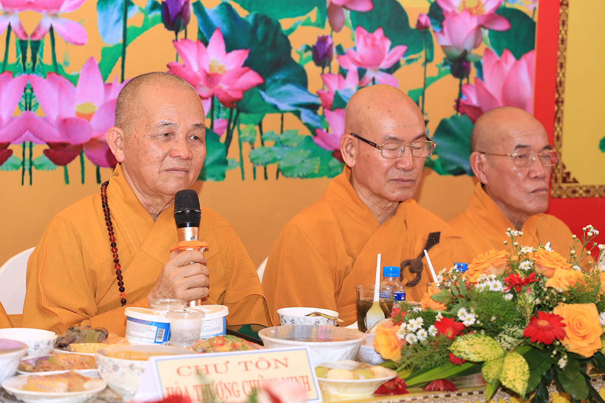 Trong không khí trang nghiêm và thanh tịnh, toàn thể hội chúng được lĩnh hội lời đạo từ cao quý của Hòa thượng Thích Minh Thiện – UV HĐTS, Phó Trưởng Ban Hoằng pháp TƯ, Trưởng BTS GHPGVN tỉnh Long An, trong lời đạo từ Ngài đã ôn lại kỷ niệm hào hùng vàng son của Phật giáo qua các thời đại lịch sử Phong kiến, Ngài nhấn mạnh tầm quan trọng của Tăng Ni trong thời buổi hiện tại phải tinh cần tu tập, giữ gìn chánh pháp góp phần làm đạo pháp xương minh và bất diệt, Ngài cũng đã sách tấn quý nam nữ Phật tử nên cố gắng tu cầu học đạo, noi gương gia đình Phật tử Thiện Tâm trong quá trình tu nhân học Phật, tán thán công đức của gia đình Phật tử trong quá trình phát tâm và xây dựng Tam bảo, giữ gìn ngôi nhà Phật pháp ngày thêm phát triển.