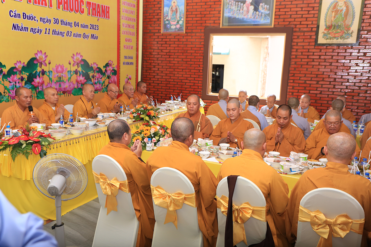 Buổi lễ được hoan hỷ với lời phát biểu cảm tưởng của gia đình Phật tử Thiện Tâm – Quảng Hằng, những Phật tử đã phát tâm đóng góp trong việc trùng tu đạo tràng Phước Thạnh, bên cạnh đó lời tác bạch cúng dường trai tăng của Sư cô Thích Nữ Như Hiếu – Trụ trì Tịnh thất Phước Thạnh đã nêu cao tâm thành phụng sự Tam Bảo, Phụng sự chúng sinh, thừa hành Phật sự, buổi lễ cũng là dịp để đạo tràng Tịnh thất Phước Thạnh báo đáp thâm ân của cố Sa di Ni Thích Nữ Diệu Huệ – Thân mẫu của Sư cô Trụ trì, đồng thời cầu nguyện kỳ siêu cho toàn thể chư vị hương linh nơi đạo tràng được siêu sinh Tịnh cảnh.