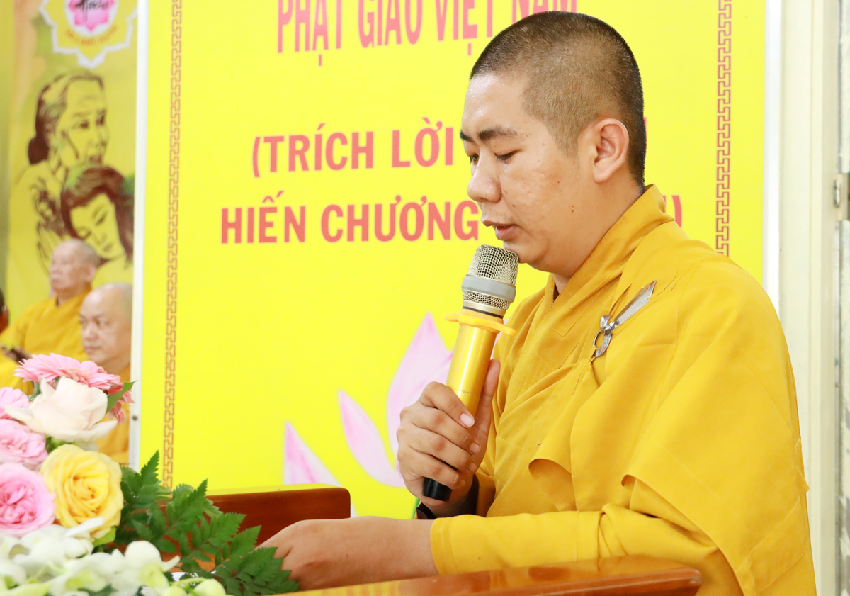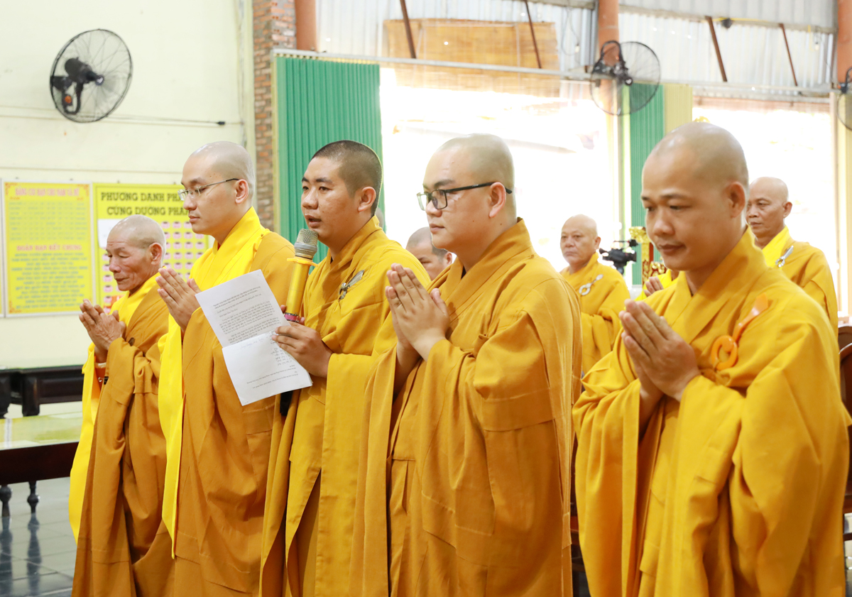 Đại đức Thích Nguyên Thọ – Phó Chánh Thư ký BTS GHPGVN huyện Cần Đước – Phó Chúng Hạ trường đã đại diện cho chư hành giả An cư tại trú xứ tác bạch kính mừng Khánh tuế Chư Tôn Hòa thượng, Chư Thượng tọa, chư Đại đức, sau ba tháng an cư, đồng thời sám hối những lỗi lầm sai sót trước chư tôn đức trong những tháng ngày tu tập và hành sự tại Hạ trường.