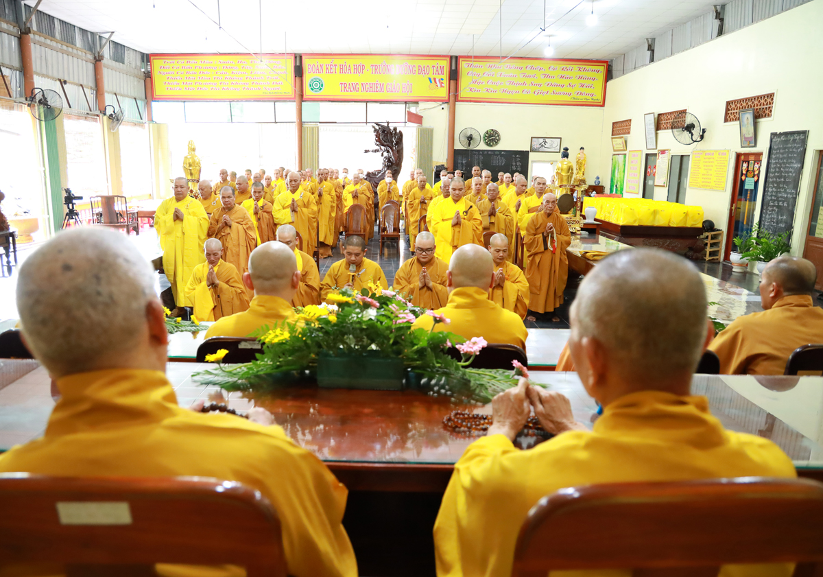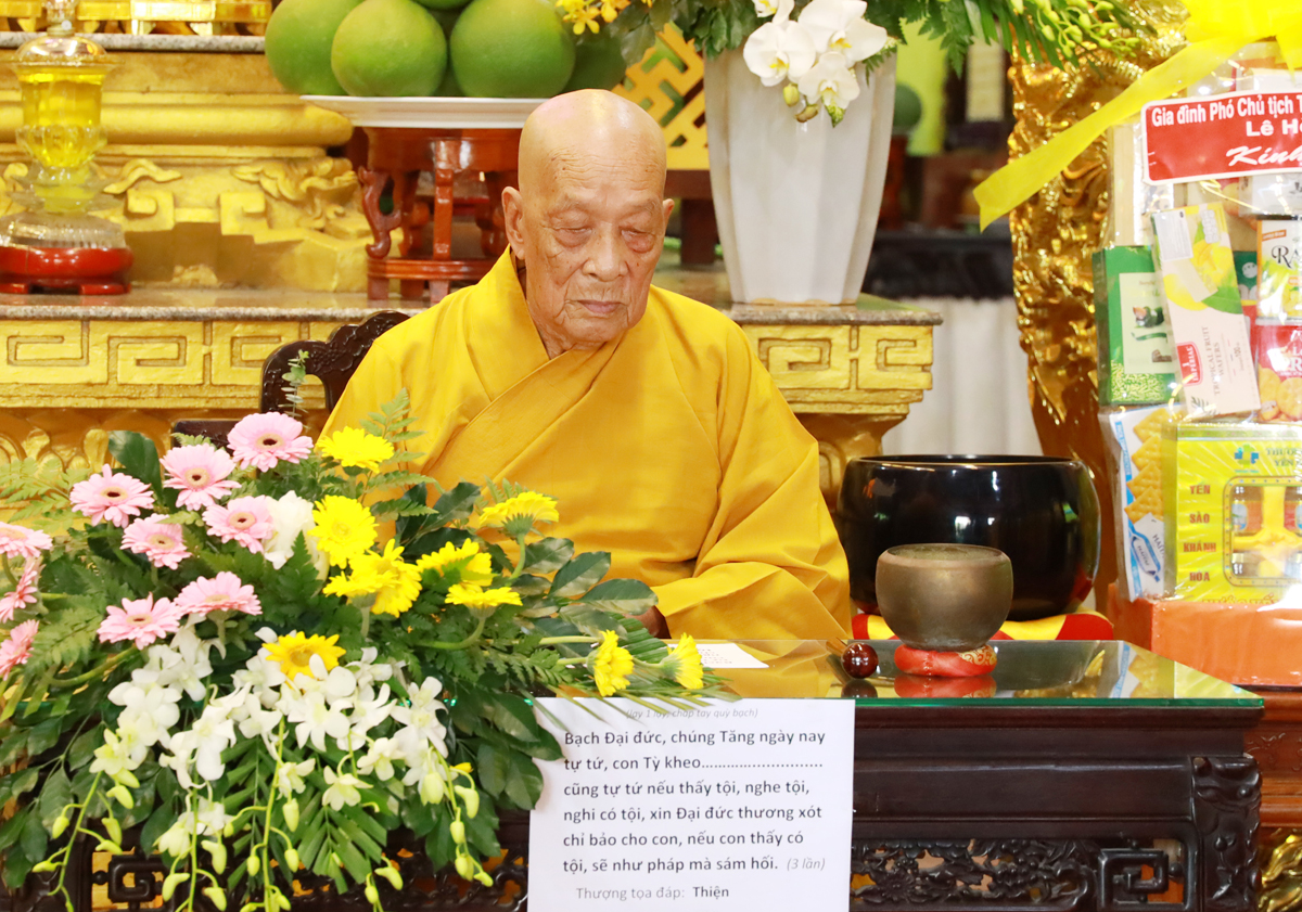 Trong niềm hoan hỷ vô biên, Hòa thượng Thích Minh Thiện – UV HĐTS – Trưởng BTS GHPGVN tỉnh Long An đã vì lòng thương tưởng hàng hậu học mà cung thỉnh Hòa thượng Thích Thiện Huệ – Chứng Minh BTS GHPGVN tỉnh Long An ban lời đạo từ sách tấn chư hành giả trước khi Tự tứ, trong lời Đạo từ Hòa thượng đã từ bi công nhận tuổi hạ đến toàn thể hội chúng, đồng thời nhấn mạnh tầm quan trọng của người tu trong thời điểm hiện tại, sự kế thừa chư vị Tổ sư truyền dạy, luôn giữ nếp sống lục hòa cộng trụ, huân tu giới đức, nhớ ơn Thầy tổ, luôn luôn thực hiện tốt giới luật Phật chế và pháp luật nhà nước, đặc biệt là siêng năng tinh tấn hằng năm trở về các trú xứ an cư để tu tập, tiến tu con đường giải thoát đến viên mãn.
