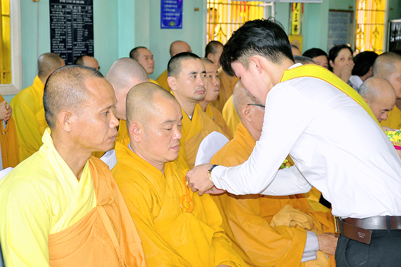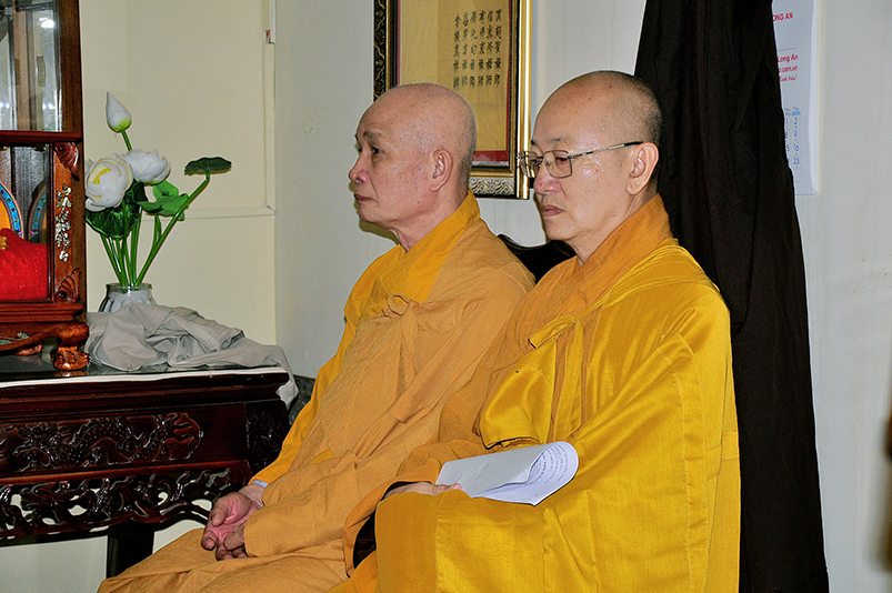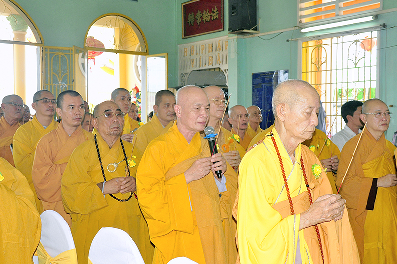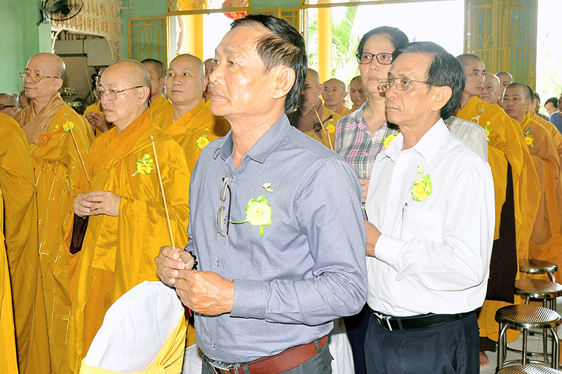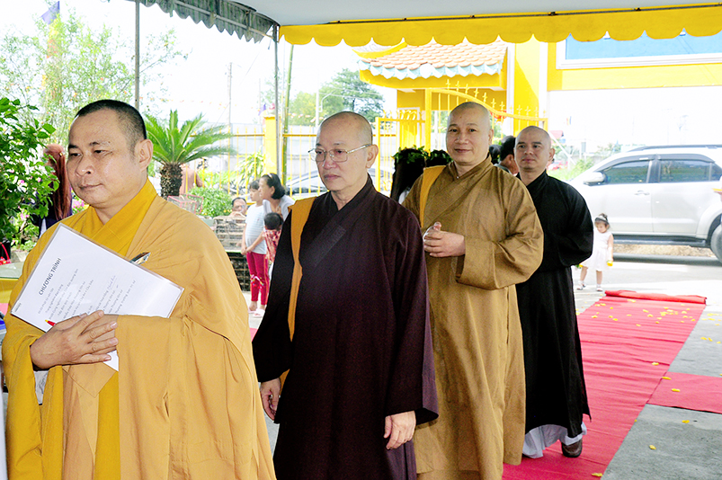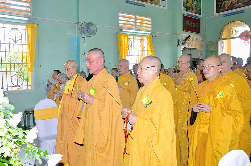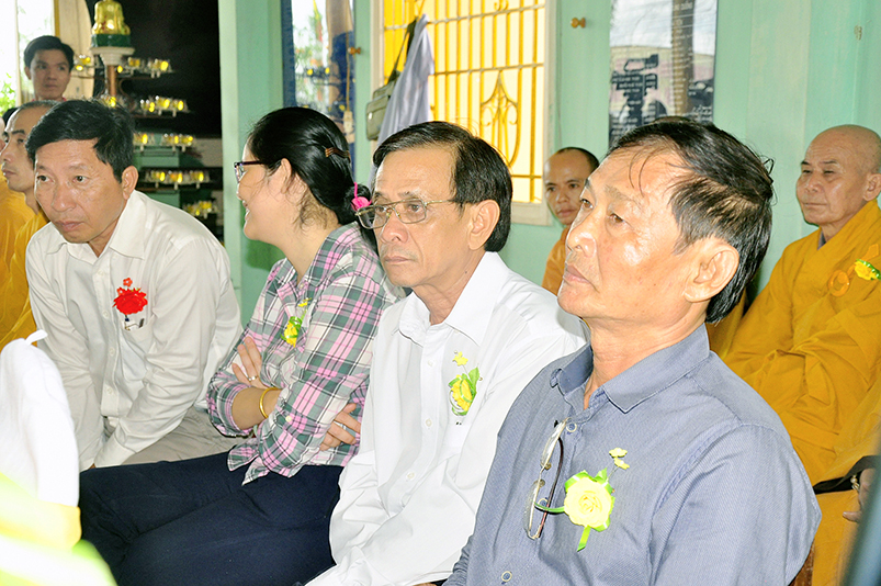Buổi lễ với sự chứng minh tham dự của Hòa thượng Thích Thiện Huệ – Chứng minh BTS GHPGVN tỉnh Long An; Hòa thượng Thích Đạt Duyên –Chứng minh GHPGVN huyện Cần Giuộc; Thượng Tọa Thích Quảng Tâm – Phó ban Thường trực Ban Trị sự GHPGVN tỉnh Long An; ĐĐ. Thích Đức Hoàng – Phó ban trị sự GHPGVN tỉnh Long An; Đại Đức Thích Lệ Duyên – Chánh Thư ký Ban Trị Sự GHPGVN tỉnh Long An, Trưởng Ban Phật Giáo Quốc Tế; Hòa thượng Thích Huệ Bạch – Trưởng Ban Trị sự GHPGVN huyện Cần Giuộc;HT. Thích Tắc Nhàn – Phó Trưởng Ban Trị sự GHPGVN huyện Cần Giuộc; Hòa Thượng Thích Chơn Đạo – Giáo thọ trường Trung Cấp Phật học tỉnh Long An; TT. Thích Tắc Quảng chứng minh BTS. GHPGVN huyện Thủ Thừa; Đại đức Thích An Trung – Trưởng Ban Trị sự GHPGVN huyện Bến Lức; Ni trưởng Thích Tuệ Đăng – Trưởng Ban Ni giới GHPGVN tỉnh Long An… cùng Chư Tôn đức Tăng Ni thường trực các Ban Trị sự huyện thị, chư Tôn đức Tăng Ni trụ trì các tự viện thân lâm chứng minh buổi lễ.