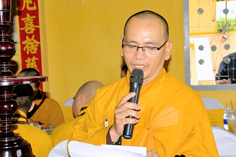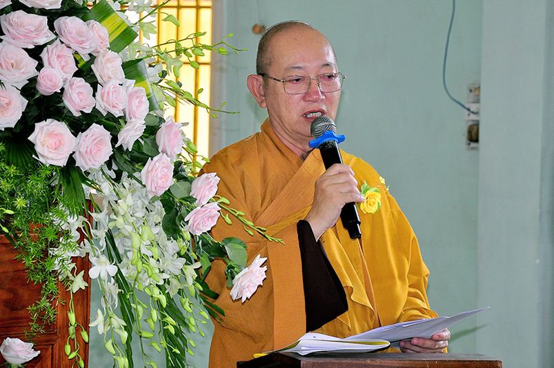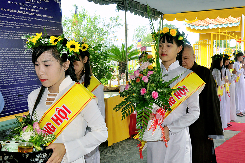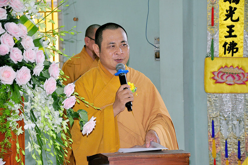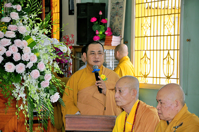 Để nhớ đến ân đức của bậc Thầy đức độ tôn kính, TT. Thích Quảng Tâm đại diện Ban Trị Sự GHPG Tỉnh Long An tuyên đọc tiểu sử Hòa thượng, một vị đã có công đức rất lớn trong việc kế thừa và phát huy đối với Ban Trị sự Phật giáo tỉnh Long An.