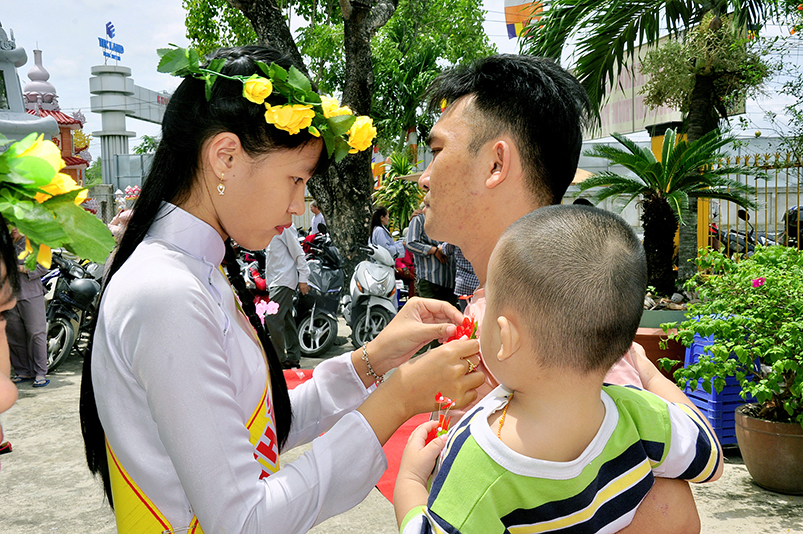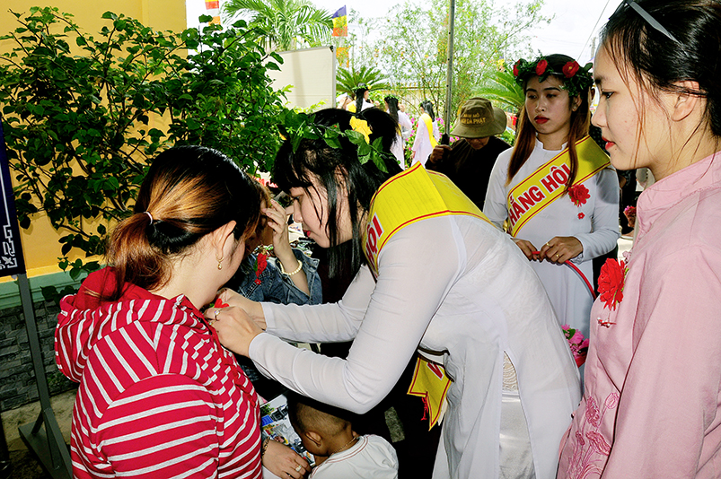 Tiếp theo, tiết mục cài hoa Hồng và tưởng nhớ đến ân đức sanh thành của những người con. Đại diện đạo tràng chùa Bồ Đề dâng lời cảm niệm: “Vu lan Báo hiếu mẹ cha, dường như đã in sâu trong tiềm thức của mỗi người con Phật, để bày tỏ lòng tôn kính, tri ân và biết ân đến các bậc hướng Đạo Sư, những vị Thầy đã hướng dẫn Phật tử chuyển mê khai ngộ, và công lao sanh thành dưỡng dục của cha và mẹ một đời đã không quản ngại vất vả khó khăn nuôi con khôn lớn trưởng thành. Từng cánh hoa hồng lần lượt được các em Phật tử cài lên ngực áo Chư Tôn đức và toàn thể hội chúng.