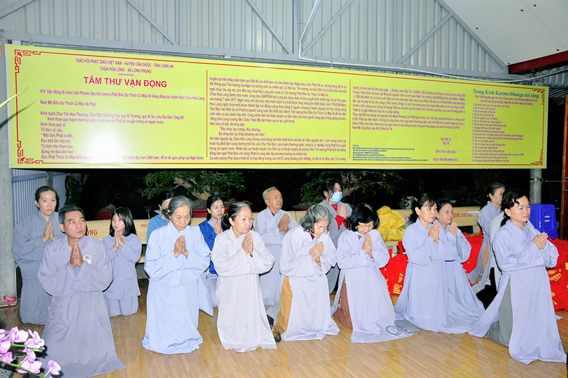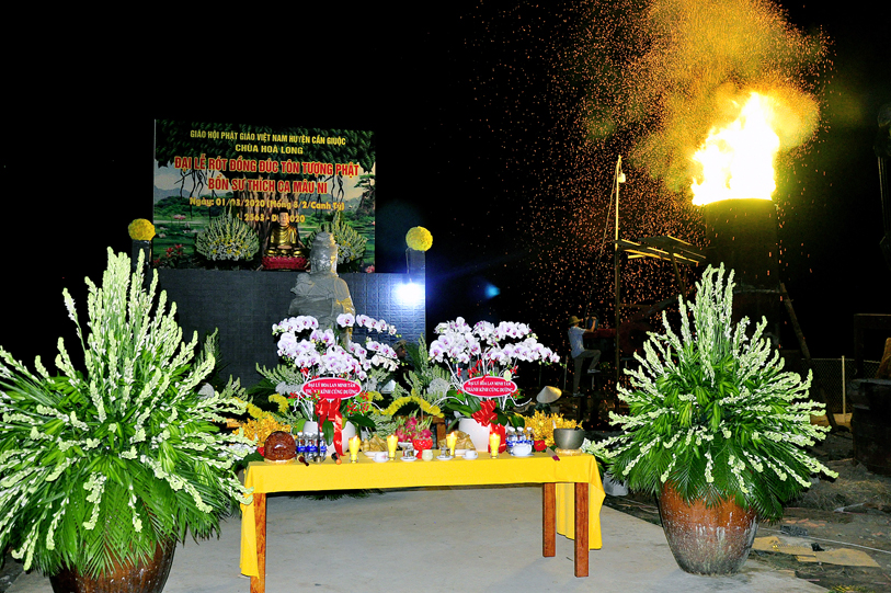 Sáng ngày 01/3/2020 (nhằm ngày 08/02/Canh tý), tại chùa Hoà Long,xã Long Phụng, huyện Cần Giuộc, tỉnh Long An đã trang nghiêm tổ chức lễ chú nguyện rót đồng tôn tạo Báo thân Đức Phật Bổn Sư Thích Ca Mâu Ni.