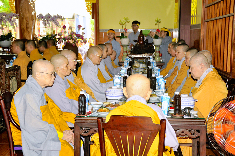 Đến 9g 45, nghi thức Tiến Sư kết thúc, Ban nghi lễ vân tập trai đường, cung thỉnh chư Tôn đức quang lâm, chứng minh Lễ cúng dường.