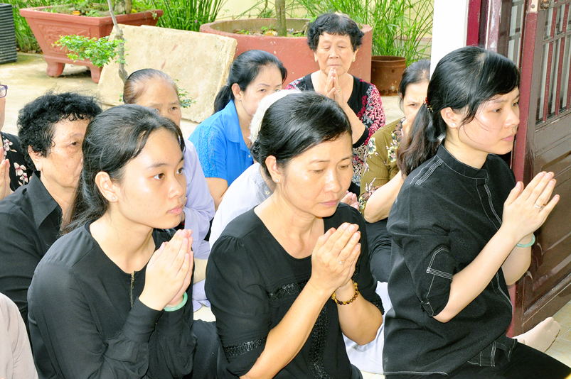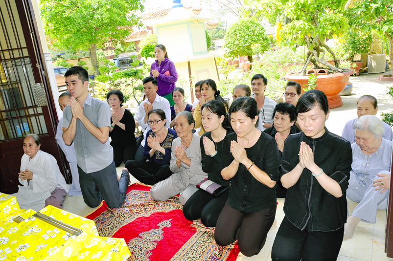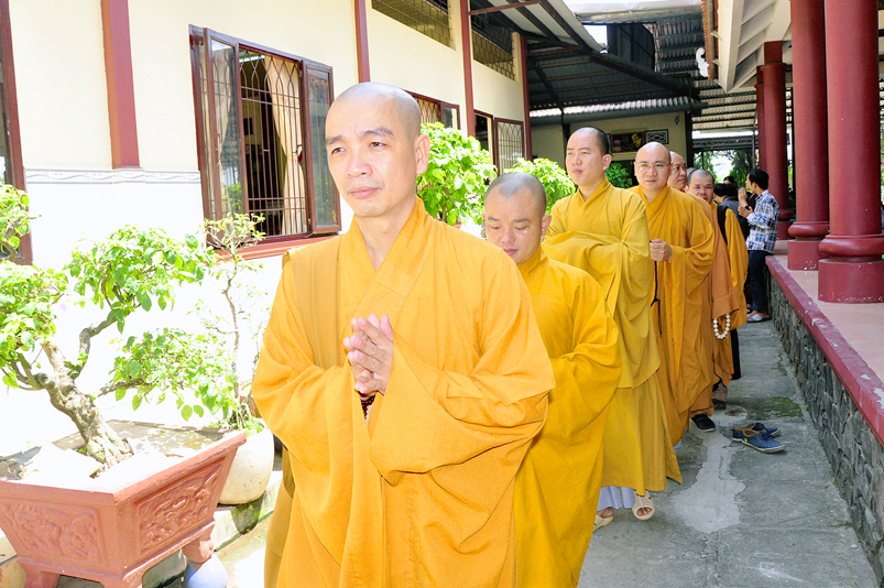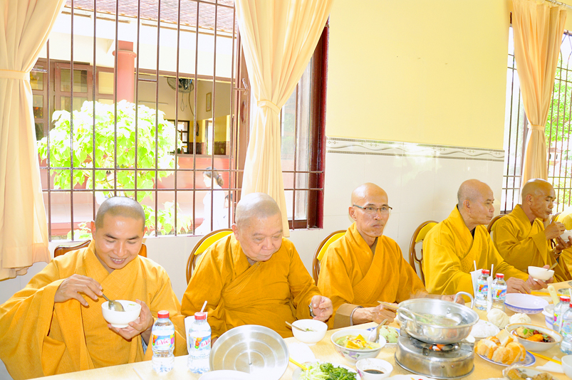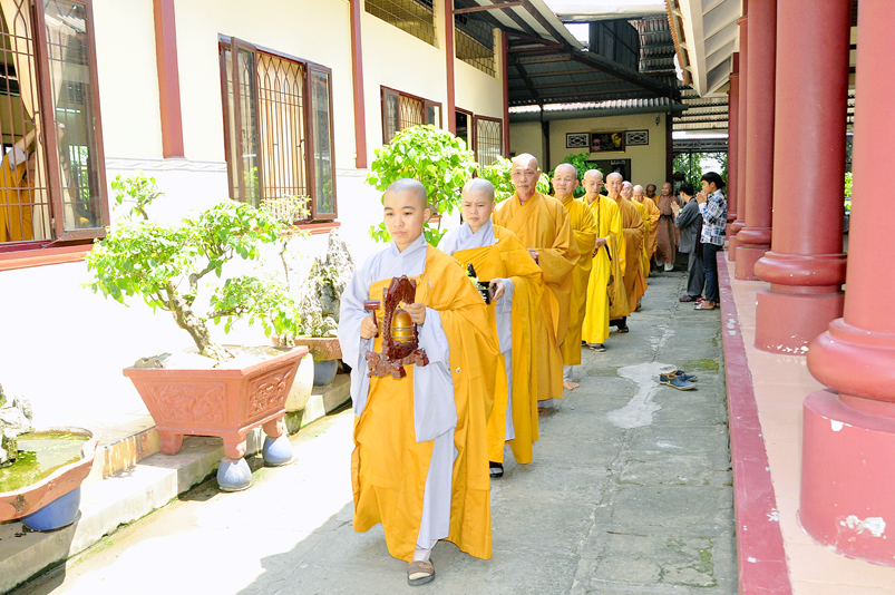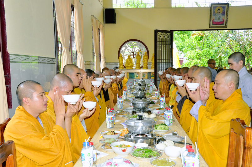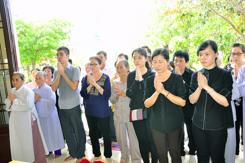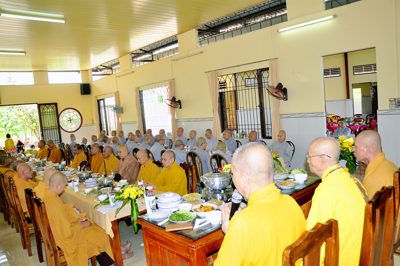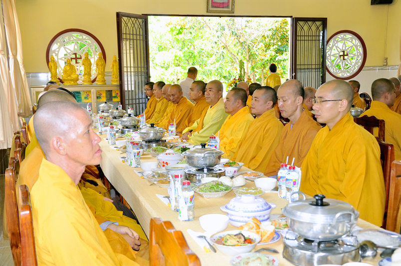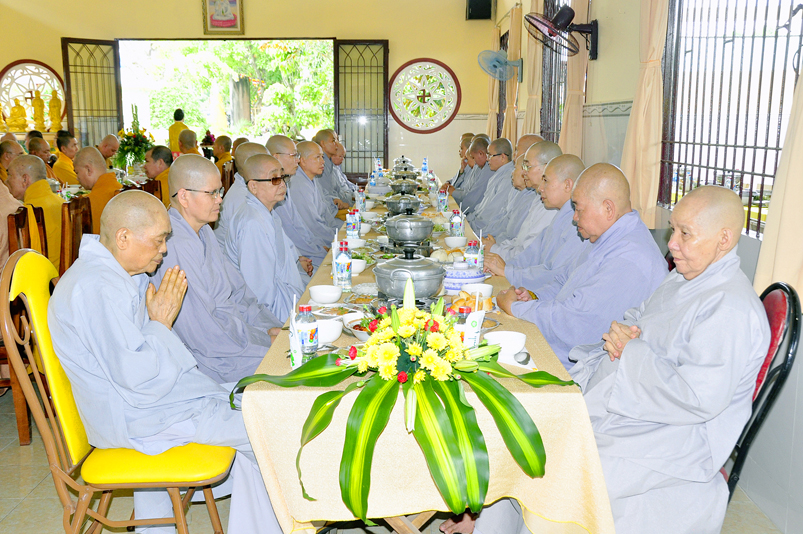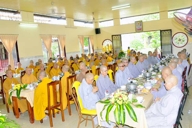 Trước lễ đường, chư tôn giáo phẩm chứng minh và quý nam nữ Phật tử đã thiết lễ cúng Ngọ, thành kính niêm hương tưởng niệm công đức của cố Đại Đức Thích Huệ Thành. Sau đó, Đại đức Thích Minh An- Phó trụ trì chùa tác pháp cúng dường Trai Tăng.