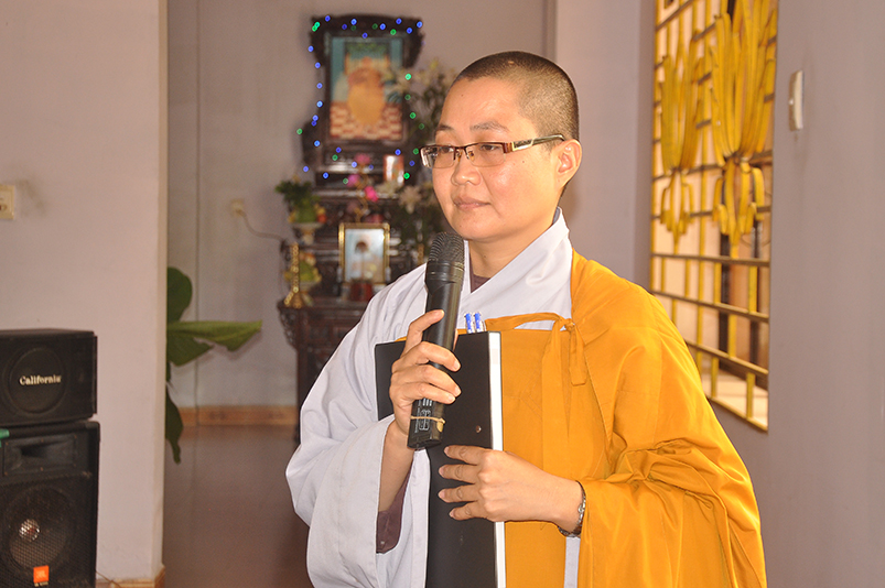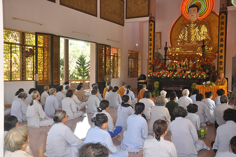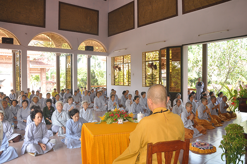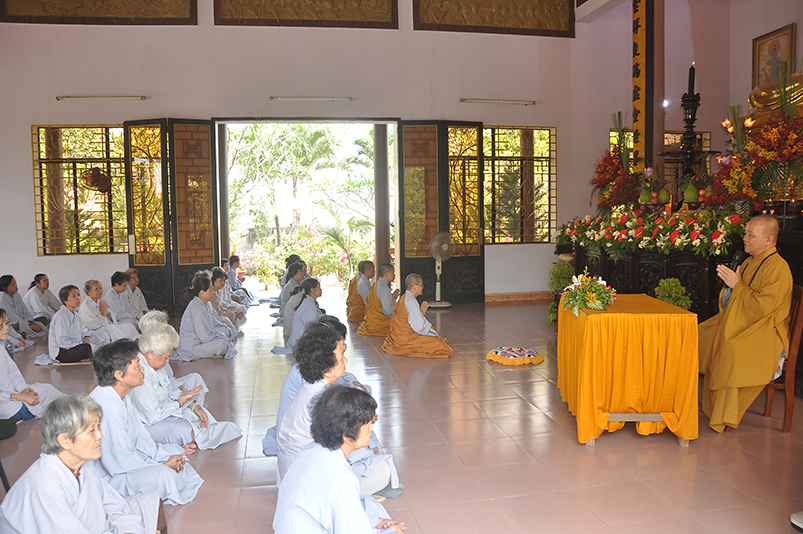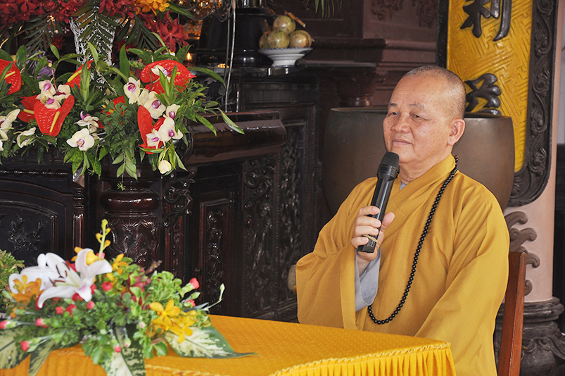 Lời đầu tiên Hòa Thượng thăm hỏi sức khỏe và chúc an lành đến ni chúng và đạo tràng tu tập Bát Quan Trai chùa Tôn Vân. Kế đến Hòa Thượng thuyết giảng với đề tài “ Thông Tin Phật Sự”. Thông tin Phật sự, mới nghe qua tưởng như một bài báo cáo khô khan trong một phiên họp. Ấy vậy mà, bằng kỷ năng thông tuệ, uyên thâm Phật Pháp, Hòa Thượng đã biến nó thành một đề tài vô cùng sinh động, hướng dẫn Phật tử tu tập và hành trì theo đúng chánh pháp của đức Như Lai.