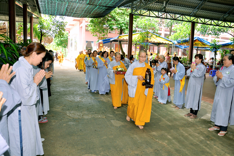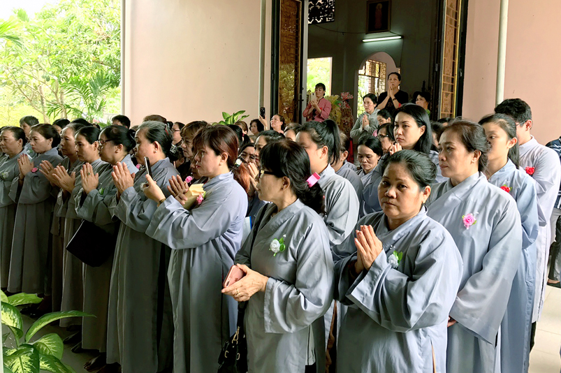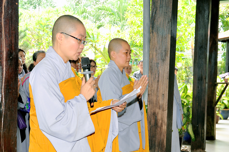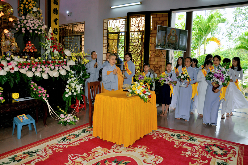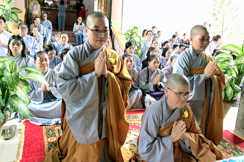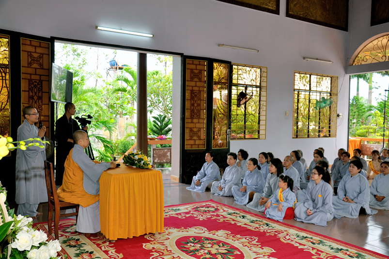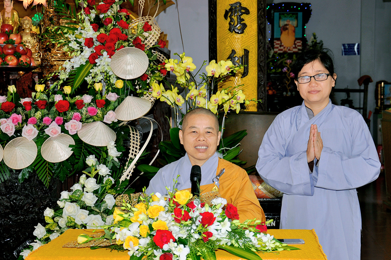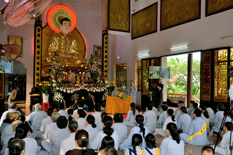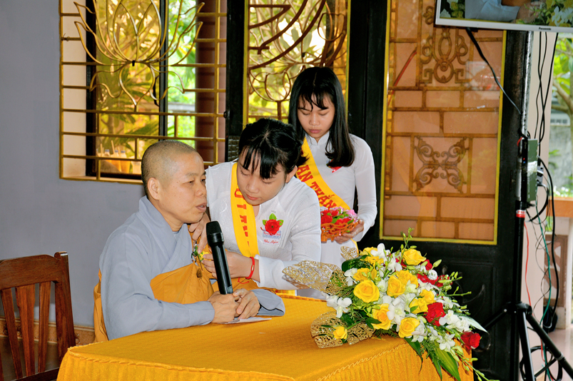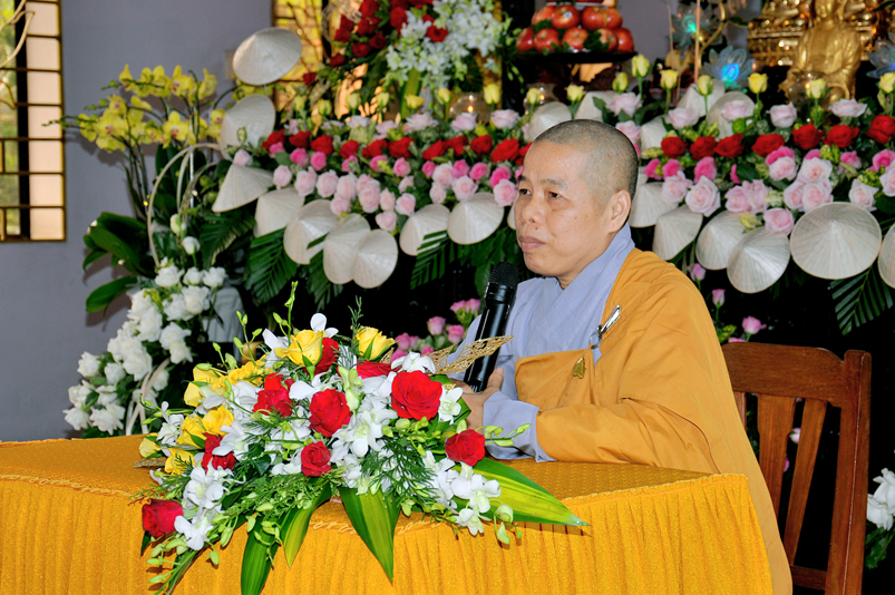 Vào lúc 8g, đạo tràng đã được lắng nghe thời pháp thoại với chủ đề ‘Ân nghĩa sinh thành’ do Sư cô Thích nữ Tắc Phú – Giáo thọ Trường Trung cấp Phật học tỉnh Long An, thành viên Trung tâm Dịch thuật Hán Nôm Huệ Quang, Tp. HCM đảm nhiệm cùng sự hiện diện của hơn 200 Phật tử.