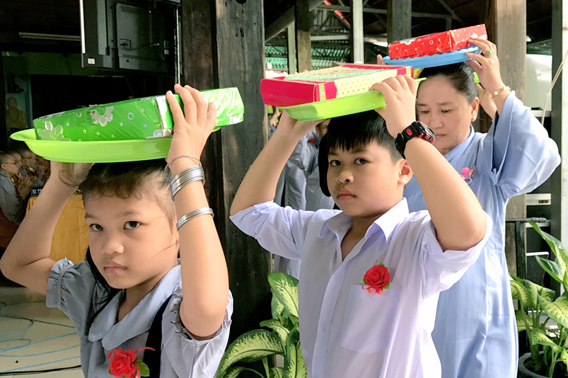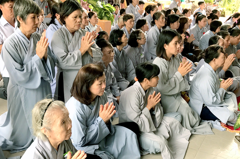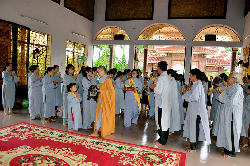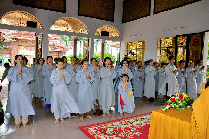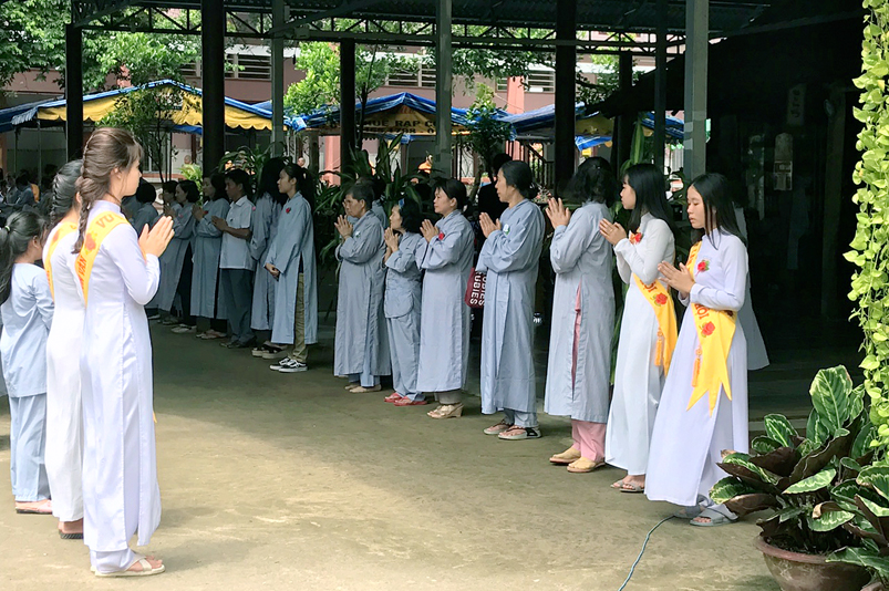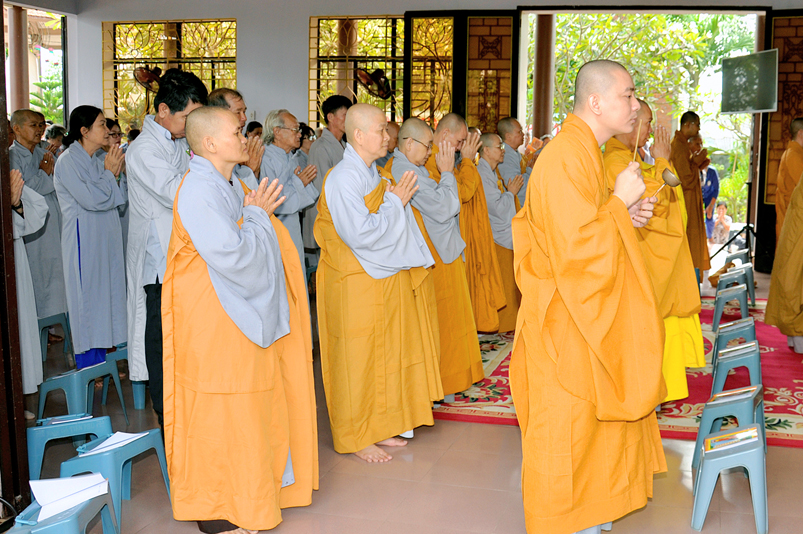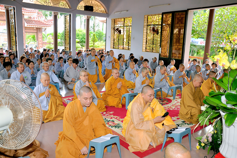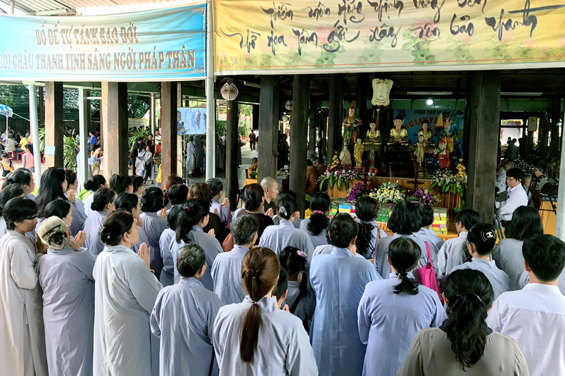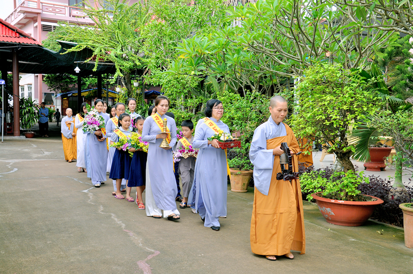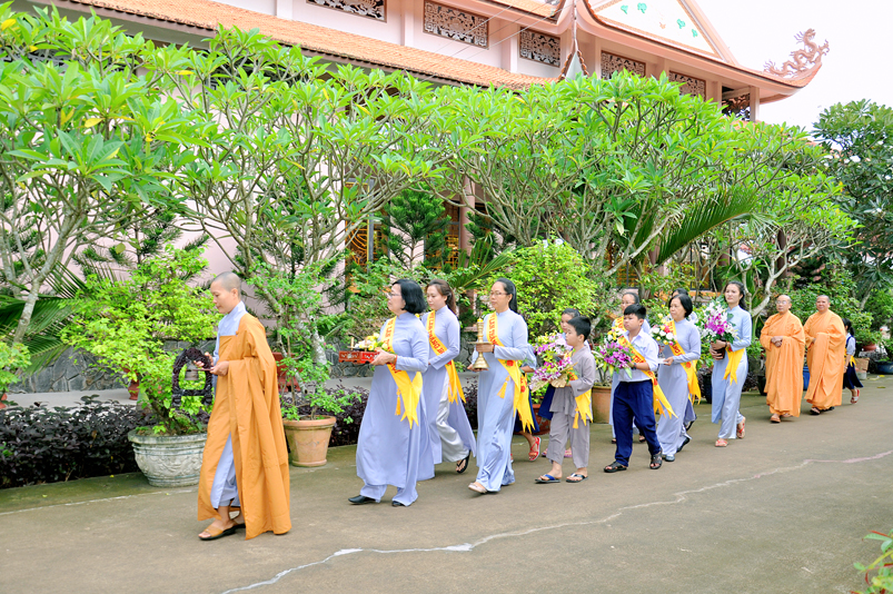 Vào lúc 8g, đạo tràng đã được lắng nghe thời pháp thoại với chủ đề ‘Ân nghĩa sinh thành’ do Sư cô Thích nữ Tắc Phú – Giáo thọ Trường Trung cấp Phật học tỉnh Long An, thành viên Trung tâm Dịch thuật Hán Nôm Huệ Quang, Tp. HCM đảm nhiệm cùng sự hiện diện của hơn 200 Phật tử.