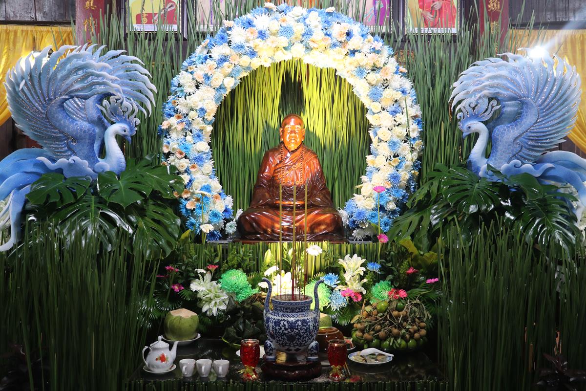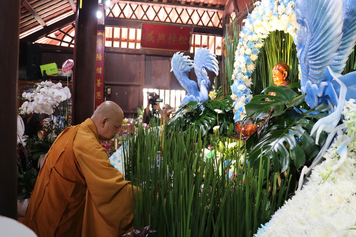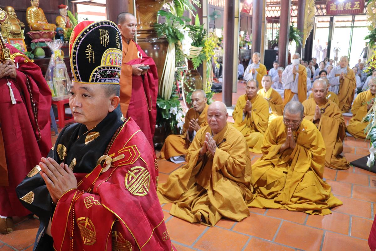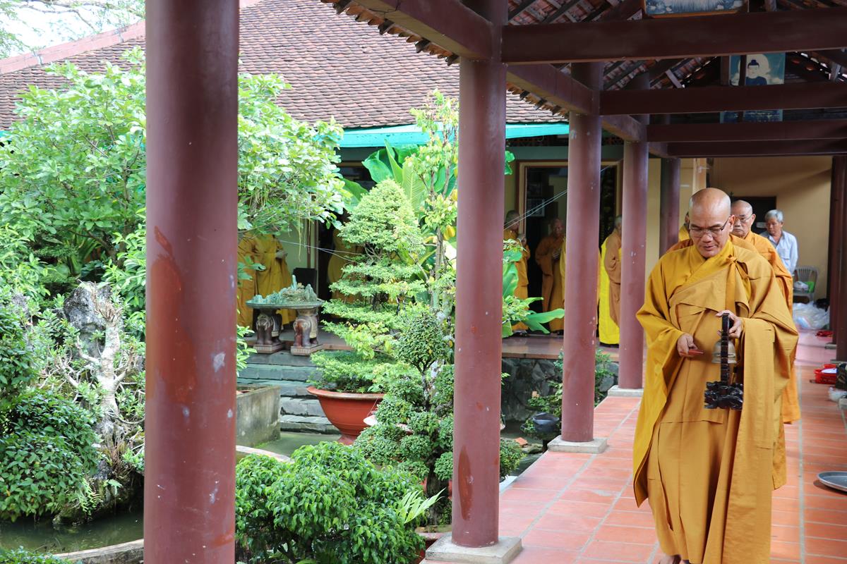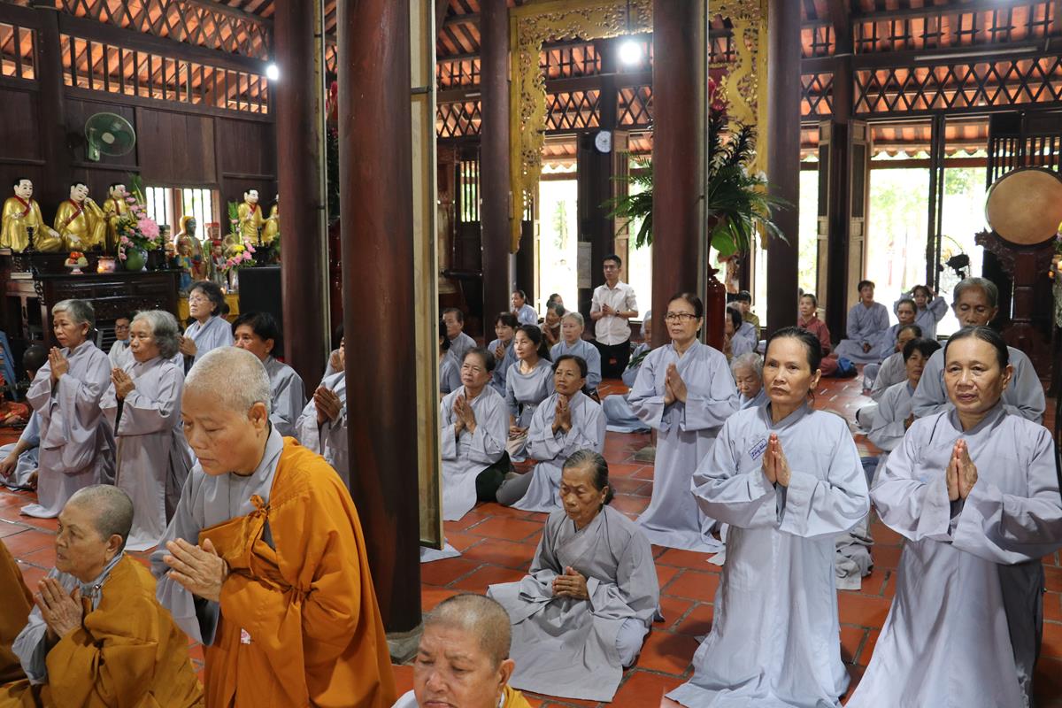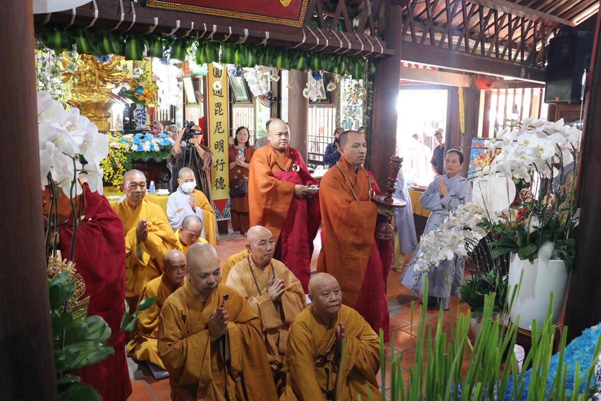 Mở đầu buổi lễ, Chư tôn đức Ban Nghi lễ do Thượng tọa Thích An Tịnh – Phó ban Nghi lễ GHPGVN tỉnh Long An làm sám chủ đã quang lâm bảo điện dâng hương tụng kinh, thực hiện khóa lễ cúng ngọ và tiến hành nghi thức Cung tiến Giác linh. Các nghi thức diễn ra trong không khí trang nghiêm, thành kính. Sau đó là nghi thức dâng hương tưởng niệm Giác linh Cố Trưởng lão Hòa thượng của Chư tôn đức Ban Thường trực BTS GHPGVN tỉnh Long An và Tông phong Thiên Thai Giáo Quán tại Tổ đường do HT. Thích Thiện Tài – Chứng minh BTS GHPGVN tỉnh Long An xướng lễ.