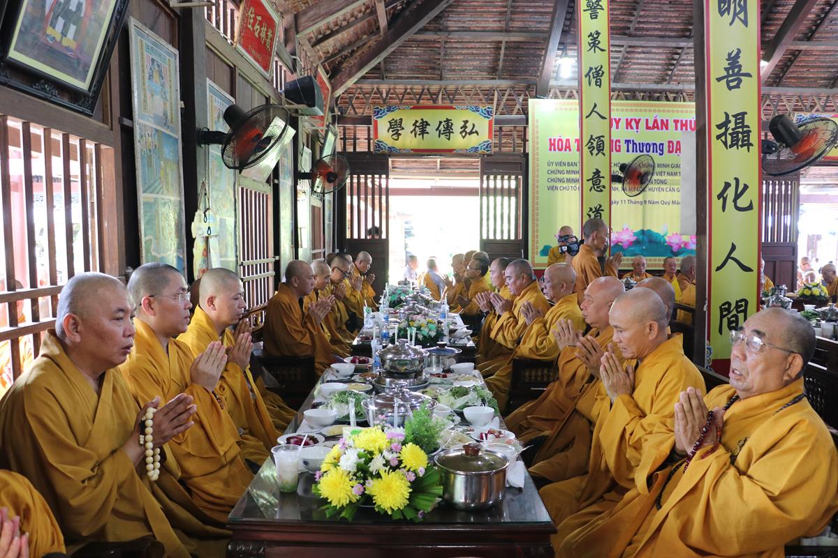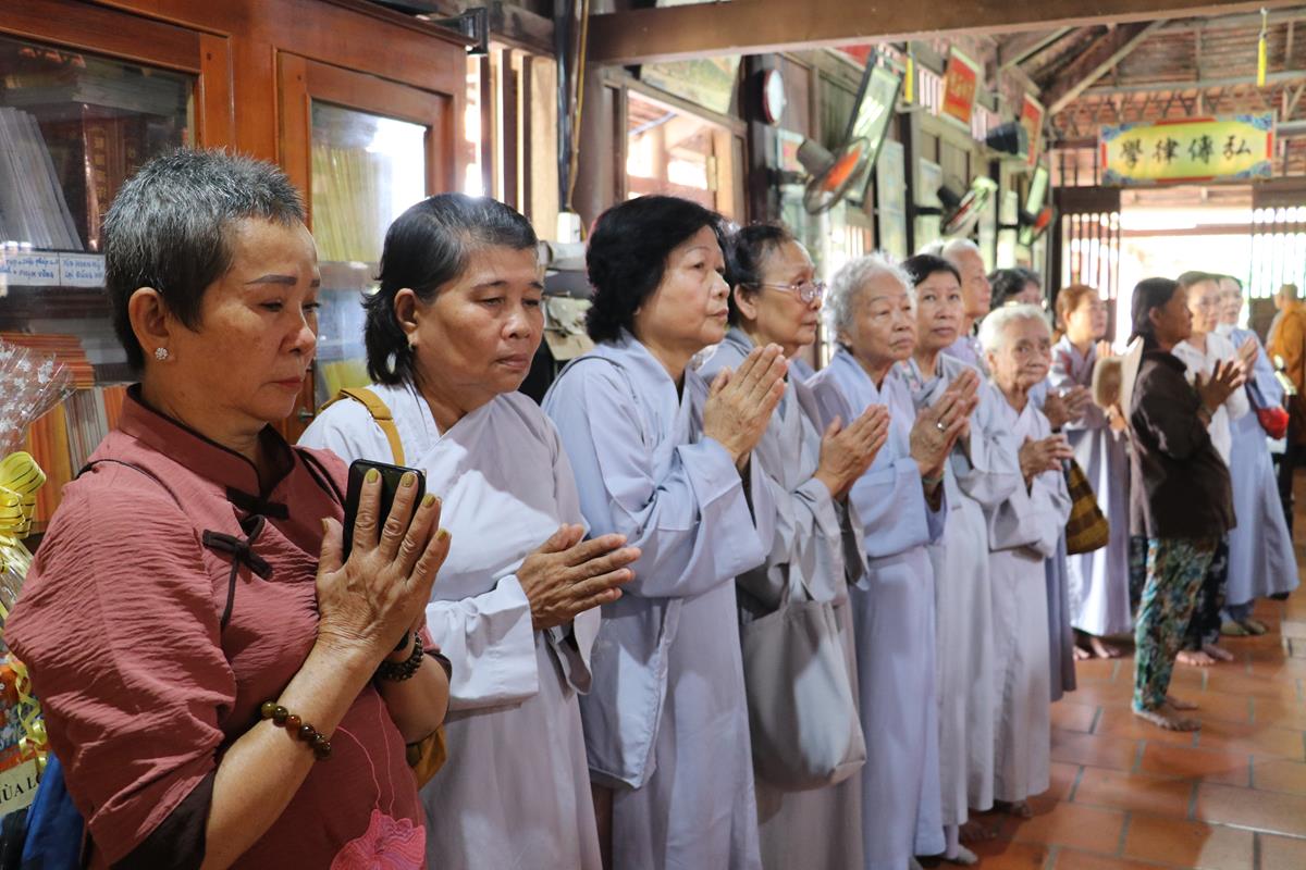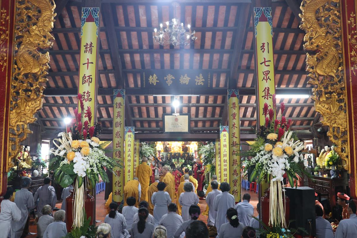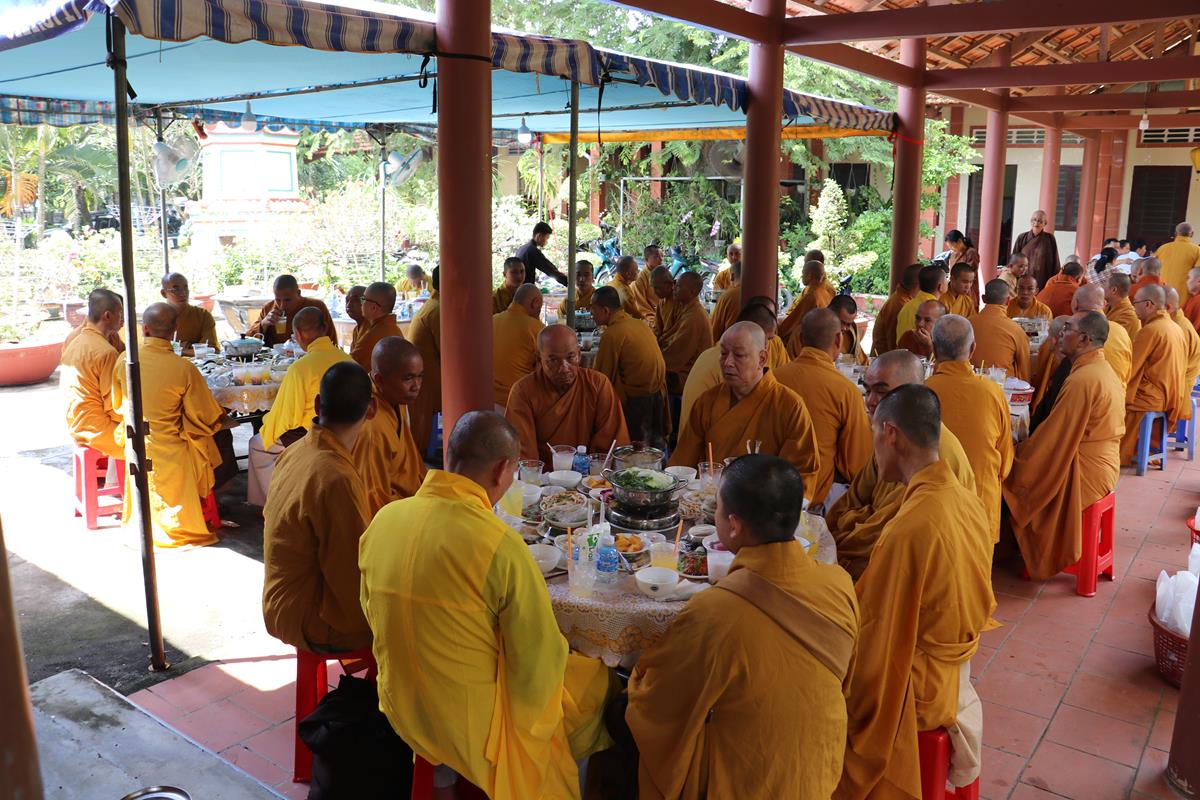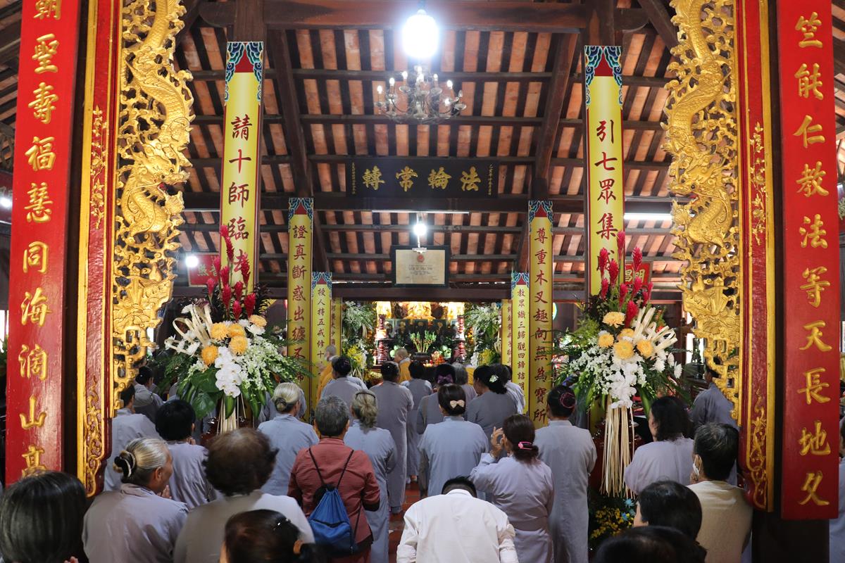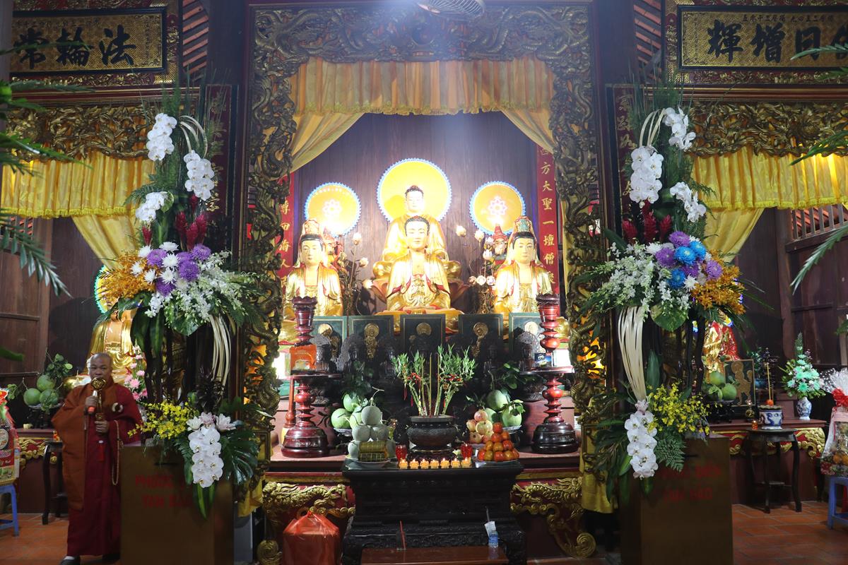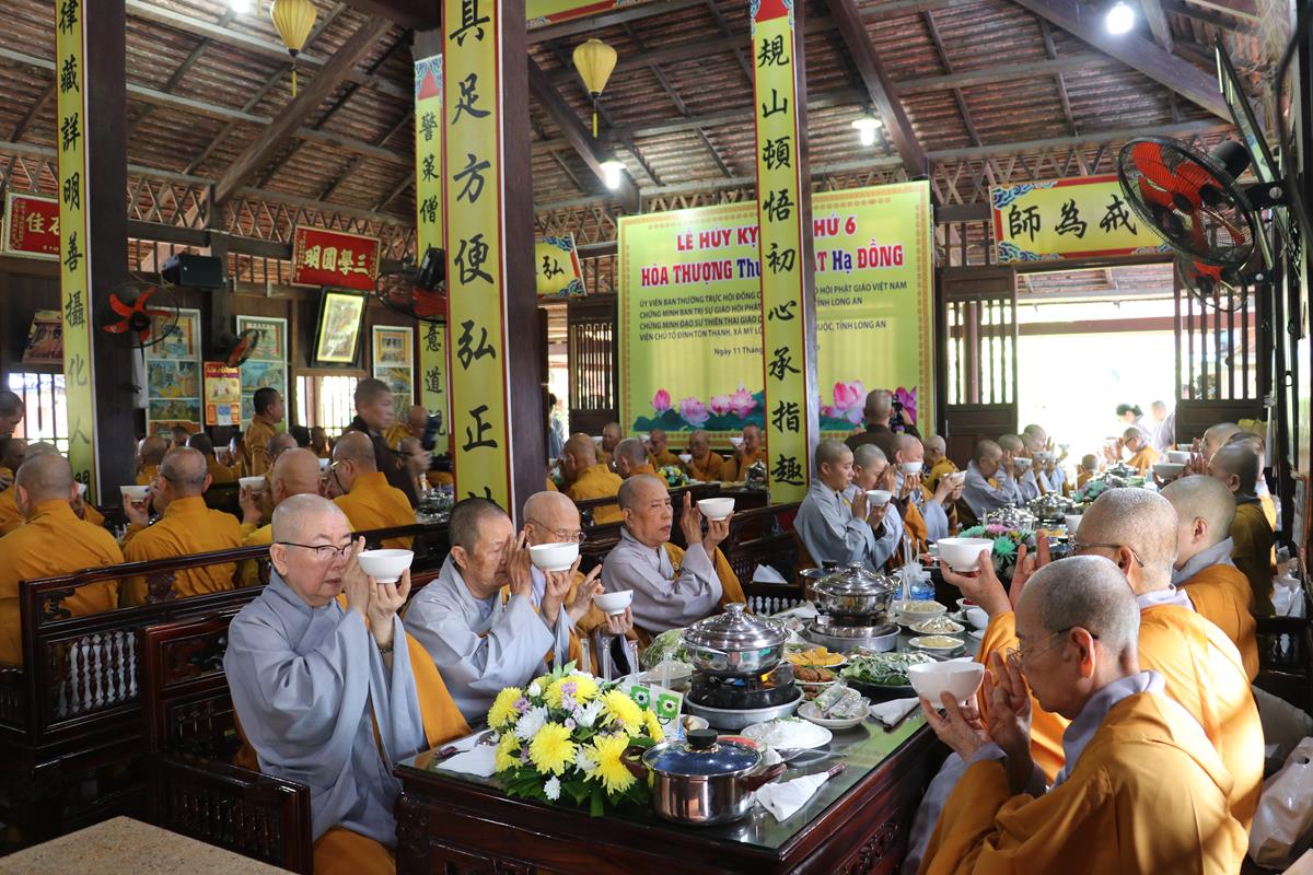 Mở đầu buổi lễ, Chư tôn đức Ban Nghi lễ do Thượng tọa Thích An Tịnh – Phó ban Nghi lễ GHPGVN tỉnh Long An làm sám chủ đã quang lâm bảo điện dâng hương tụng kinh, thực hiện khóa lễ cúng ngọ và tiến hành nghi thức Cung tiến Giác linh. Các nghi thức diễn ra trong không khí trang nghiêm, thành kính. Sau đó là nghi thức dâng hương tưởng niệm Giác linh Cố Trưởng lão Hòa thượng của Chư tôn đức Ban Thường trực BTS GHPGVN tỉnh Long An và Tông phong Thiên Thai Giáo Quán tại Tổ đường do HT. Thích Thiện Tài – Chứng minh BTS GHPGVN tỉnh Long An xướng lễ.