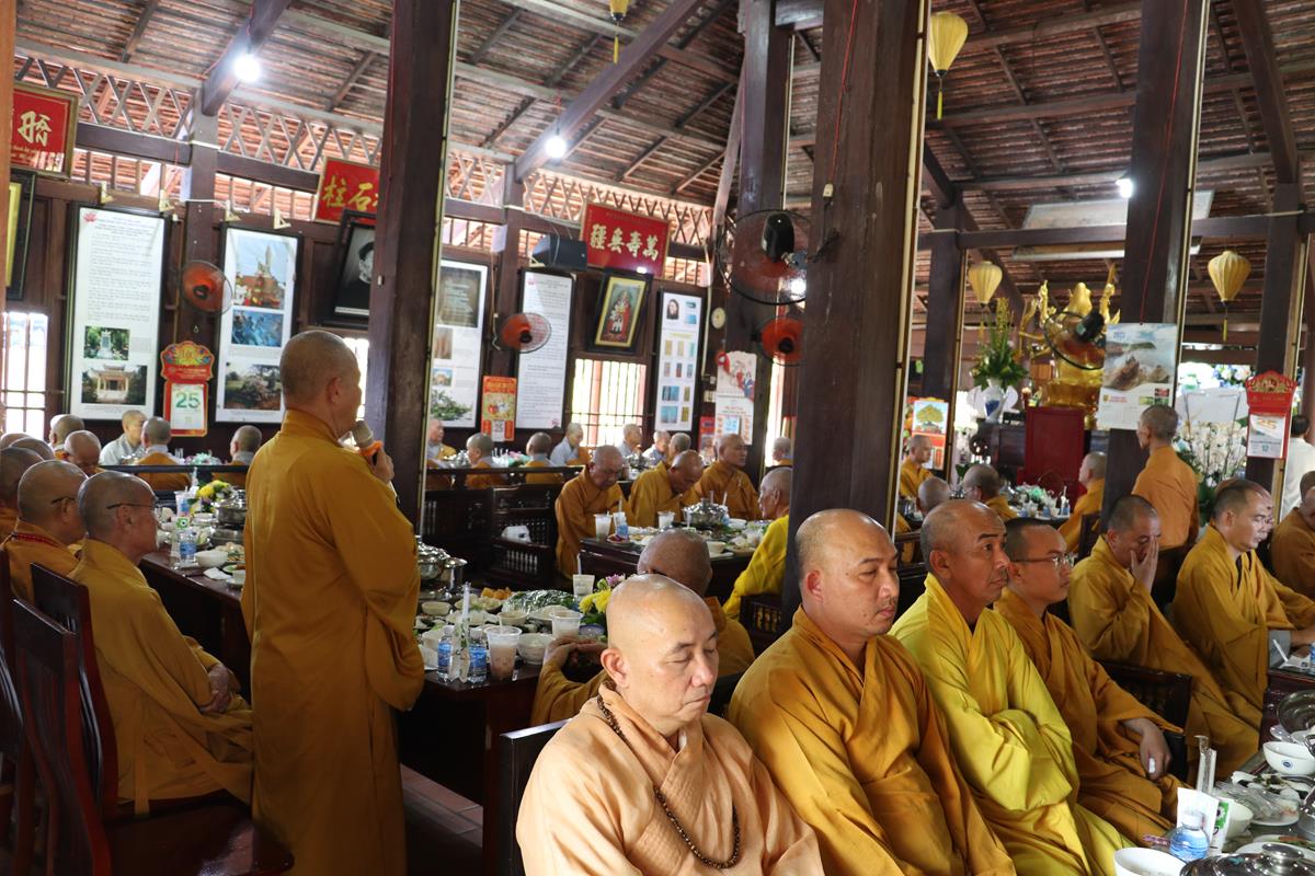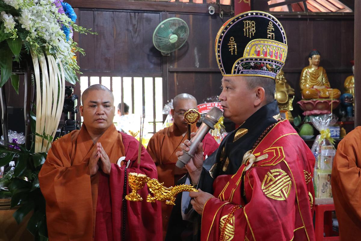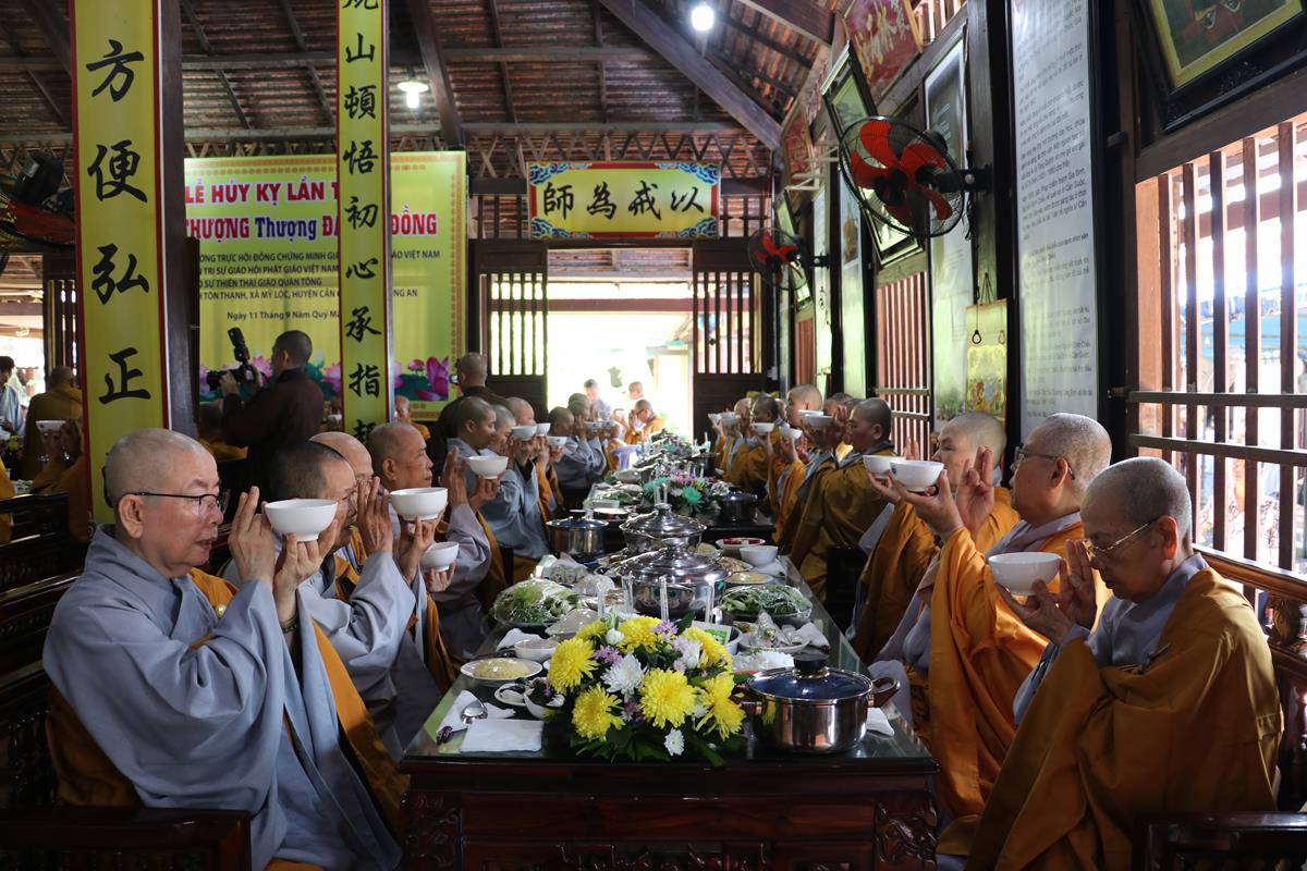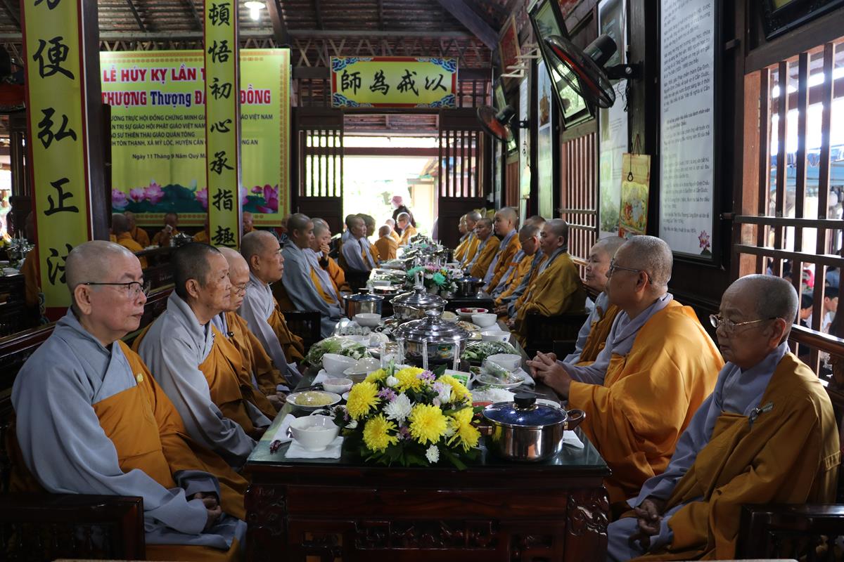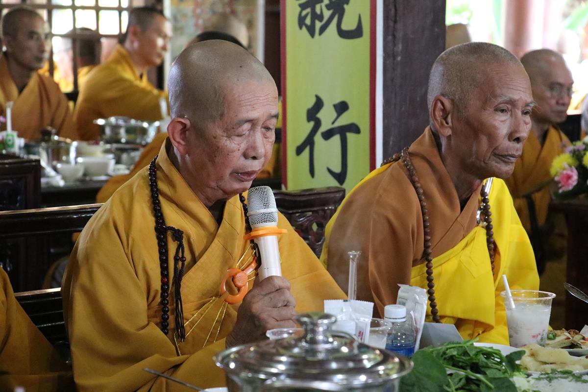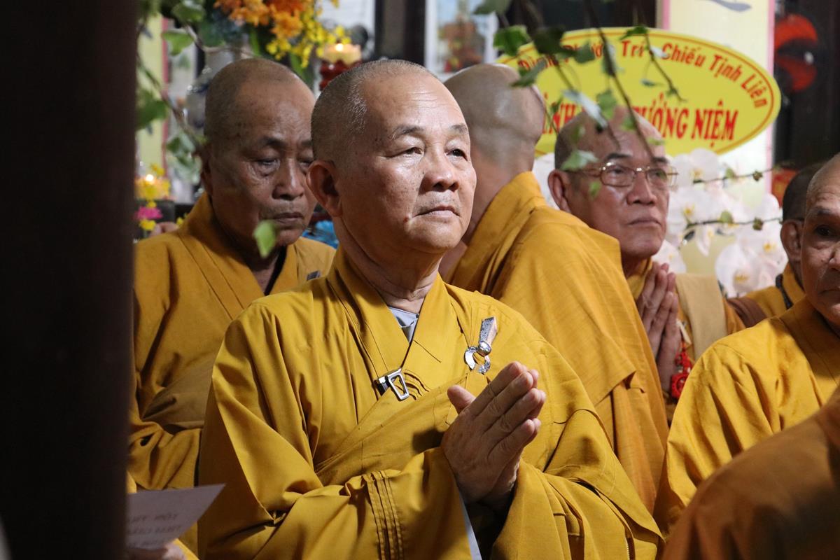 Ban đạo từ tại buổi lễ, HT. Thích Minh Thiện có lời tưởng niệm công ơn sâu dày của Cố Trưởng lão Hòa thượng suốt một đời phụng sự, cống hiến cho Đạo pháp – Dân tộc. Hòa thượng tri ân Chư tôn đức giáo phẩm, chư tôn đức Tăng ni đã nhận lời hứa khả quang lâm về chứng minh cho pháp lễ ngày hôm nay. Hòa thượng tán thán hiếu tâm, hiếu hàng của hàng môn đồ pháp quyến đã thiết lễ húy kỵ trang nghiêm, đúng với tinh thần tri ân – báo ân của Phật giáo. Qua tiểu sử, cố Trưởng lão Hòa thượng luôn đề cao tinh thần tu học, thường xuyên nhắc nhở Tăng ni thông qua lời văn trong Qui Sơn: “Phù xuất gia giả, phát túc siêu phương, tâm hình dị tục, thiệu long thánh chủng, chấn nhiếp ma quân”. Trải qua quá trình học tập, Cố Trưởng lão Hòa thượng theo sự phân công của Giáo hội, thừa hành Phật sự, phát triển nhiều đạo tràng tu học ở những nơi mà Ngài đảm nhận. Đặc biệt, Cố Trưởng lão Hòa thượng hứa khả tham dựHội đồng Thập sự của nhiều giới đàn. Có thể nói rằng, Cố Trưởng lão Hòa thượng là tấm gương sáng cho hàng hậu tấn noi theo. Hòa thượng nhất tâm cung thỉnh Chư tôn đức Chứng minh từ bi niệm Phật hứa khả và gia trì cho Phật sự viên thành, Tông phong vĩnh chấn, Tổ ấn trùng quang.