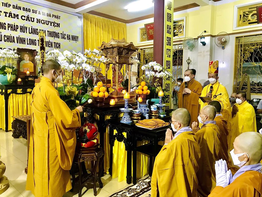 Buổi lễ kết thúc vào lúc 21g 15 phút, trước khi hồi quy bổn tự, Hòa thượng Thích Minh Thiện ân cần dặn dò Thường trực Ban Trị sự GHPGVN huyện Cần Giuộc hãy cố gắng hỗ trợ Môn nhân pháp quyến chùa Vĩnh Long chu toàn các Phật sự liên quan trong những ngày Tang Lễ của Cố Ni trưởng thập phần viên mãn.