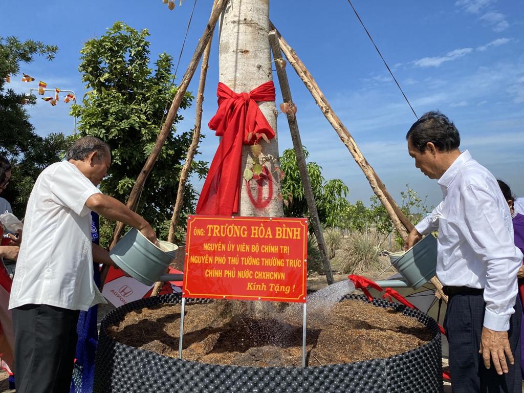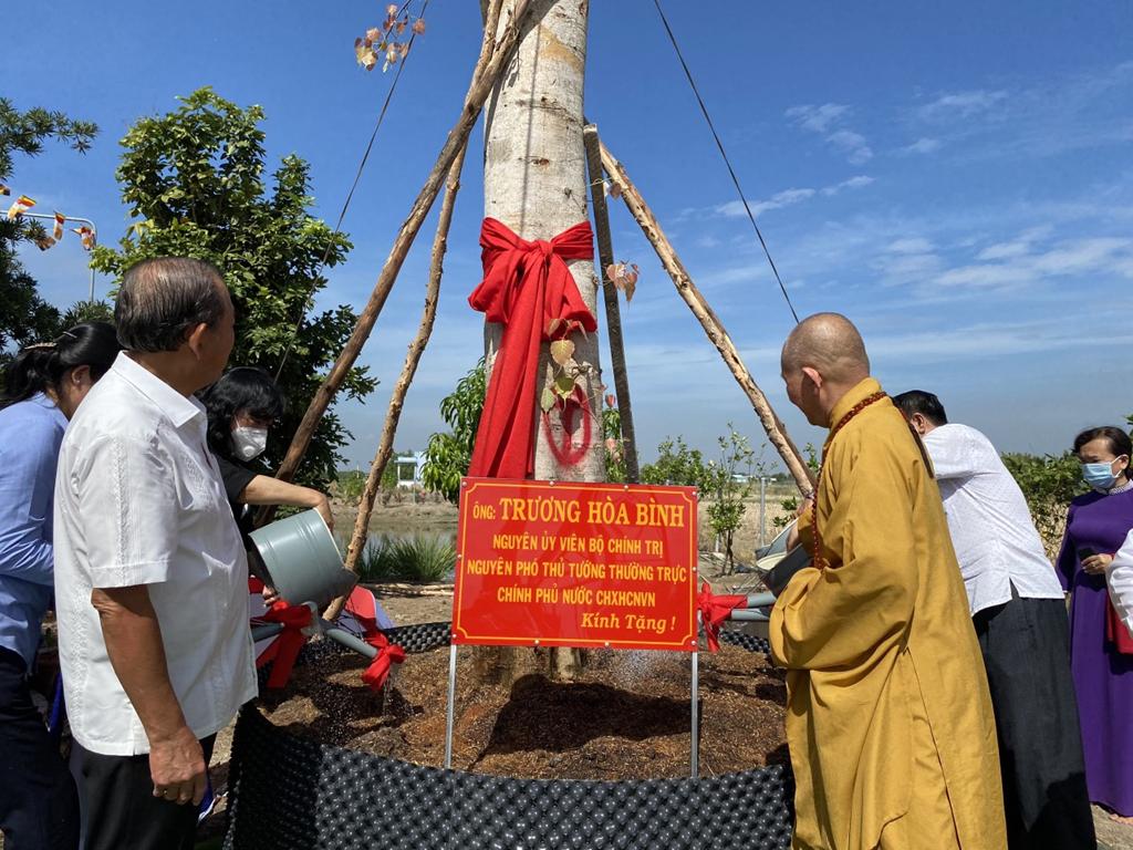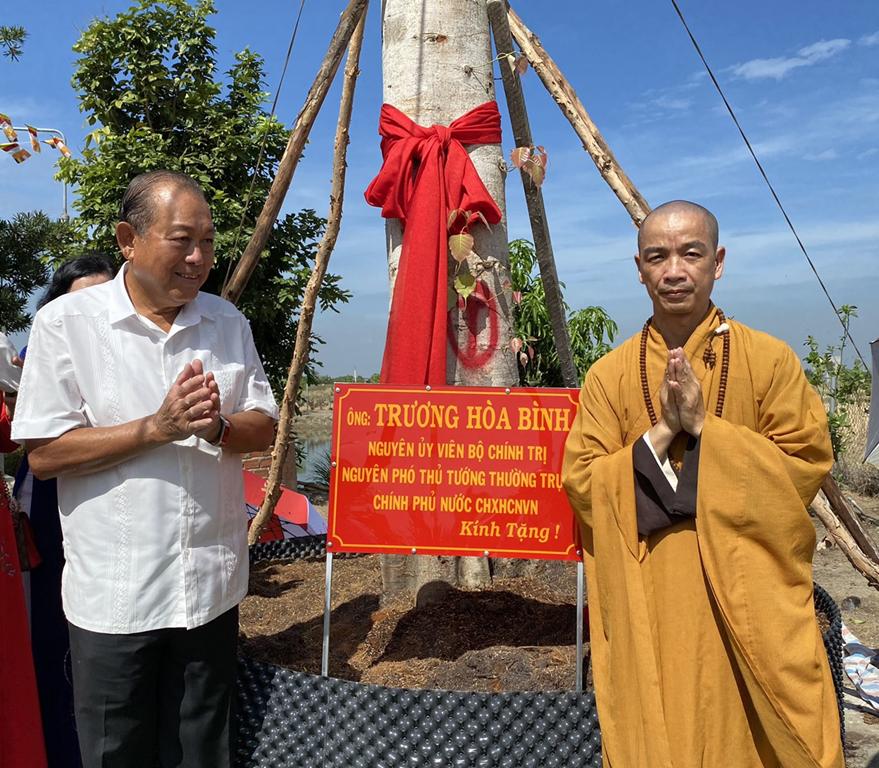 Cần Giuộc: Nguyên Phó Thủ tướng Thường trực Trương Hòa Bình thăm và trồng cây bồ đề lưu niệm tại chùa Hòa Long