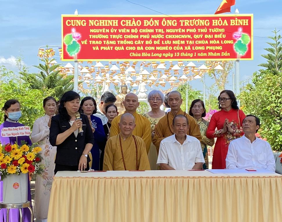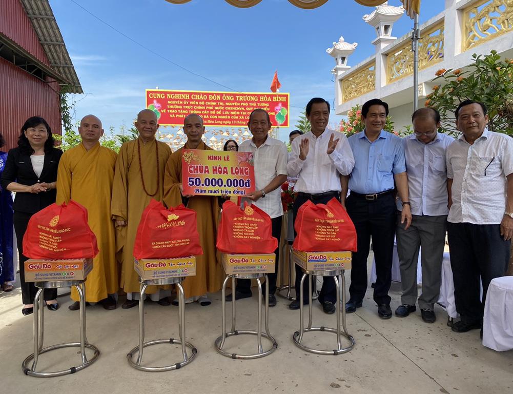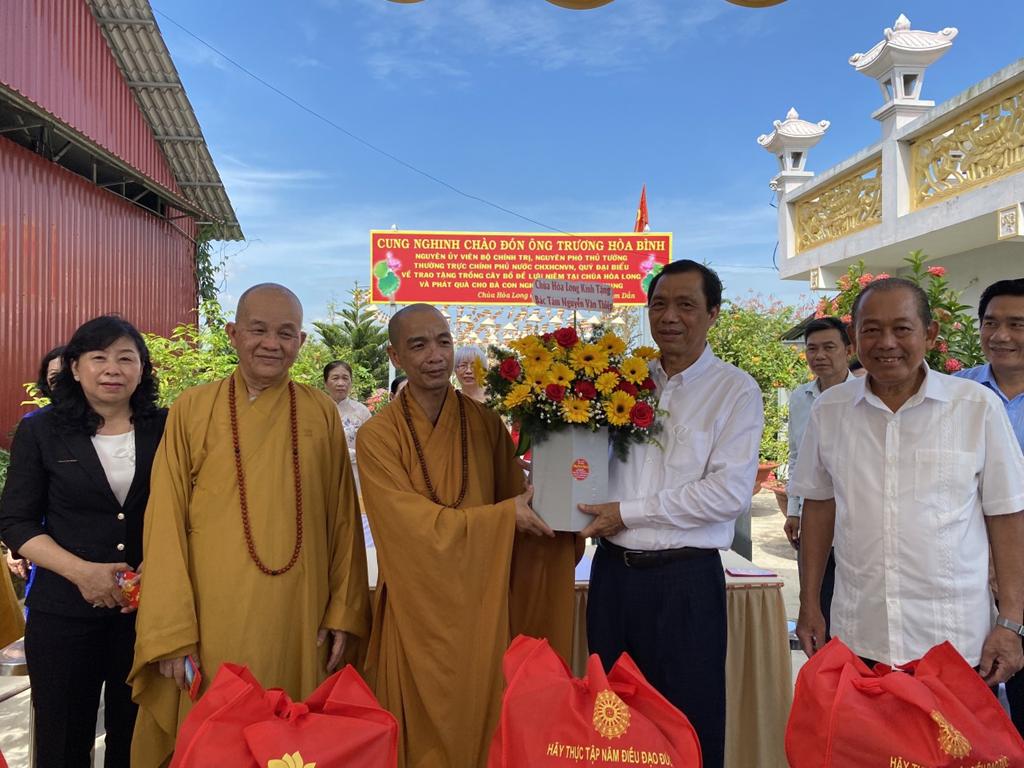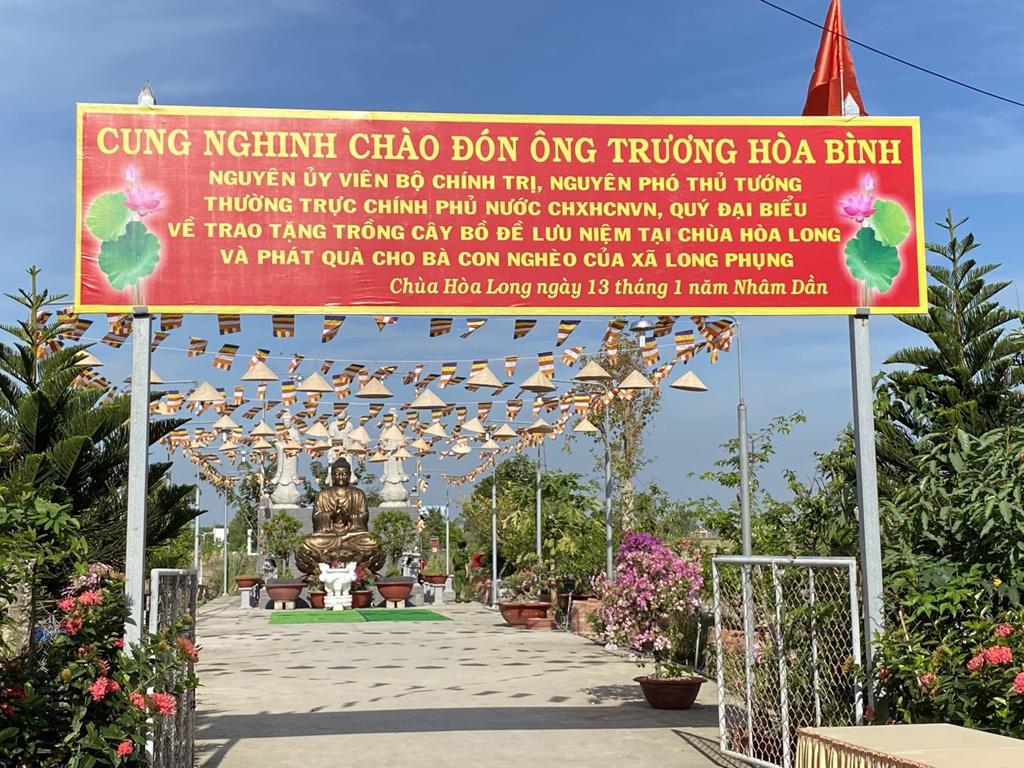 Sáng Chủ Nhật, ngày 13/2/2022, Ông Trương Hoà Bình, Nguyên Ủy viên Bộ Chính trị, Nguyên Phó Thủ tướng Thường trực cùng quý lãnh đạo đã về chùa Hòa Long, xã Long Phụng, huyện Cần Giuộc, tỉnh Long  An thăm viếng và trồng cây Bồ Đề (Giác Ngộ) lưu niệm.