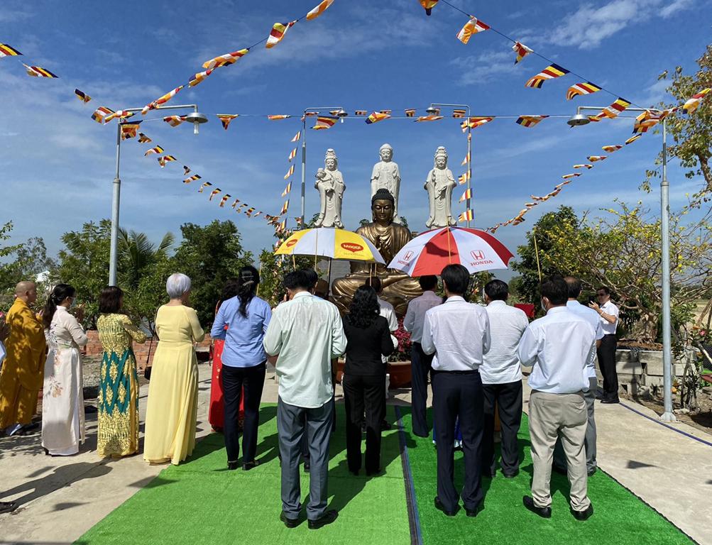 Đón tiếp đoàn có Hòa thượng Thích Minh Thiện, Ủy viên Hội đồng Trị sự, Phó Trưởng ban Hoằng pháp TƯ, Trưởng ban Trị sự GHPGVN tỉnh Long An; Đại đức Thích Lệ Ngôn, Trưởng ban Hoằng pháp GHPGVN tỉnh Long An; Đại đức Thích Tâm Hiền, Ủy viên Ban Trị sự GHPGVN tỉnh Long An, Phó Trưởng ban Phật giáo Quốc tế tỉnh Long An, Trụ trì chùa Hòa Long.