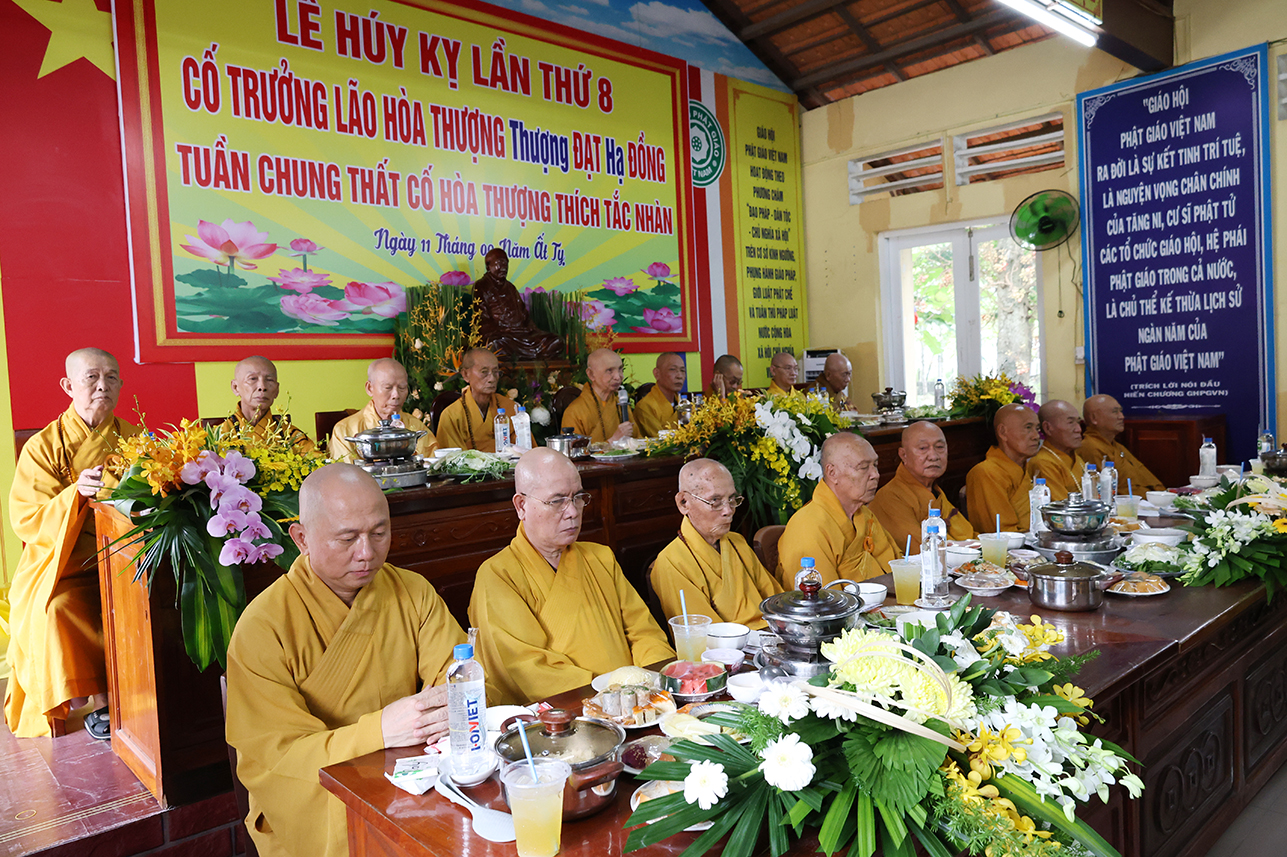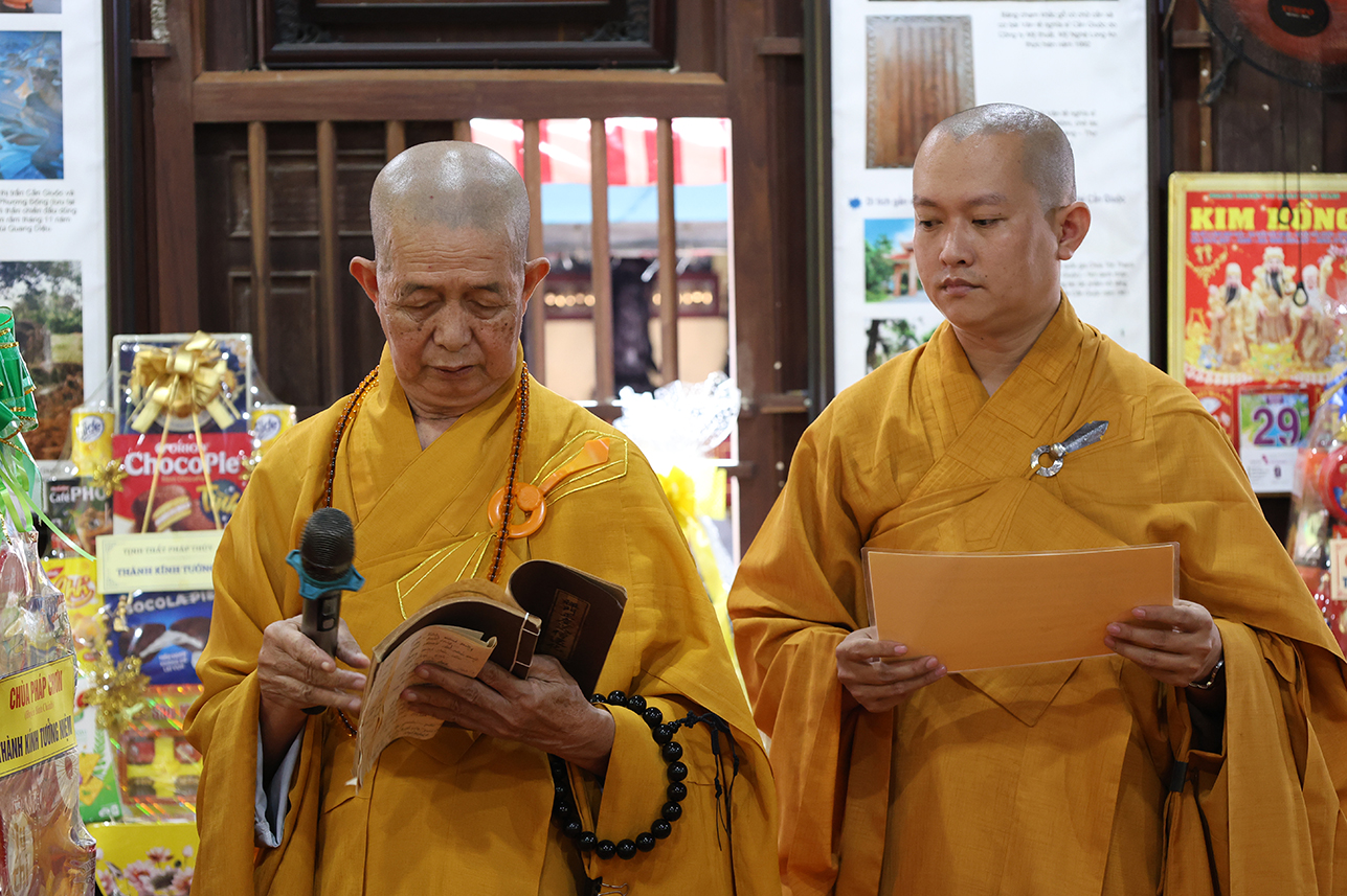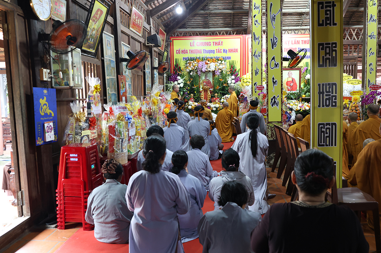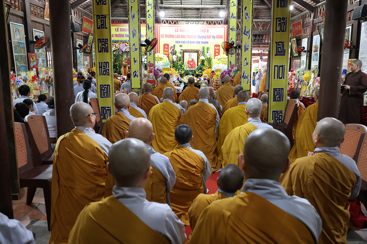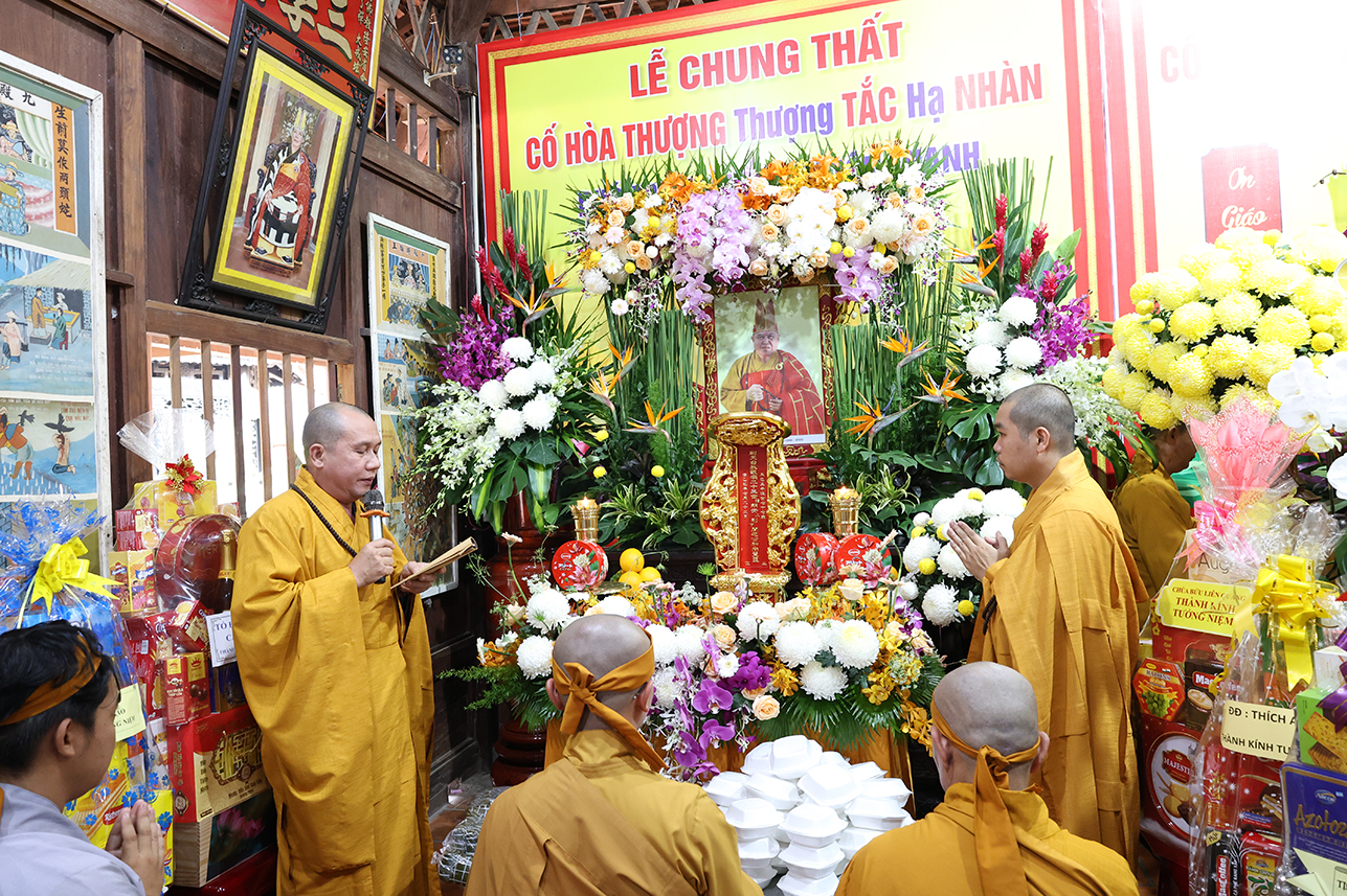 Nghi thức tưởng niệm hoàn mãn, Ban cung nghinh cung thỉnh chư Tôn đức Tăng Ni thân lâm trai đường. Tại đây, trong sự chứng minh của chư Tôn đức, Đại đức Tắc Hòa dâng lời tác bạch cúng dường.