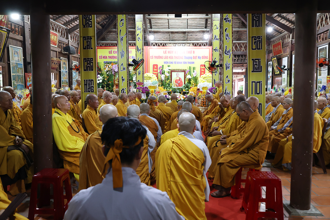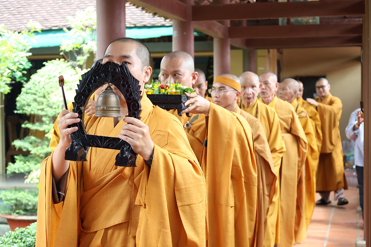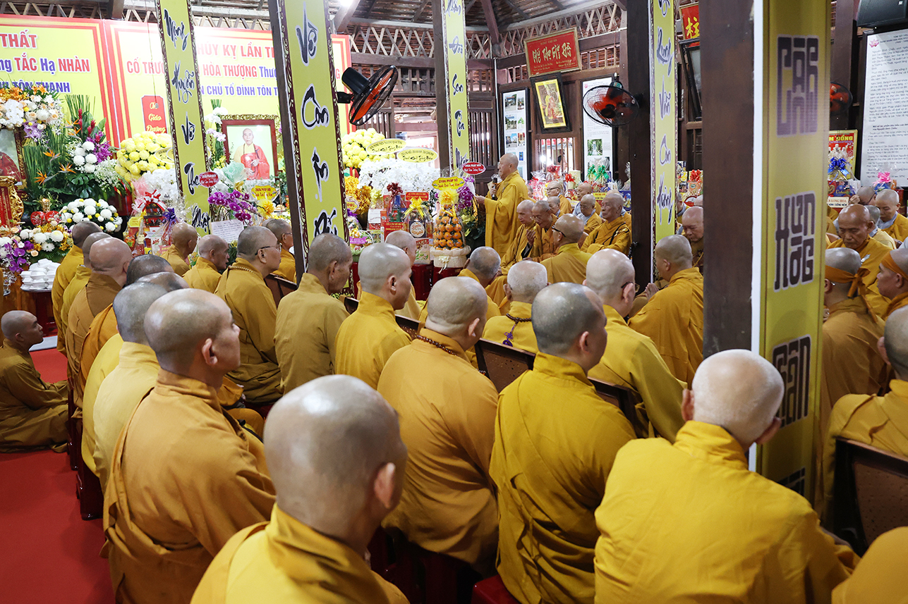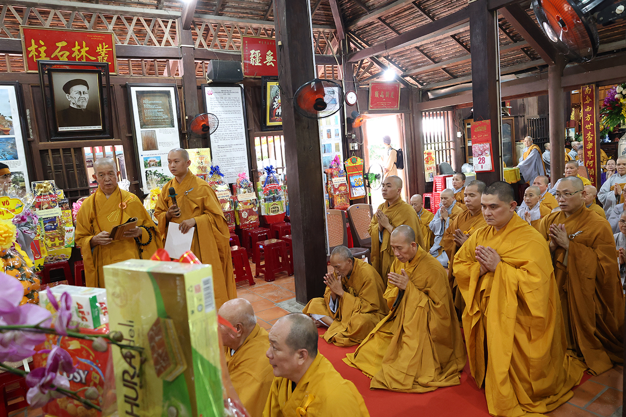 Nghi thức tưởng niệm hoàn mãn, Ban cung nghinh cung thỉnh chư Tôn đức Tăng Ni thân lâm trai đường. Tại đây, trong sự chứng minh của chư Tôn đức, Đại đức Tắc Hòa dâng lời tác bạch cúng dường.