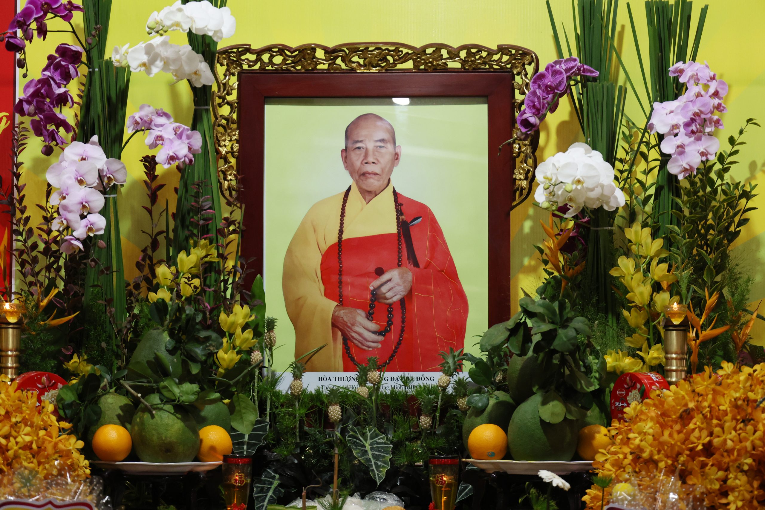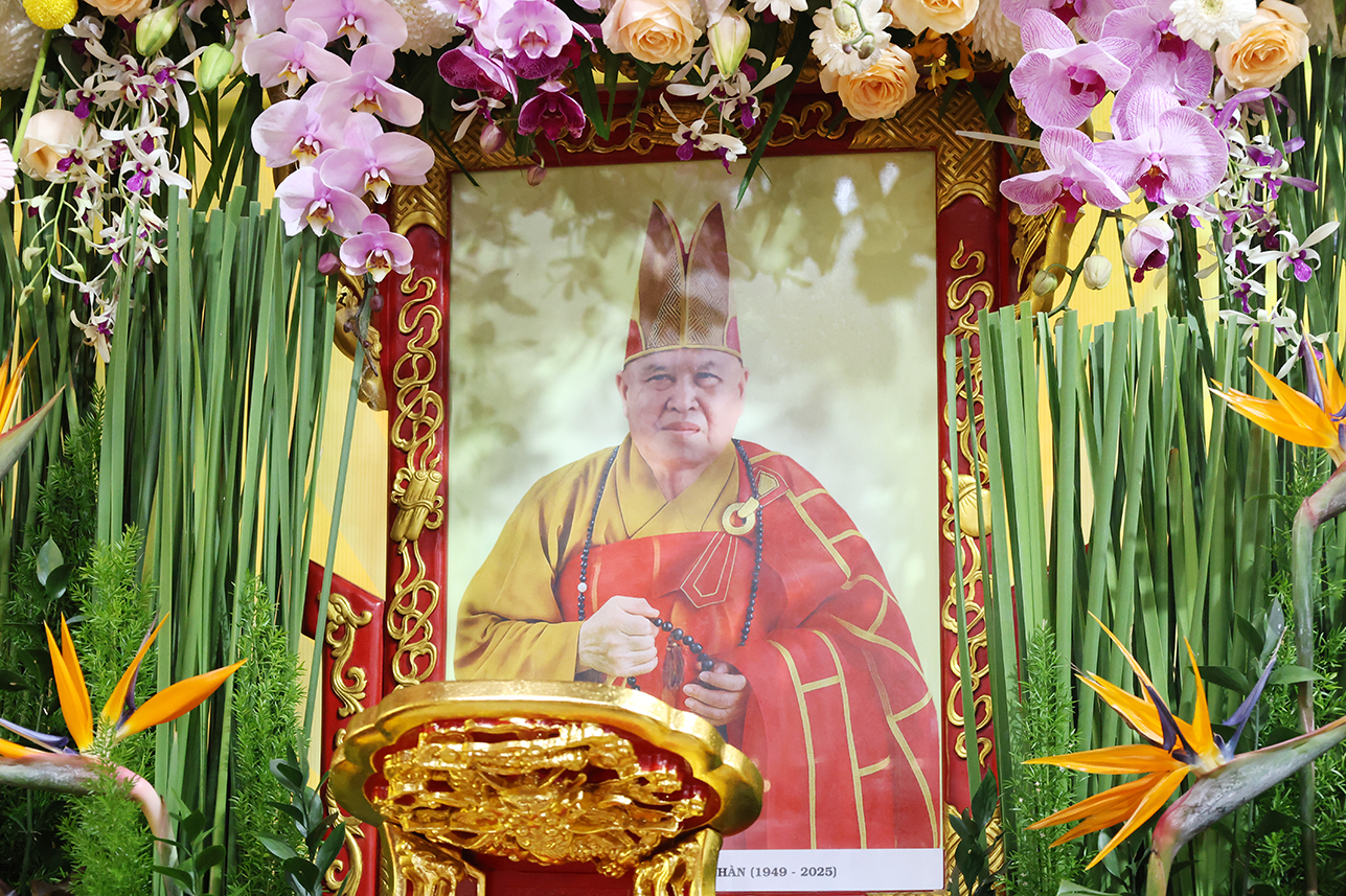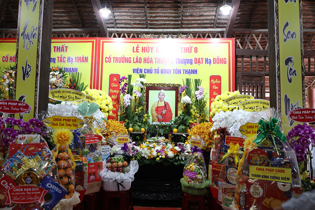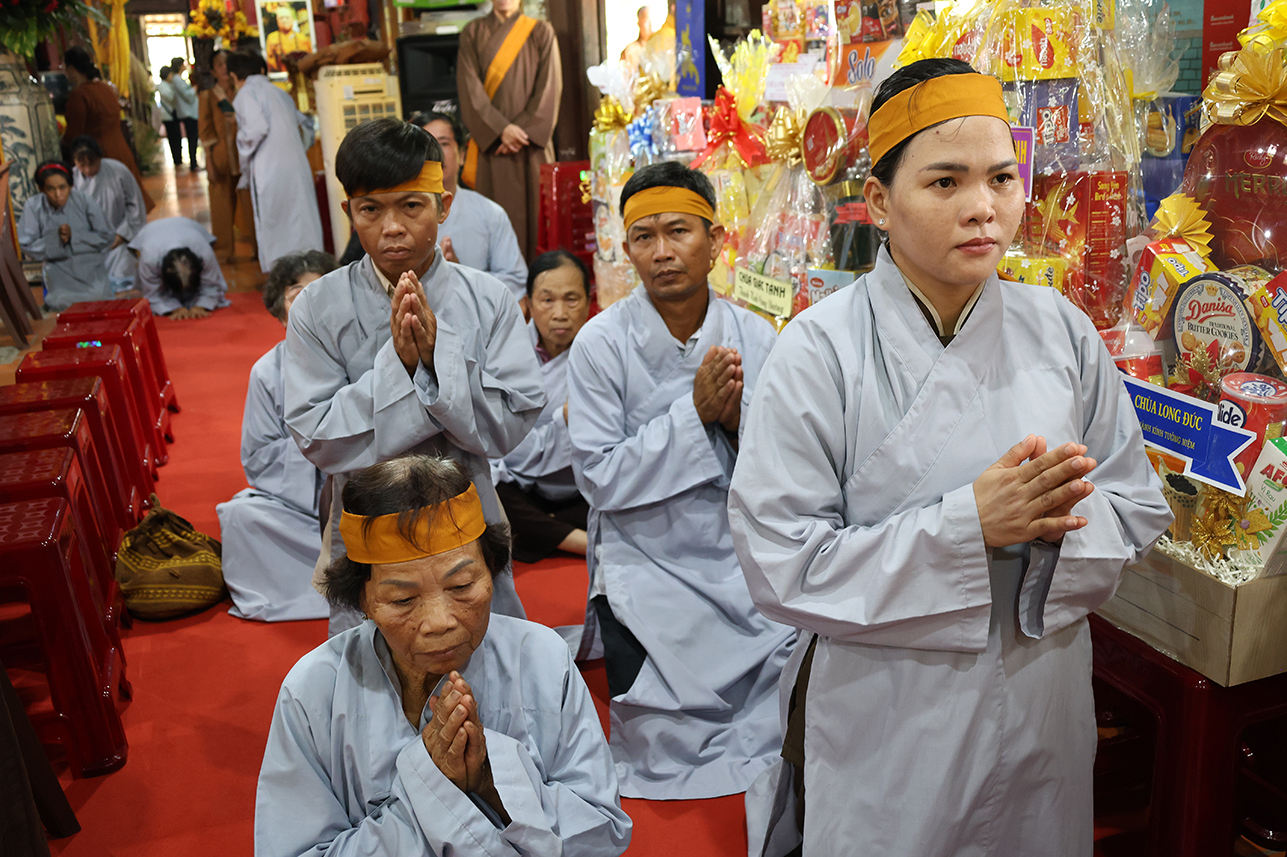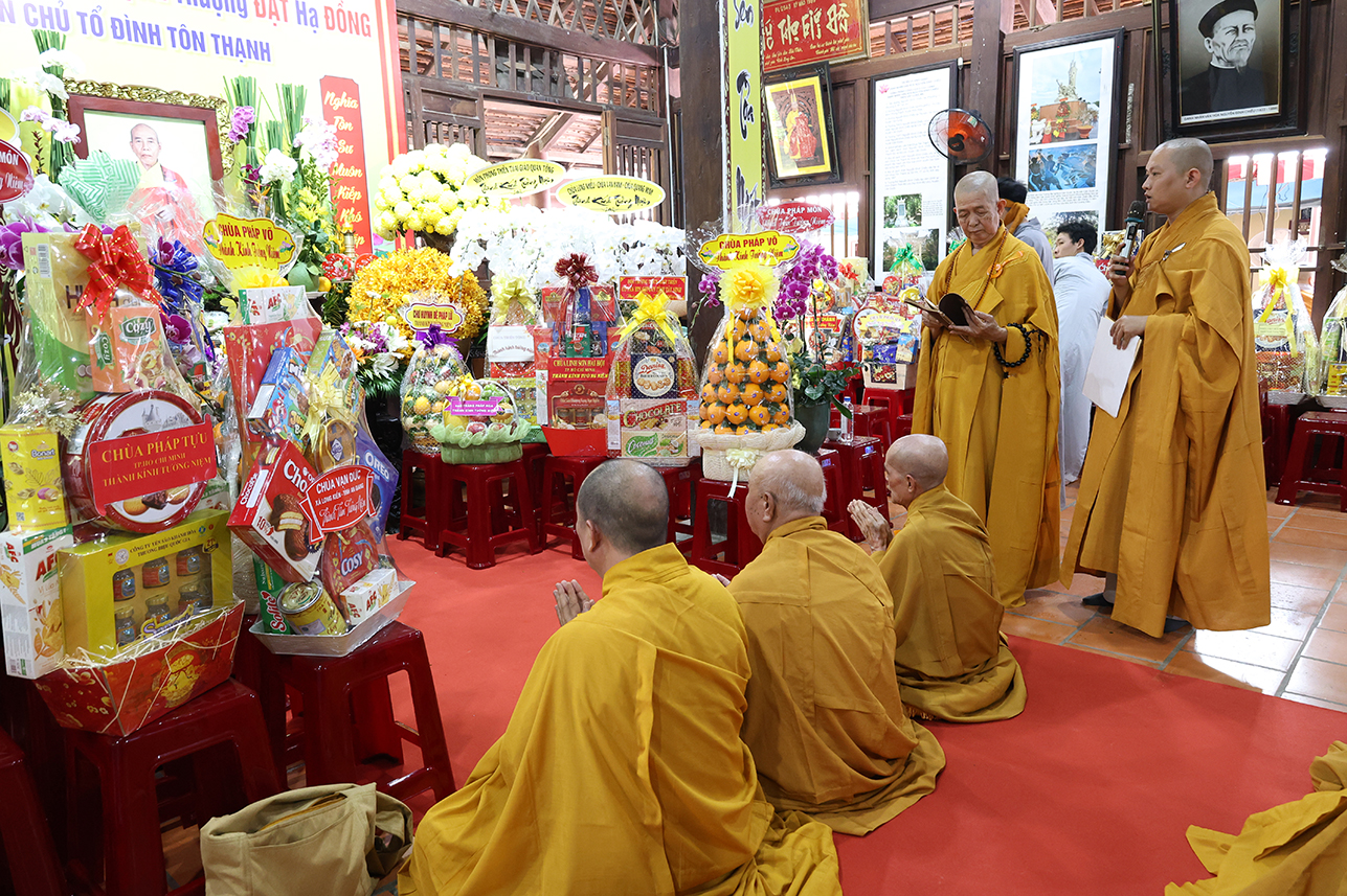 Nghi thức tưởng niệm hoàn mãn, Ban cung nghinh cung thỉnh chư Tôn đức Tăng Ni thân lâm trai đường. Tại đây, trong sự chứng minh của chư Tôn đức, Đại đức Tắc Hòa dâng lời tác bạch cúng dường.